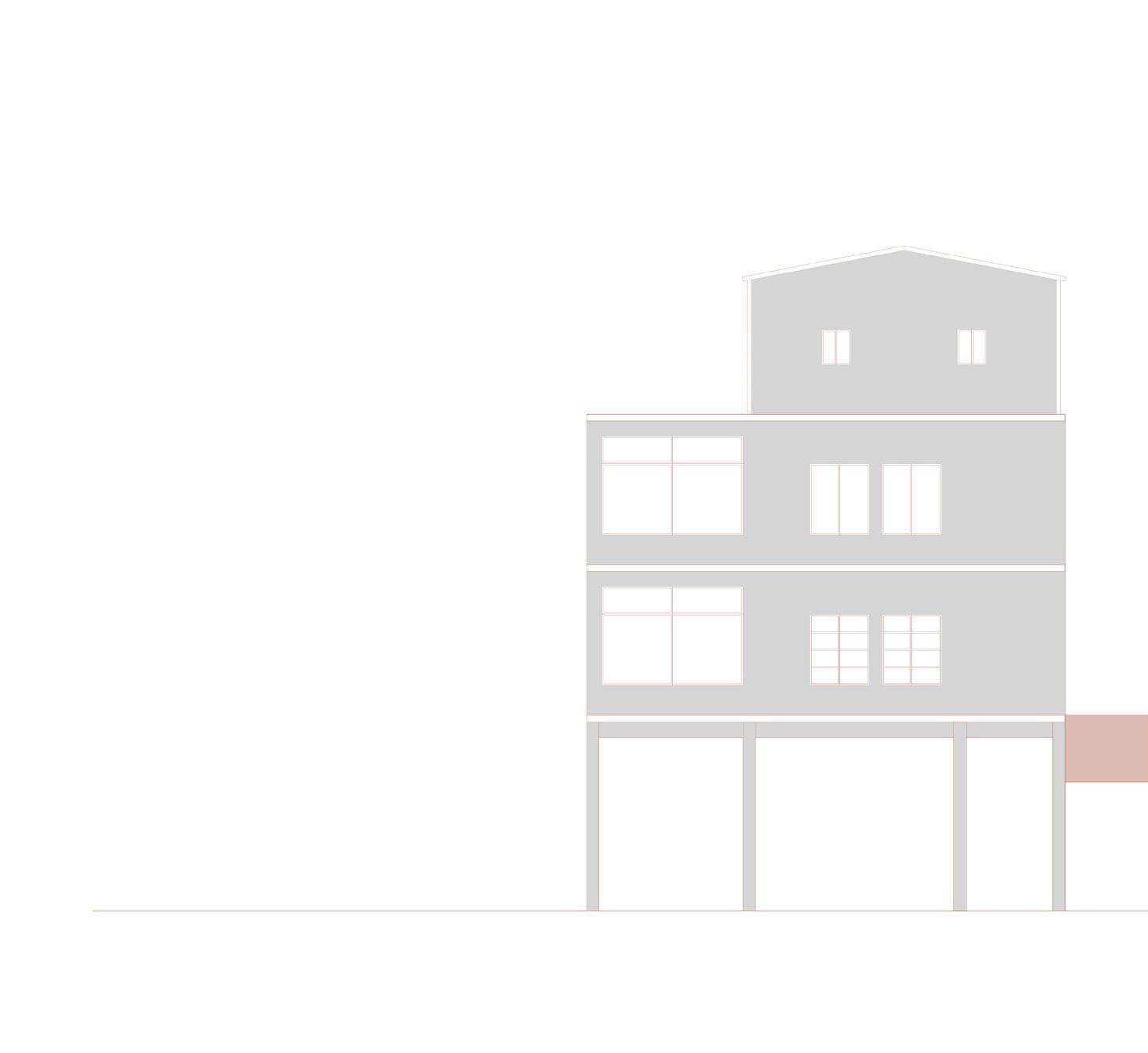 ▲ 一樓平面圖 ▲ 外觀短向立面圖 三角樓: