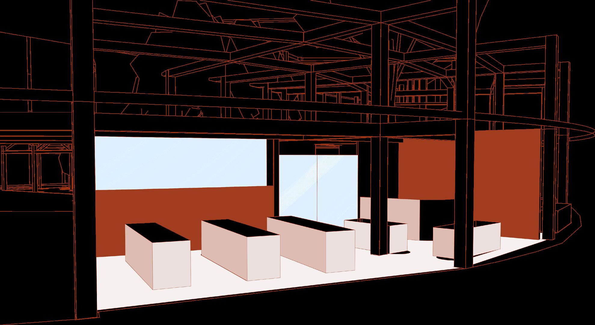 原始挑高空間 多個出入口 空間寬敞,但壓迫感高 保留許多水泥菜攤 市場中央天花結構-鐵皮屋 量體之間的閒置空間