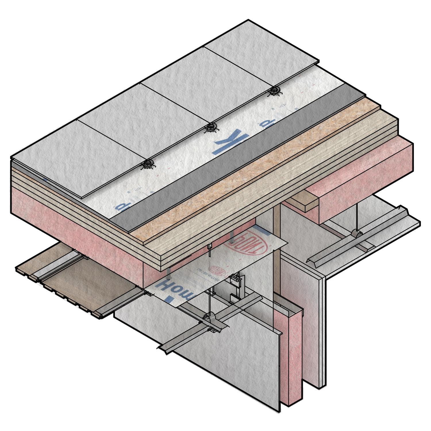 8" MINERAL WOOL ACOUSTIC INSULATION ALUMINUM HAT CHANNEL @16" O.C.