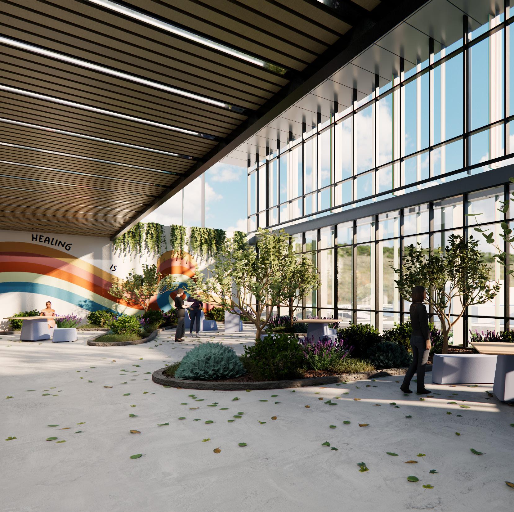 A major concern in this project was creating a calm and safe environment that still feels open. The design gives almost eighty percent of the site back to people through gardens, walking paths, and outdoor rooms that help patients decompress. Inside, soft lighting and gentle forms create a quiet atmosphere that reduces stress. The building is also planned for future changes in healthcare through flexible program zones that can shift as patient needs and medical standards evolve.