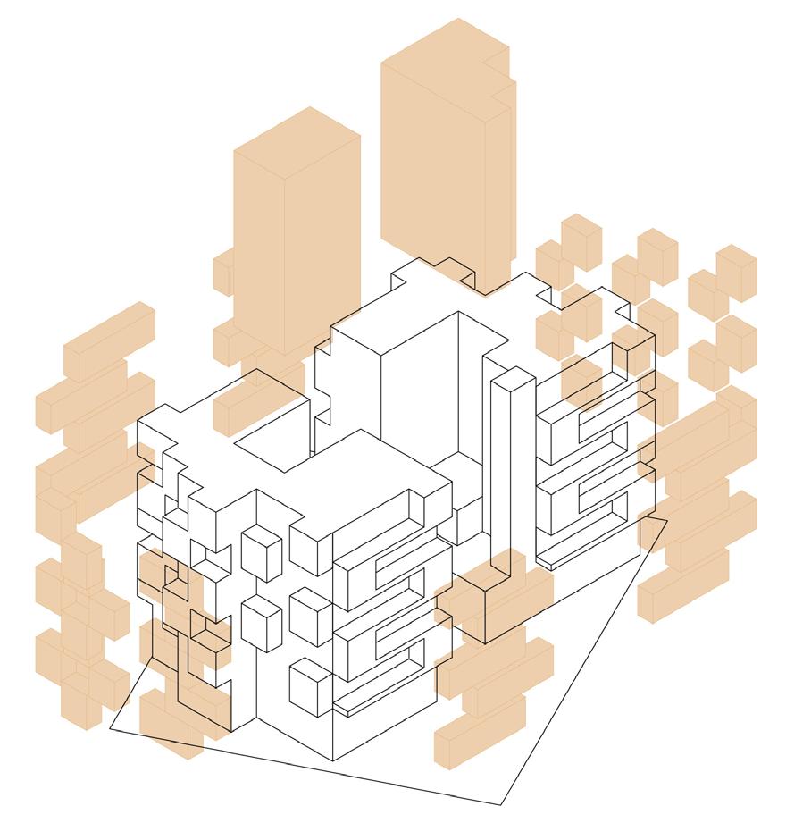This project explores how two different massings can connect at multiple scales, which led to the design of the Synapse Santa Ana Housing project.