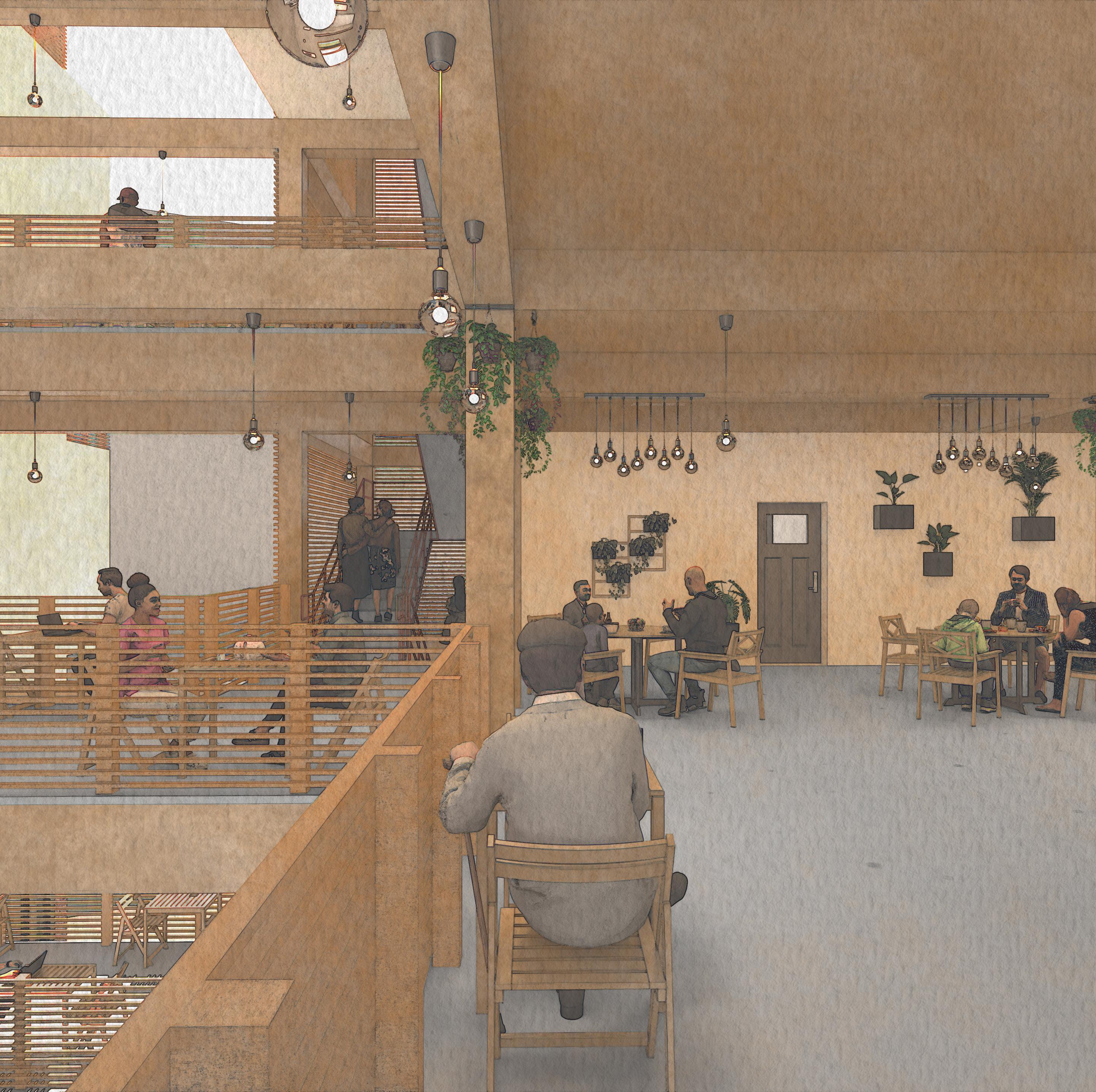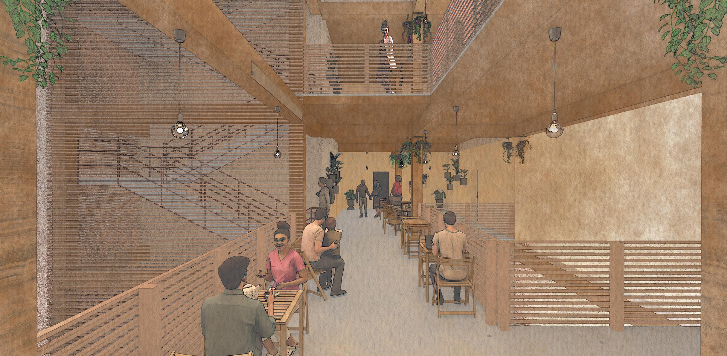 Positioned at a pivotal point in its cultural rediscovery, Leimert Park seeks to reaffirm its identity through the creation of a space that is more than functional. The Strata emerges as a response to this collective need, located adjacent to the expanding farmers market. It acts as a civic anchor that honors the community’s layered history and invites connection through public gathering, education, and the arts. Designed with a sculptural, striated façade, the building reflects the enduring strength of the neighborhood, shaped like geological strata formed through time, pressure, and resilience.