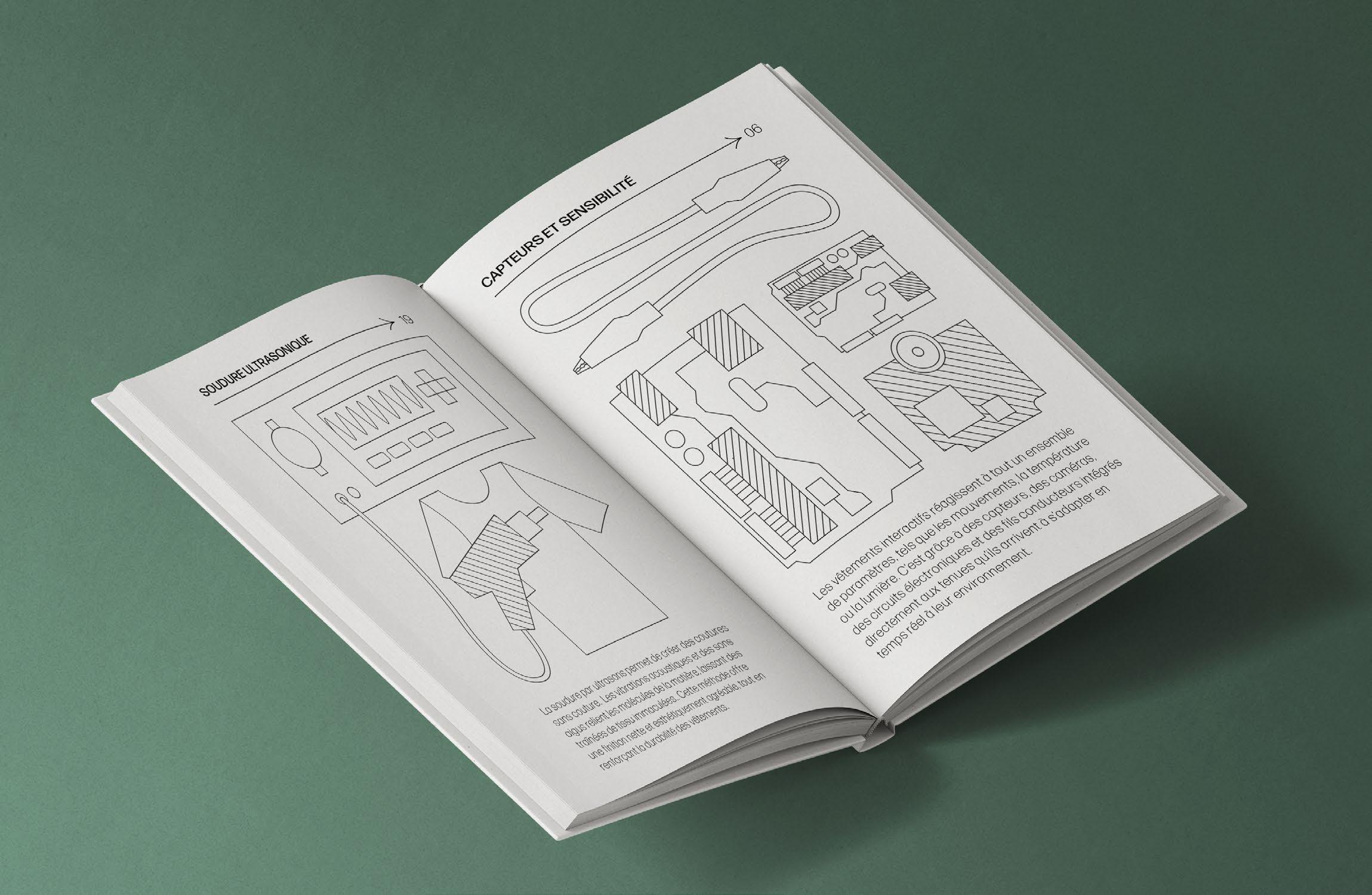 L’identité visuelle a été créée pour un musée dédié à la mode. L’exposition Tech-Styles présente les dif férentes manières dont la mode utilise la technologie pour créer. Les dessins au trait vectoriel rappellent le côté scientifique de cette exposition temporaire.