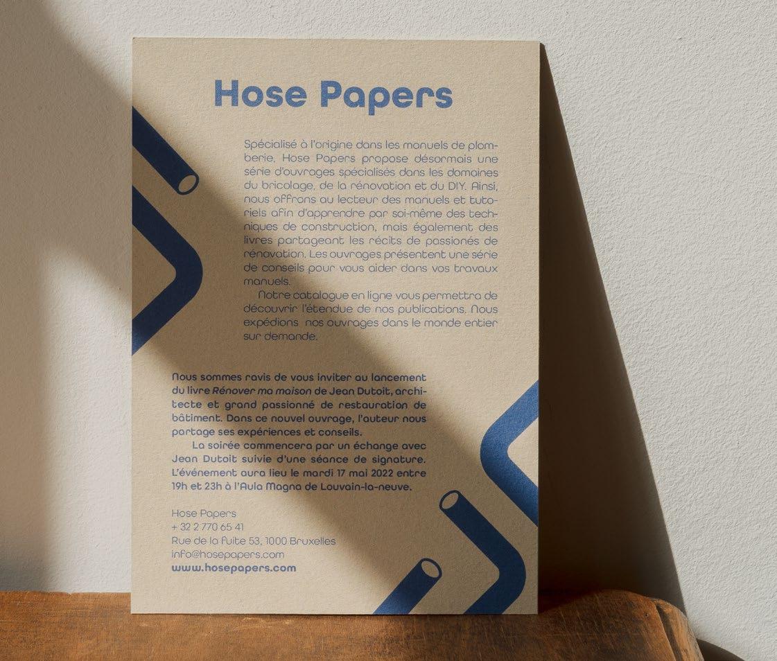 L’identité visuelle a été créée pour une maison d’édition dédiée au bricolage et au DIY. Elle a été déclinée sur une carte de visite ainsi qu’un carton d’invitation. L’identité ludique de ce logo a été créée grâce à l’agencement de tuyaux. Ces derniers font référence aux matériaux de construction utilisés dans le domaine du bricolage. Le papier craft a été utilisé pour symboliser les arts créatifs.