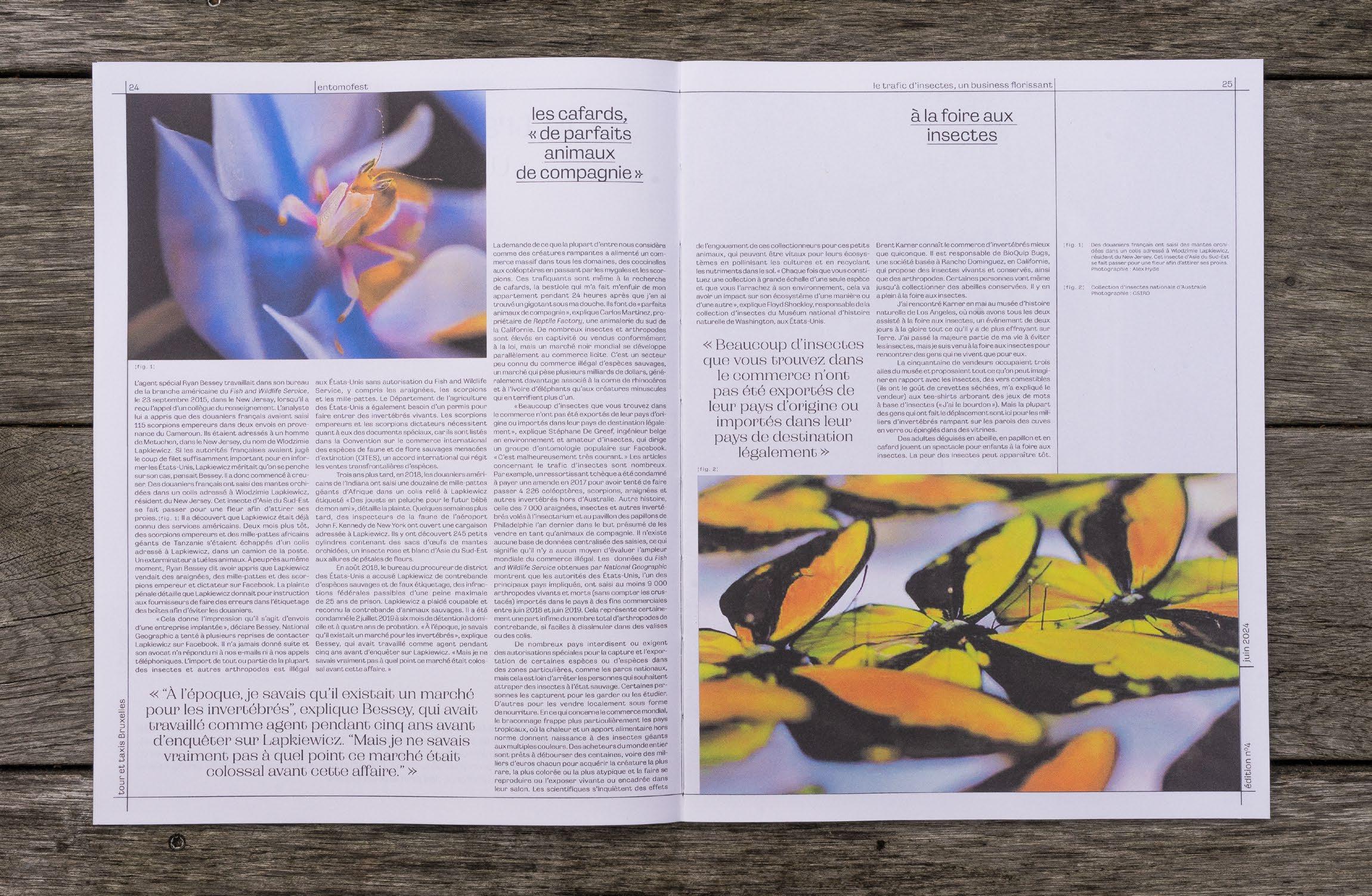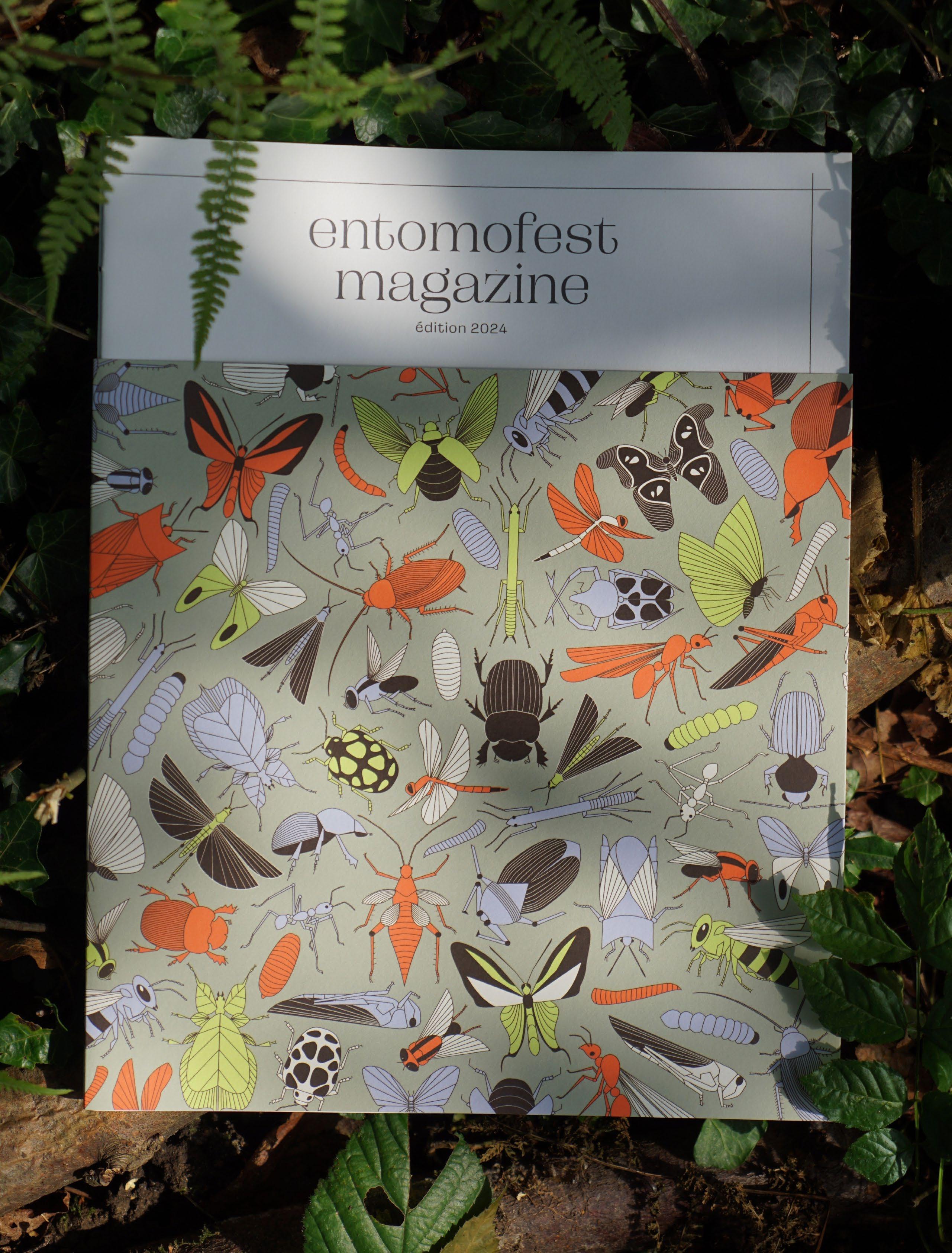 Le magazine entomofest est composé d’une multitude d’articles qui présentent les problématiques actuelles liées aux insectes : la pulvérisation de néonicotinoïdes, le commerce d’invertébrés, le déclin des populations d’insectes, le biomimétisme qui inspire des innovations dans l’industrie. Il est accompagné d’un petit sachet de graines pour semer une prairie fleurie et promouvoir la biodiversité dans nos jardins.