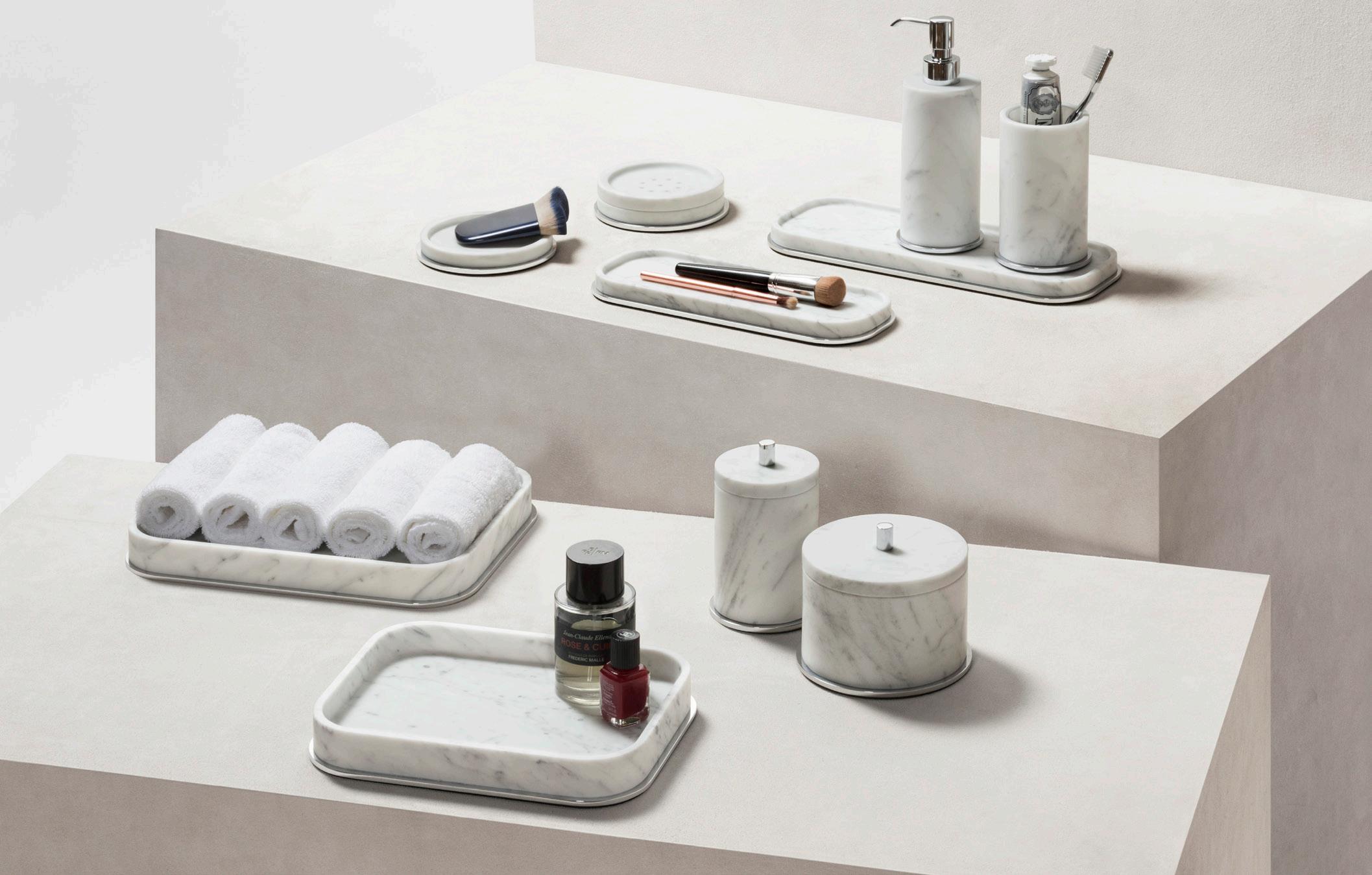 Conceived for both private and shared spaces, the Positano double walled bins naturally complement the bathroom and hospitality collections, while resonating with serveware and accessories from the same line.