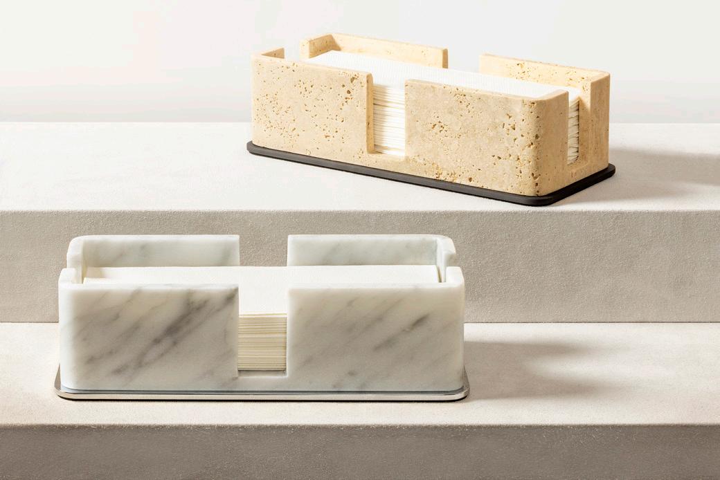 Also new to Firenze, a refined guest towel holder in marble or leather, a premium counter top solution that brings understated luxury to both private interiors and hospitality spaces.