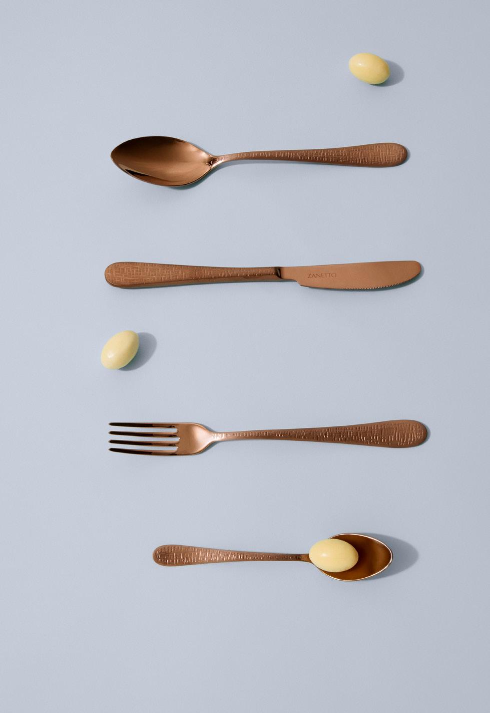 The Intreccio texturedelicately hammered onto the surface - celebrates the beauty of imperfection and the charm of artisanal irregularity, turning each fork, knife and spoon into a singular work of functional art.