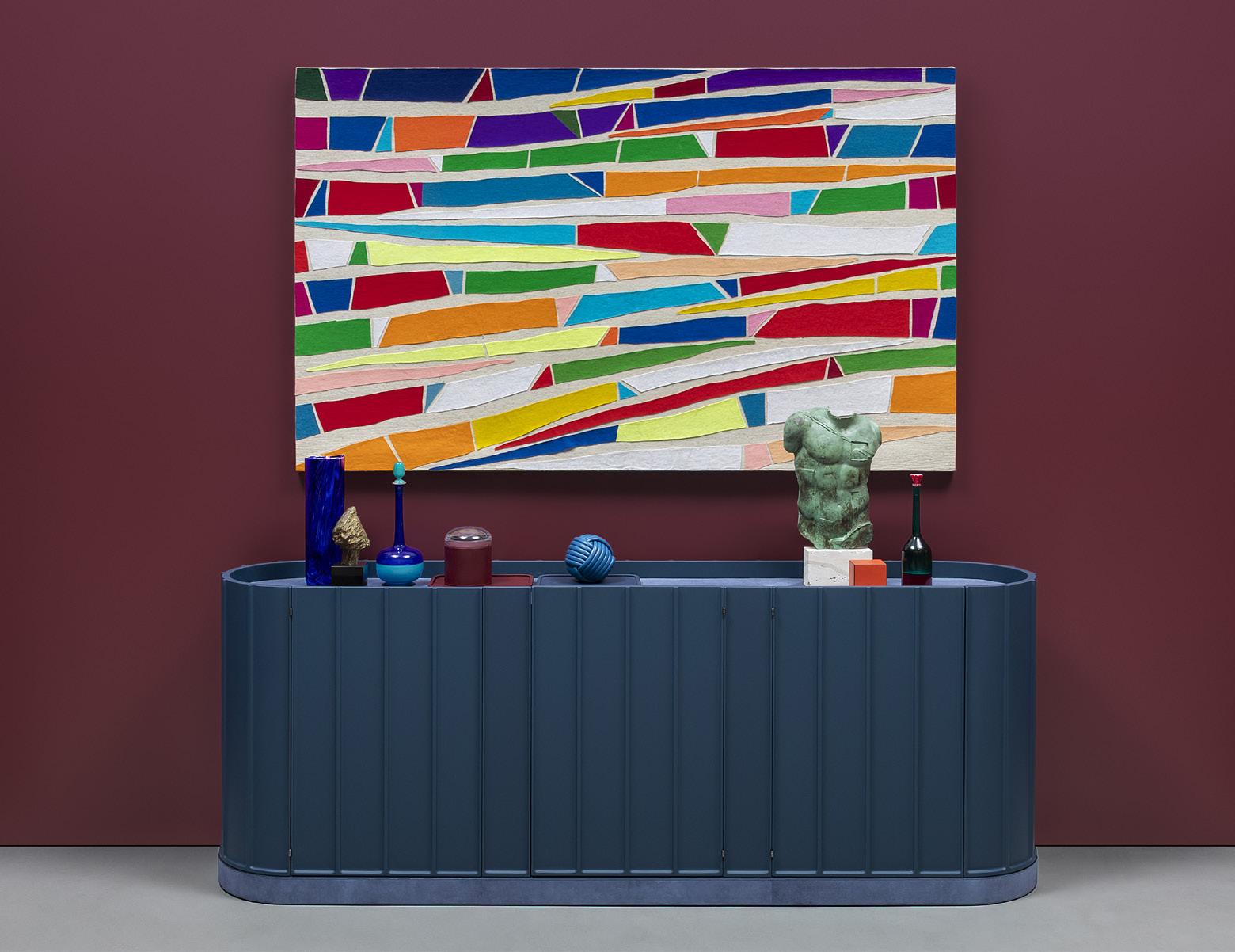 In his editorial work for Wallpaper* magazine and interior design work, Vinson assembles important pieces of furniture, design objects and art in highly curated vignettes. In the case of Giobagnara, Vinson found everything he needed for the 14 sets in one place. This included works by some of the great masters of 20th-century Italian art, including paintings by Agostino Bonalumi, Mario Scifano & Turi Sumeti, sculptures and ceramics by Pablo Atchougarry, sculptures by Igor Mitoraj, César Baldaccini & Robert Lienhard and works in aluminium by Bernard Aubertin and Salvatore Messina.