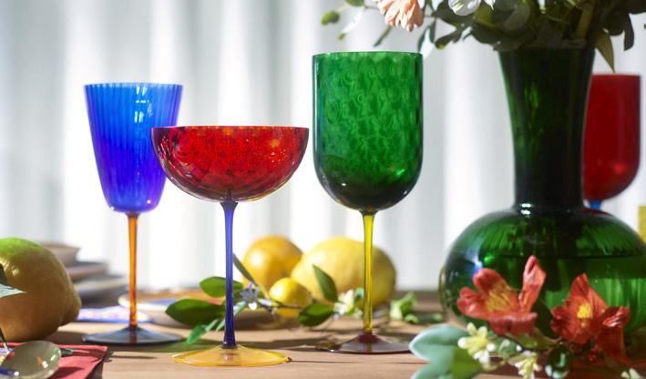 The Moka collection is offered in two enchanting variants: a transparent one that captures and reflects light, revealing the depth of the glass, and an opaline version that envelopes the shapes in an intense and suggestive softness.
