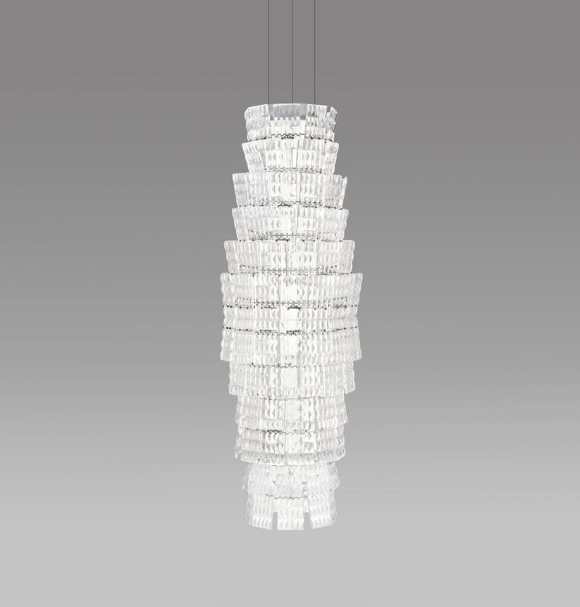 Frakki is the new collection of modular lights designed by architect Michele De Lucchi for VENINI. This project combines the architect's distinctive creative language with Murano's artisanal mastery, resulting in a lighting system that reinterprets the concept of modularity through glass shingles.