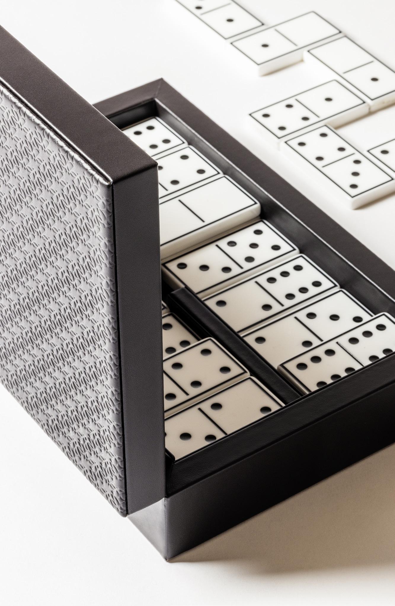 And, sitting side by side Giobagnara's emblematic photo frames, trays, boxes, book ends, containers, lighting, dishes and games crafted from wood, stone, bronze and the Genoa-based maison's signature material; leather are important examples of 20th century design by Garbeilla Crespi, Fulvio Bianconi, Alessio Tasca, Gae Aulenti, Pierre Cardin, Tapio Wirkkala, Paolo Venini, Gio Ponti, Bruno Gambone and Lino Sabatini.