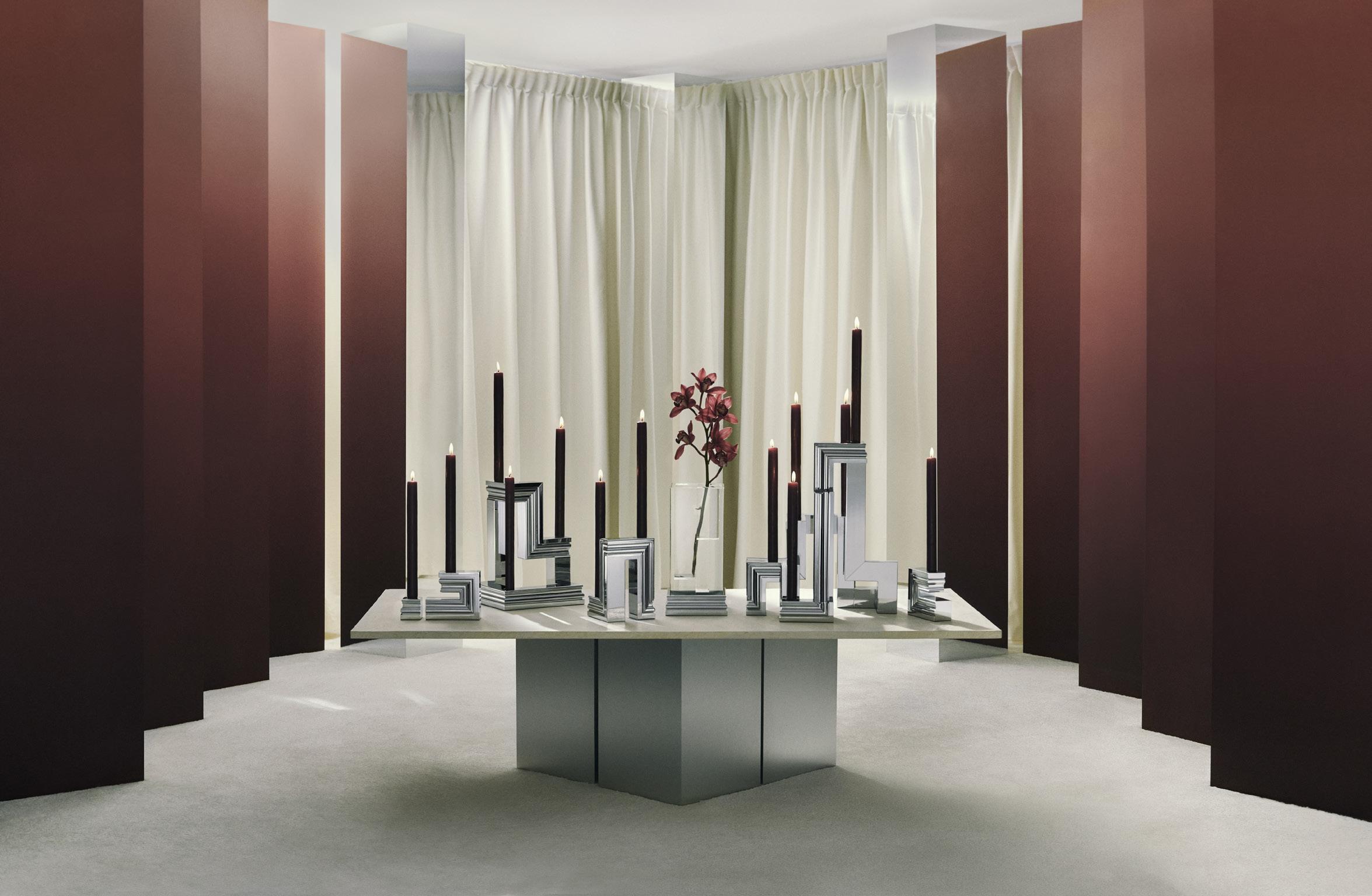For Christofle, Mathias Kiss dissects, recomposes - and liberates - the elements of a moulding to create sculptural candle holders, a vase, and candelabras. Revisiting a vocabulary of classical forms, he designs unique decorative objects, slightly surreal and full of character yet rigorously structured.