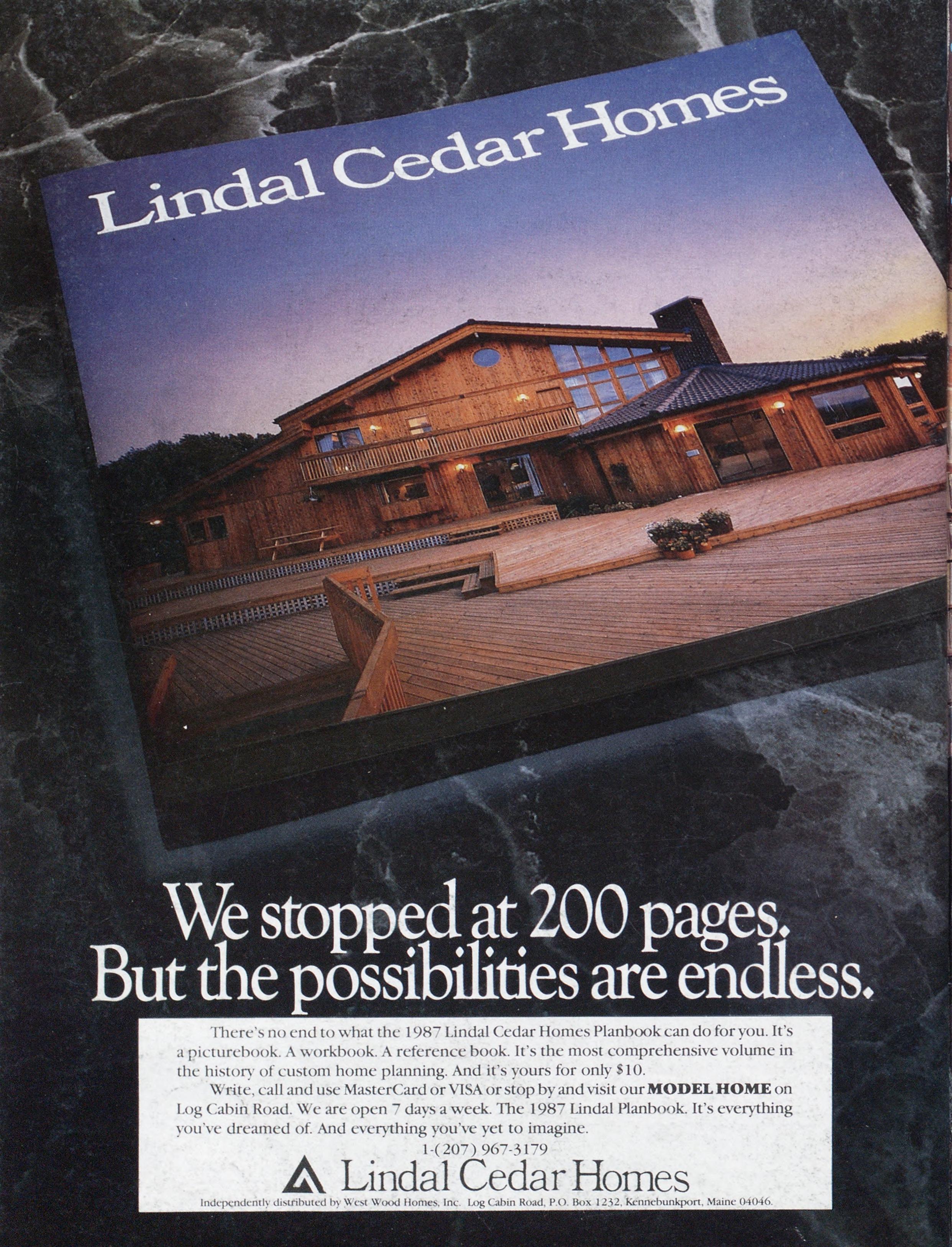 Lindal Cedar Homes. West Wood Homes. Inc.. Log Cabin Road. P.O Box 1232, Kennebunkport. Maine 04046(207) 967-3179
