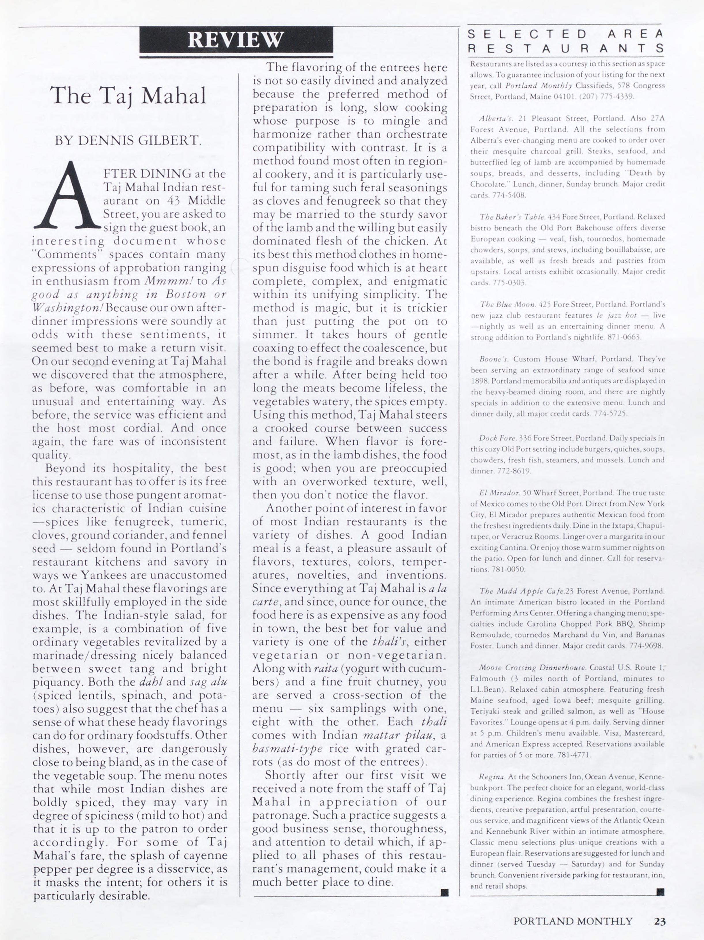Your November issue’s coverage of Greater Portland Landmarks as regardsthearchitecturalintegrityof Portland amounts to disinforma¬ tion.YourprofileofDebAndrews ("The10MostIntriguingPeopleIn Maine”)baldlystatedthatpriorto herascendancy,G.P.L.hadbecome an ”ivy-covered sanctuary for docentsandfeebletourguidesmil¬ lingabout.”Thisisaterribleand untruethingtosayabouttheorgan¬ izationwhich,morethananyother group or individual, focused the city’sattentionontheissueofhist¬ oric preservation during the key periodoftheSeventiesandearly Eighties.Tostatethatthe recent trendhasbeena"dramaticshift... from development-crazy metro¬ sprawling...tocarefullyplanned city”istoreversethefacts.Please notethedestruction,inthelastyear, ofmostofthesouthwesternendof theOldPort,theencroachmentof Miami Vice architecture on poor HenryLongfellow’slittlehouse,and ahorrificoverbuilding,throughout thecity,oflight-robbing,tax-driven officespace,spacewhichwillmost likelystandasemptyasthethou¬ sandsofsquarefeetofspacealready existinginthefloorsaboveCon¬ gressStreet.Callingthesuitregard¬ ingtheLongWharfproject"start¬ ling and effective” conveniently neglectsG.P.L.’slatervirtualcapitul¬ ationonthematter.Inall,it’svery hard to imagine a more effective way to twist the facts about the recentpast.