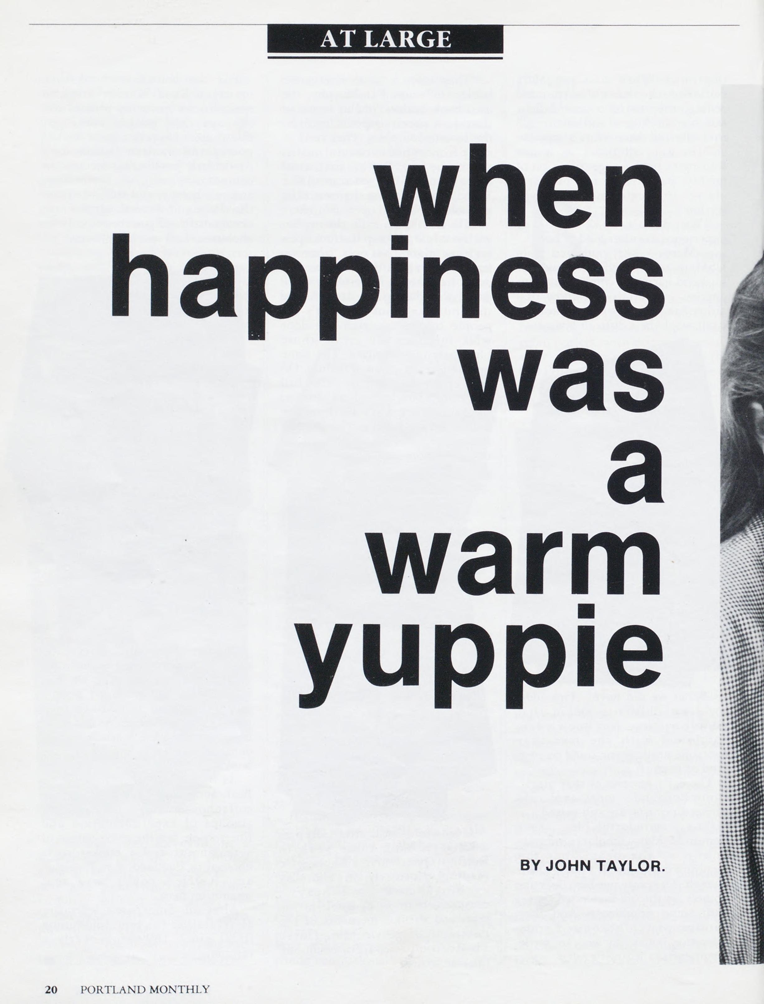 20 At Large: When Happiness Was A Warm Yuppie. ByJohnTaylor.
