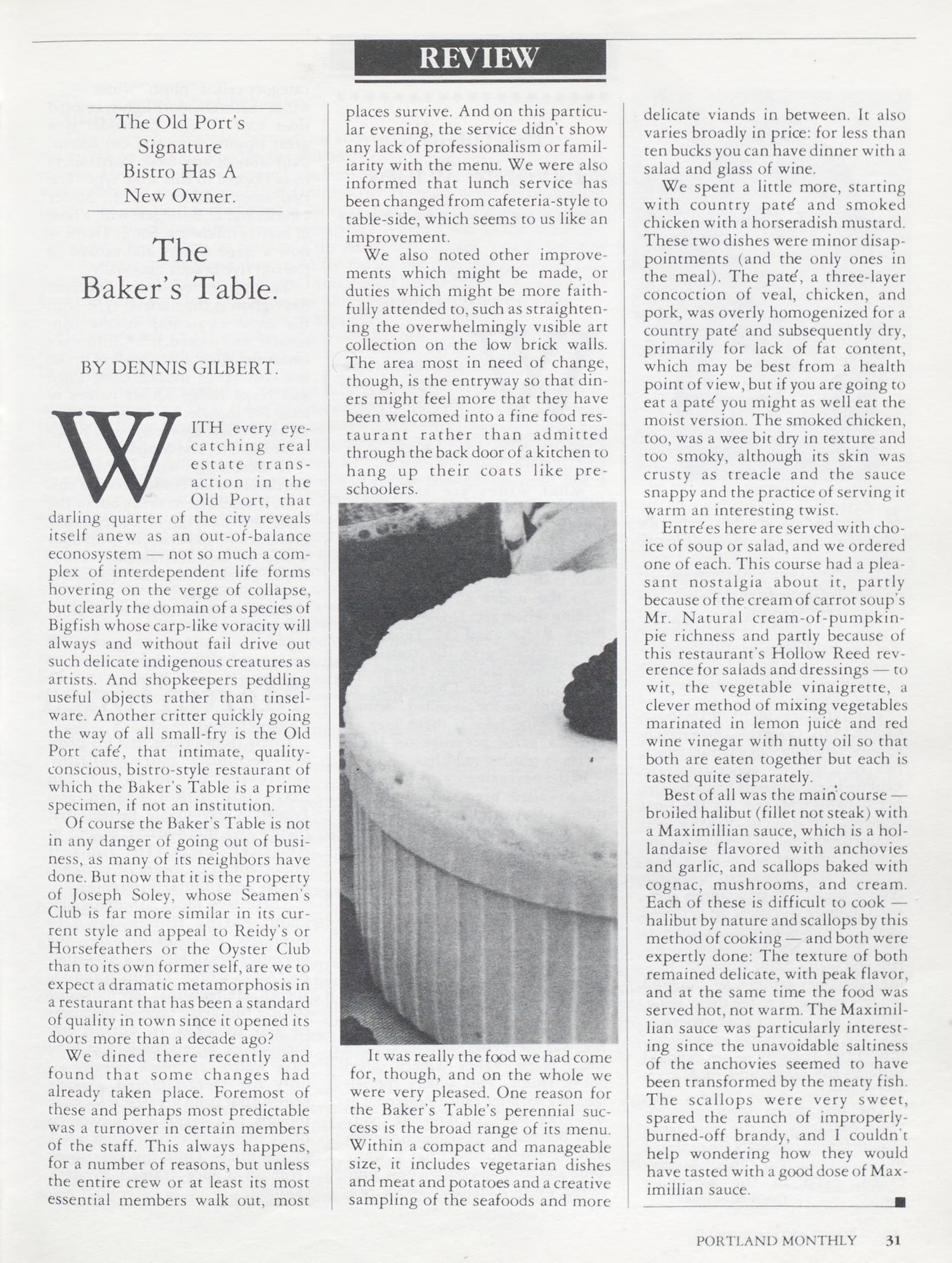 31 Restaurant Review. TheBaker'sTable. ByDennisGilbert.