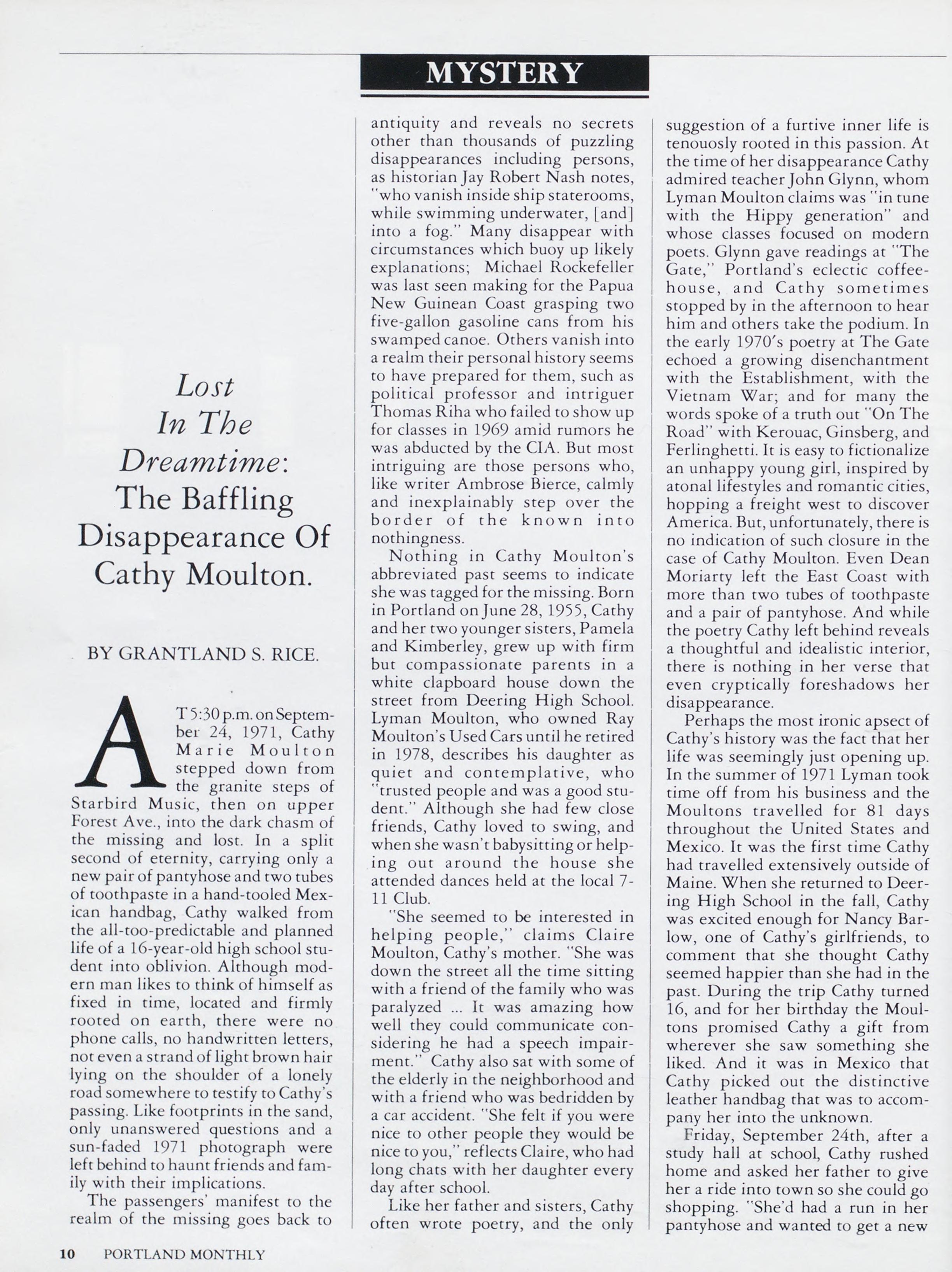 10 Mystery: LostInTheDreamtime: TheBafflingDisappearance OfCathyMoulton. ByGrantlandS.Rice