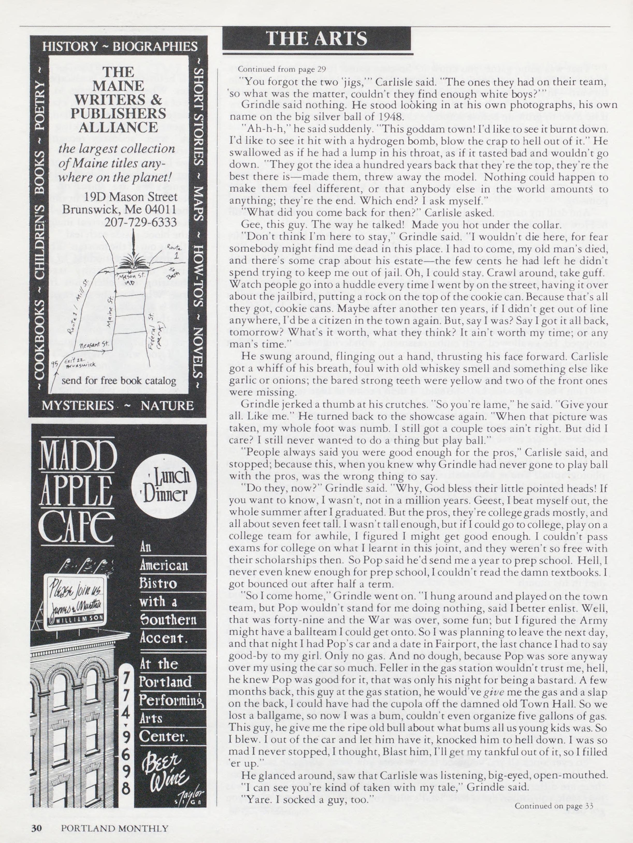 ENGLISHbicycle,used,men's,will payupto$100.WritetoBox508, PortlandMonthlyClassifieds,578 Congress Street, Portland, Maine 04101.
