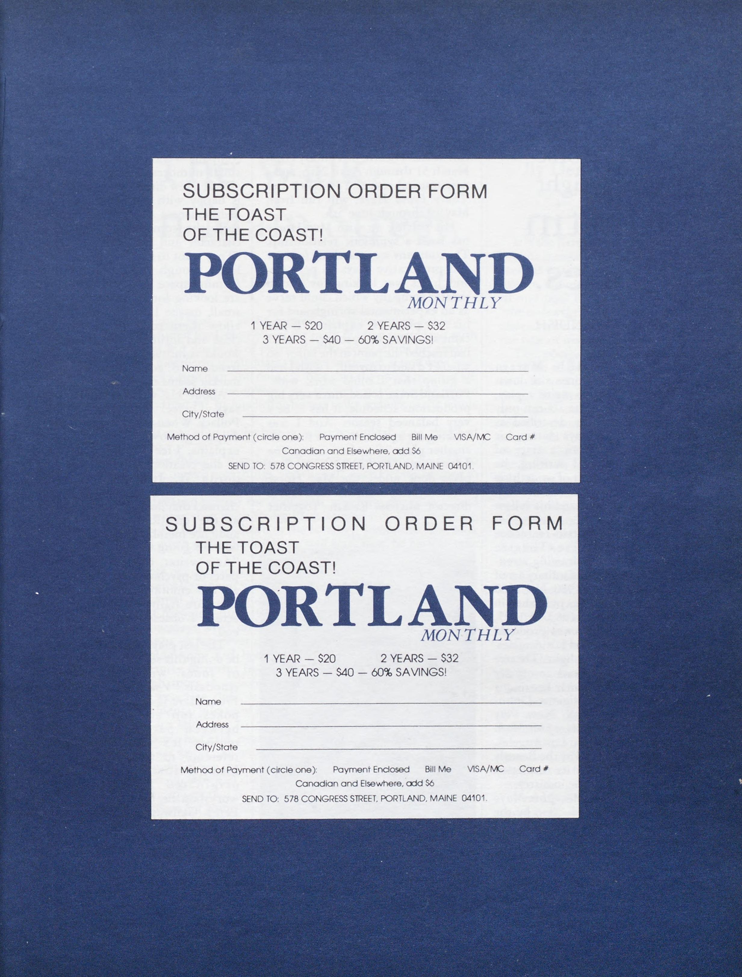 Address_____ City -ZipSend check to: PORTLAND MONTHLY, 154 Middle St., Portland, ME 04101