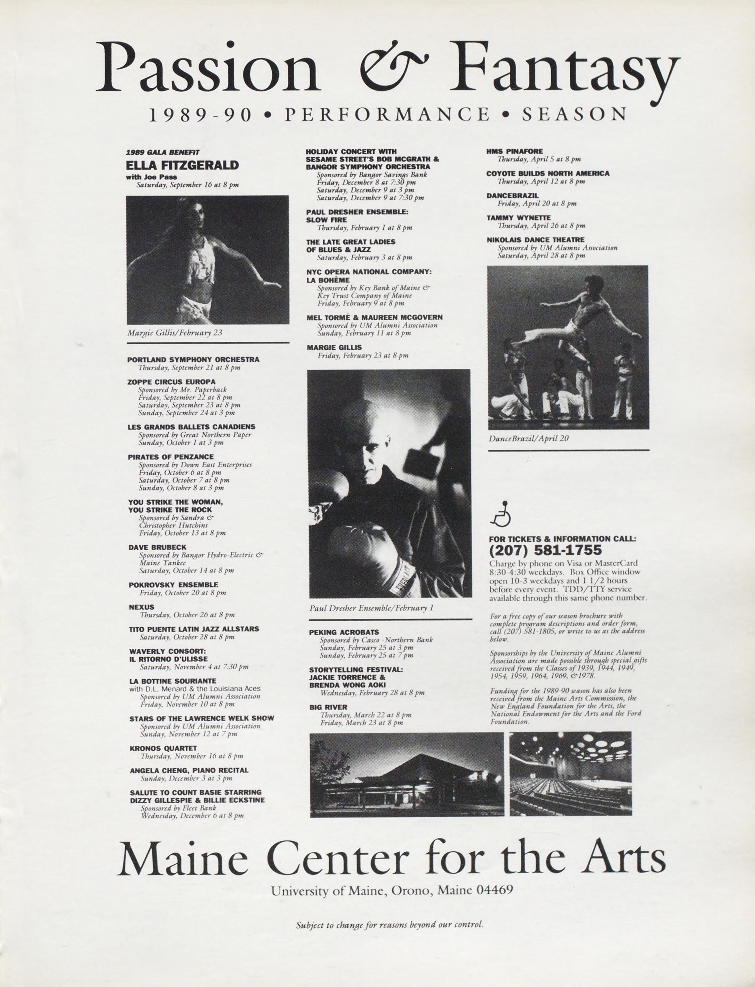 Forafreecopyofourseasonbrochurewith completeprogramdescriptionsandorderform, call(207}5811805,orwritetousastheaddress below.