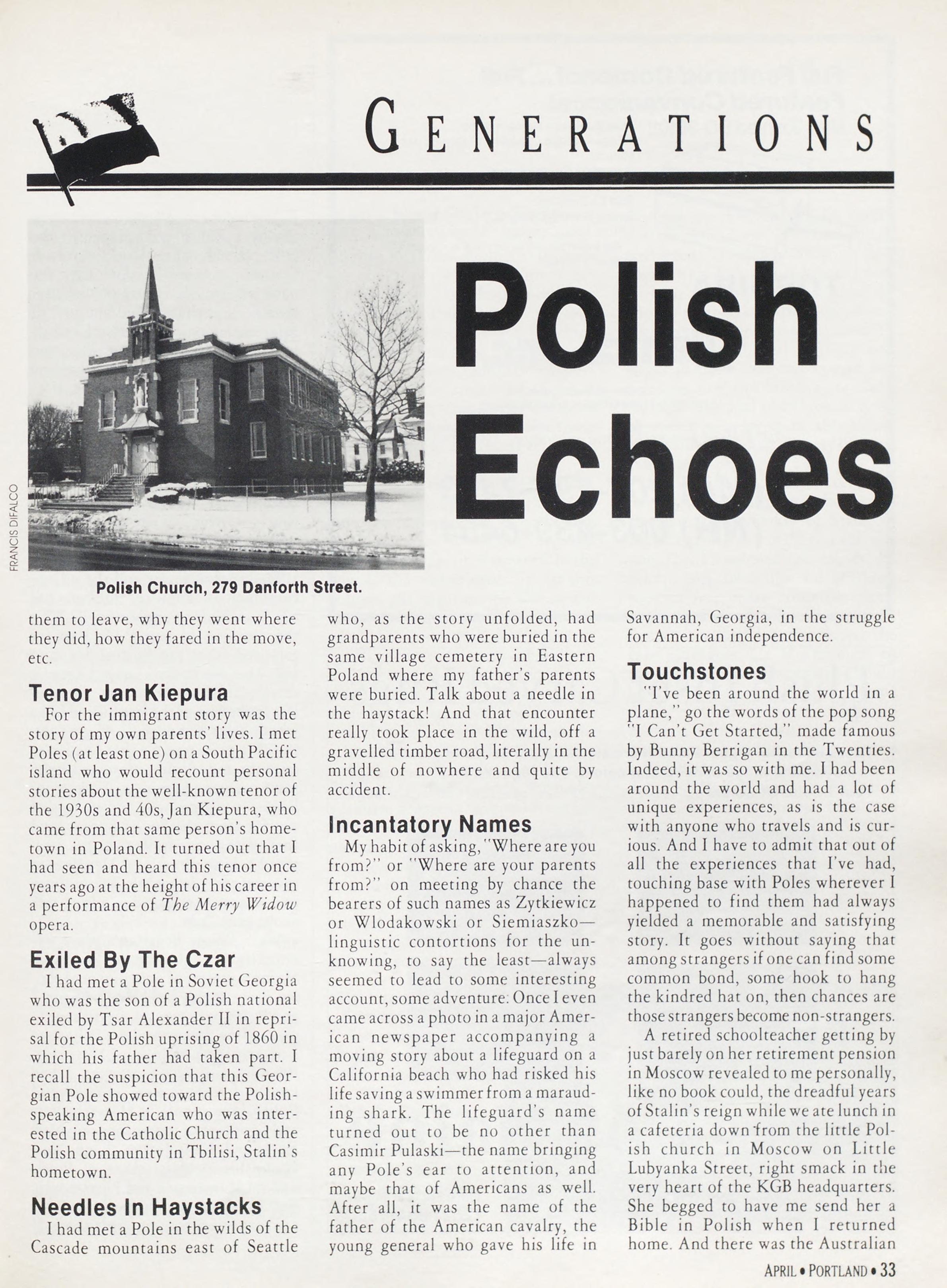 On The Magic Of Lost Neighbor¬ hoods—Iknewtherewassomething specialaboutthisissuewhenIwalked intotheofficeandCzeslawMilosz was on the telephone, inquiring aboutourEthnicityissueandthestor¬ iesweweredoingonPolishEchoes andtheLithuanianfriarsattheFran¬ ciscanMonasteryinKennebunk.