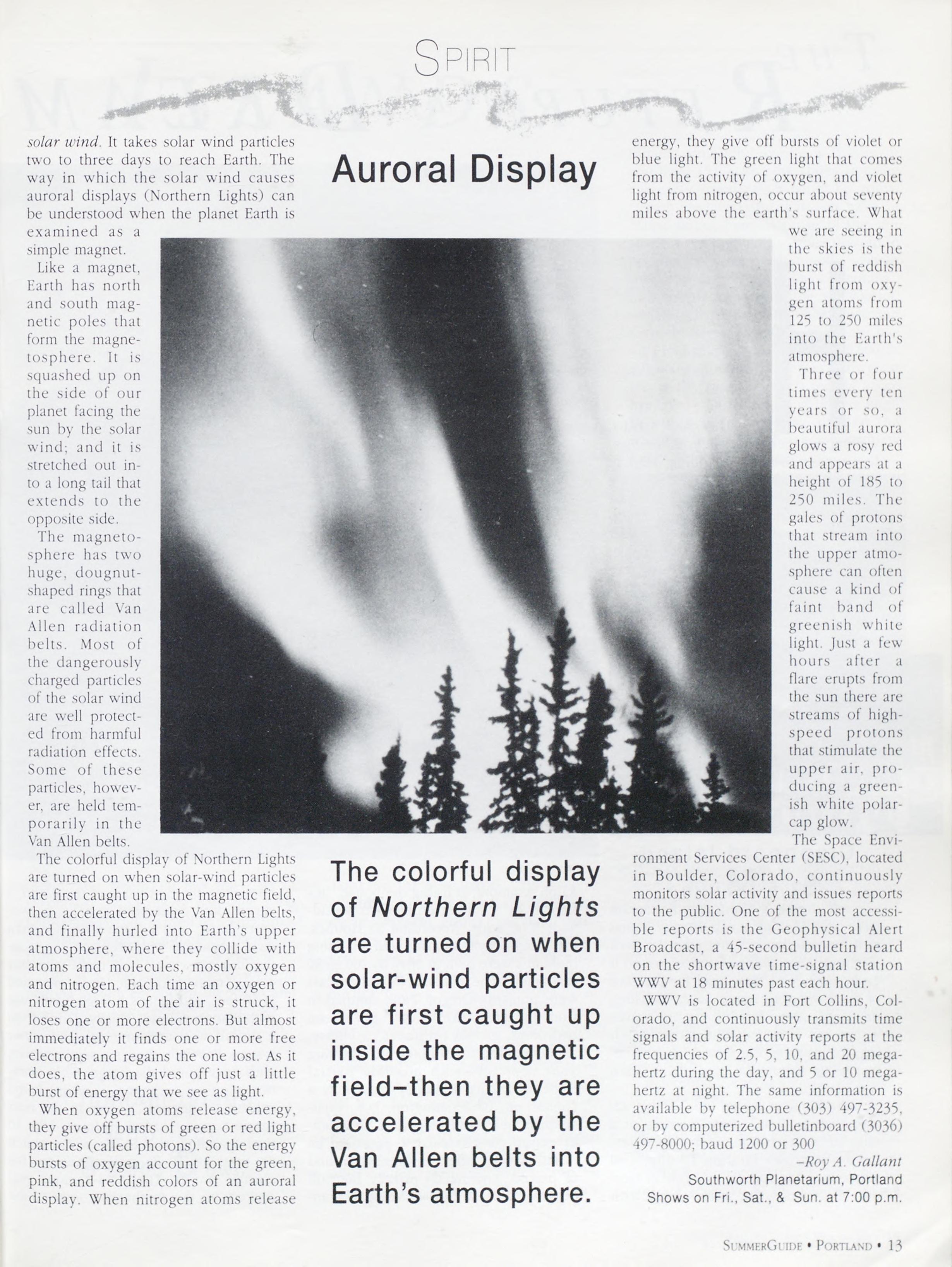 Inadditiontocomingupandgoingdown,thesungoes onrampagesofstormactivityincycles ofevery11years,and1990beginsone suchperiodofanespeciallyactivesun. Thepreludetothisyear'santicipated solardisplayswasa1989giantmagnetic solarstormthateruptedat8:52a.m.EST onMarch6th.Itwasthelargestknown solarflaresince198i.Anothersolarout¬ burstat1:30p.m.ESTtwodayslater causedskydisplaysvisibleasfarsouth asChicagoandupstateNewYork. Thisyearmayturnouttobearecord¬ breakingoneforsolaractivity.Thatcan meanunusuallysplendiddisplaysof NorthernLights.Butitcanalsomeanthe shut-downoflong-rangeradiocommuni¬ cation.disruptionofpowersystems (e.g.,computers),andevenchangein theorbitsofartificialsatellites.