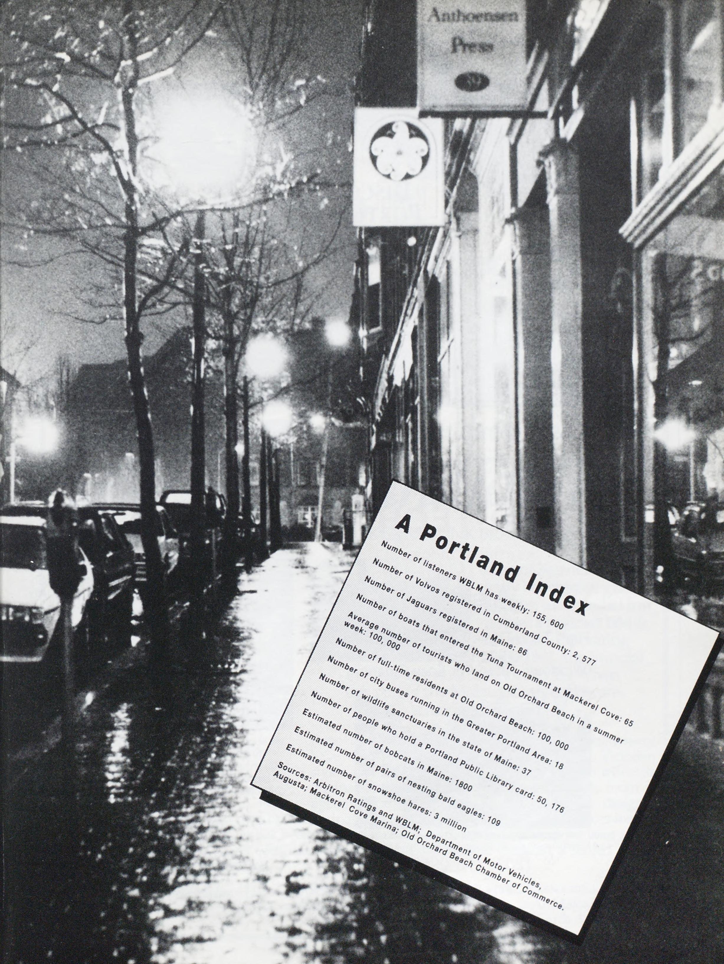 Respect IrespecttherecentissuesofPortland Magazine.Pleaseexpand“APortland Index.”IappreciatethefactthatPort-