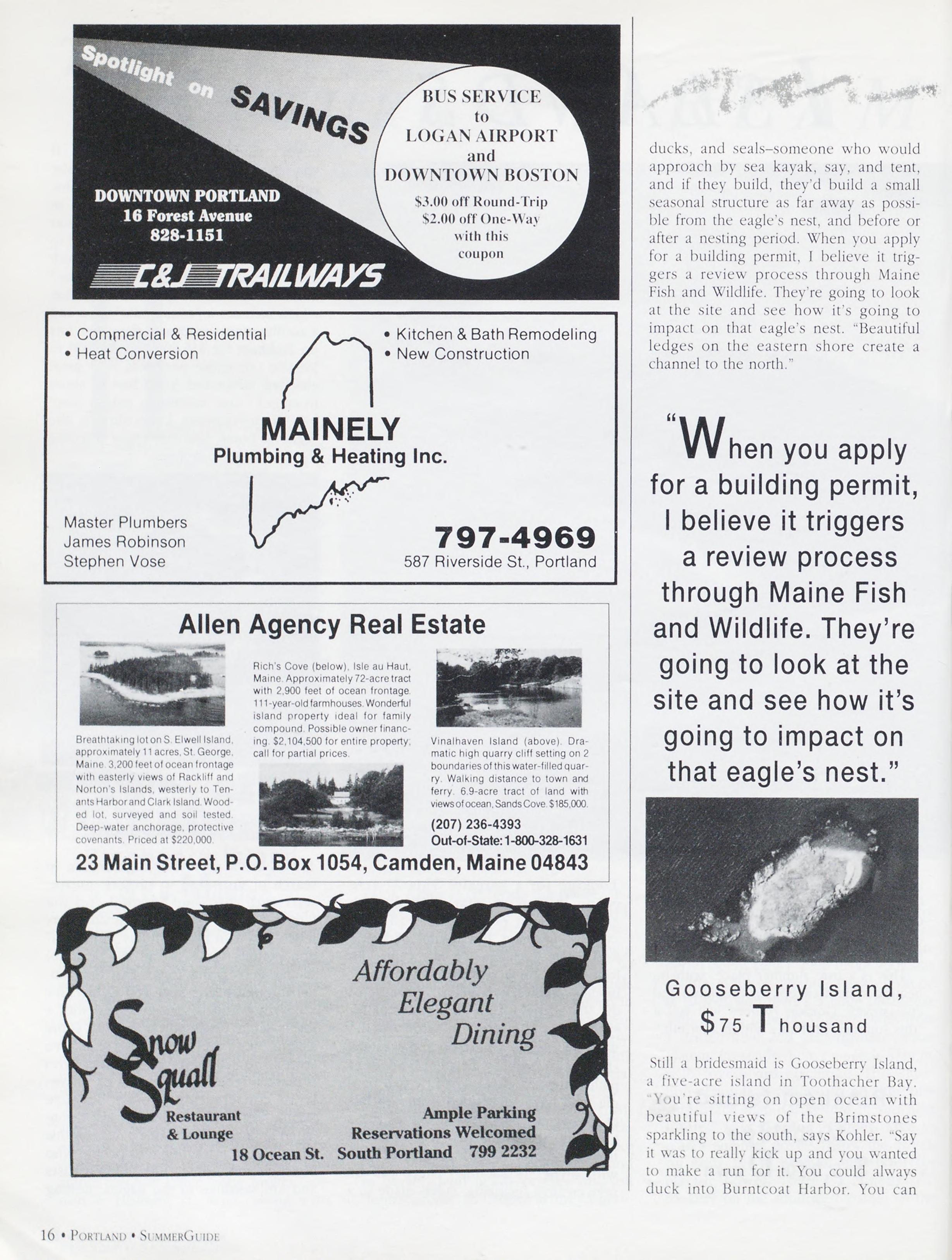 PORTLAND Magazineispublished10timesannuallybvColinand NancySargent.5’8CongressStreet.Portland,Maine04101,with newsstanddatesofFeb-March.April.Mav.SununerGuide,July Aug.September.October,November,December,andWinterGuide.