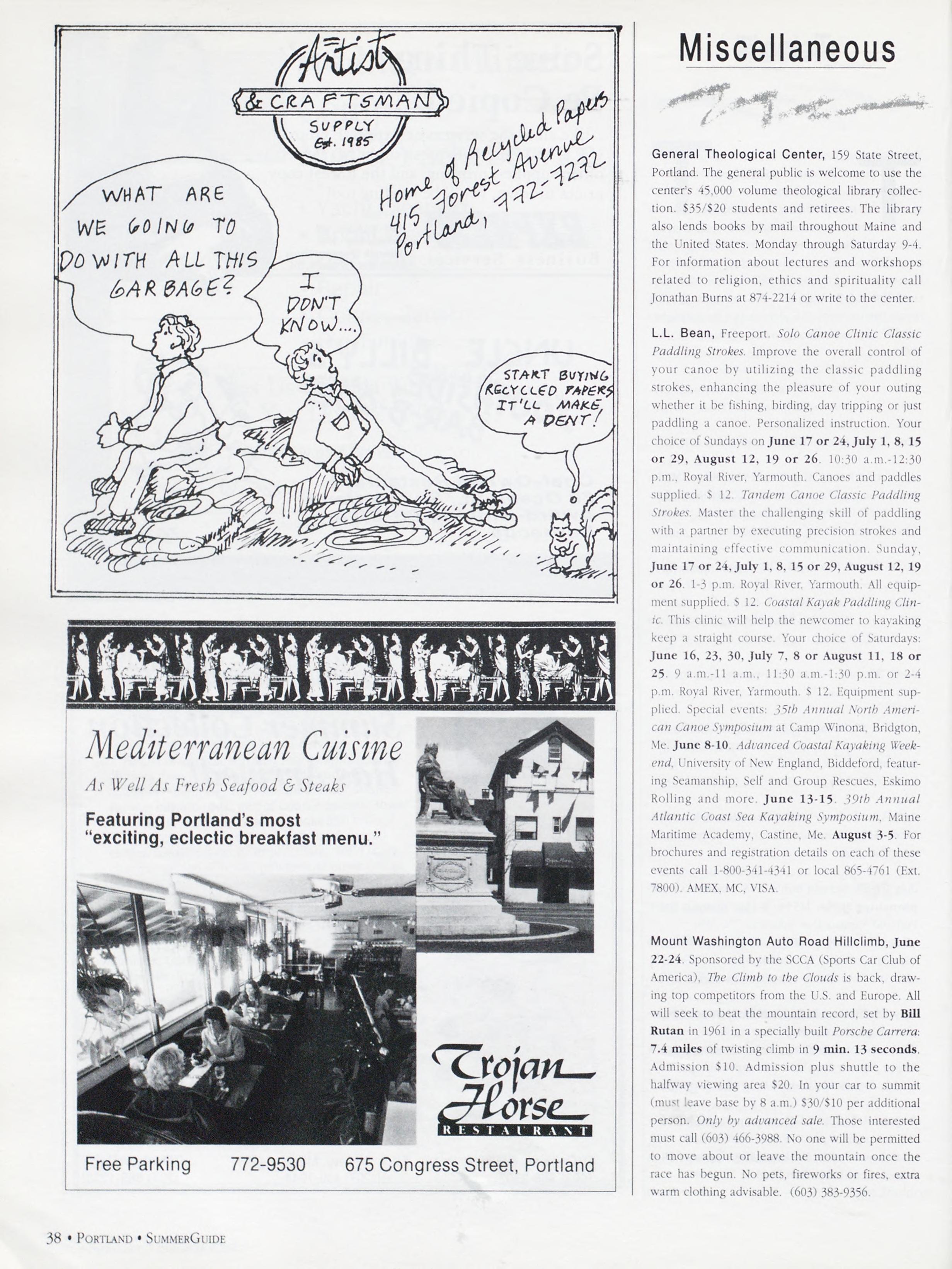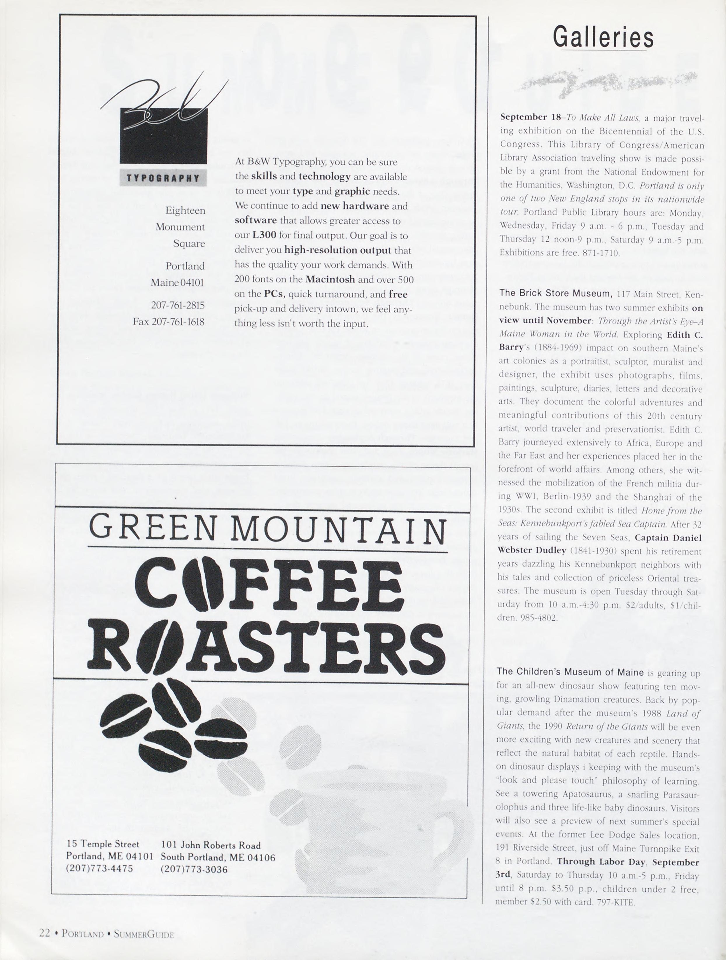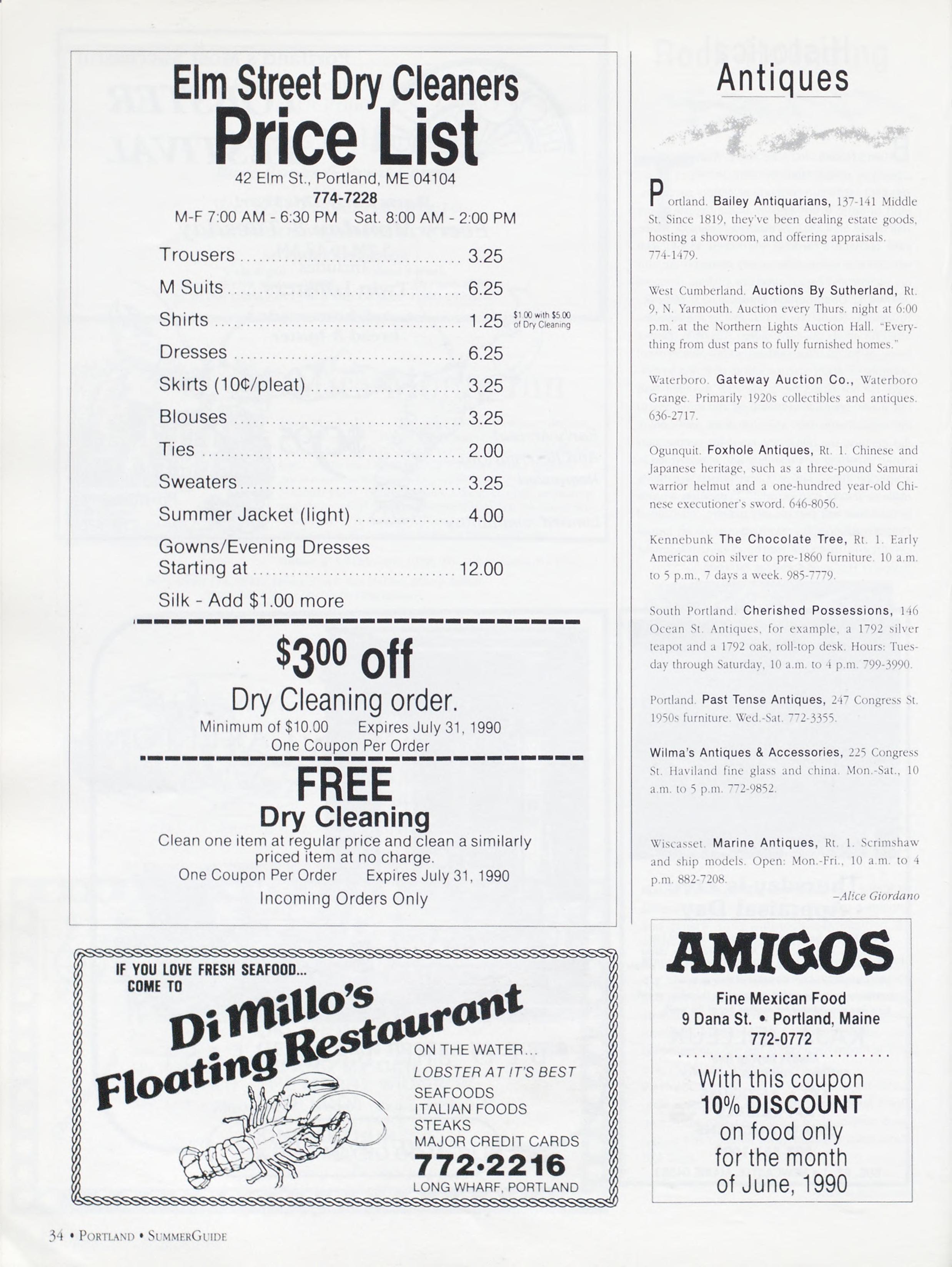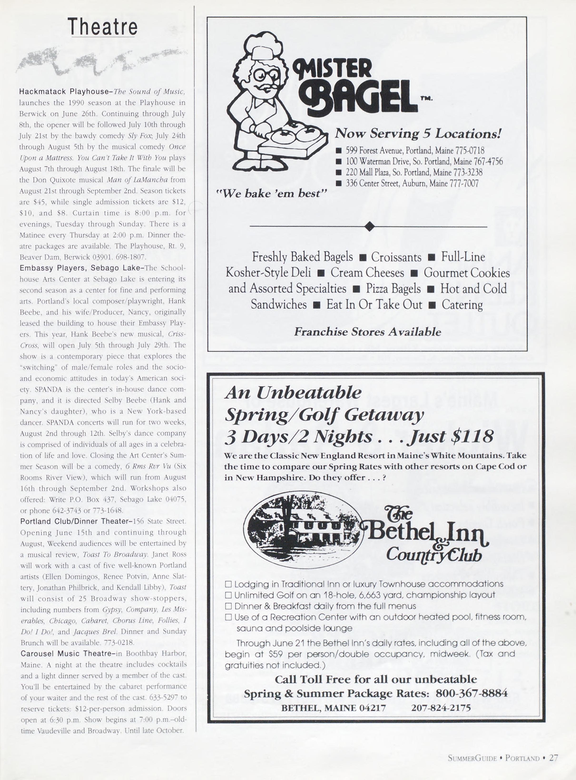 Newsstandcoverdate:June,pub.May1990Vol.5,No.4.01990. PORTLAND Magazineismailedatthird-classmailratestnPortland, ME0»101(ISSN088^.5340).Theopinionsexpressedinarticlesare thoseotauthorsanddonotrepresenteditorialpositionsofPORT¬ LANDMagazini-NothinginthisissuemayIk*reprintedinwholeor inpartwithoutwrittenpermissionofthepublishersSubmissions welcome,butnoresponsibilityistakenforunsolicitedmaterials