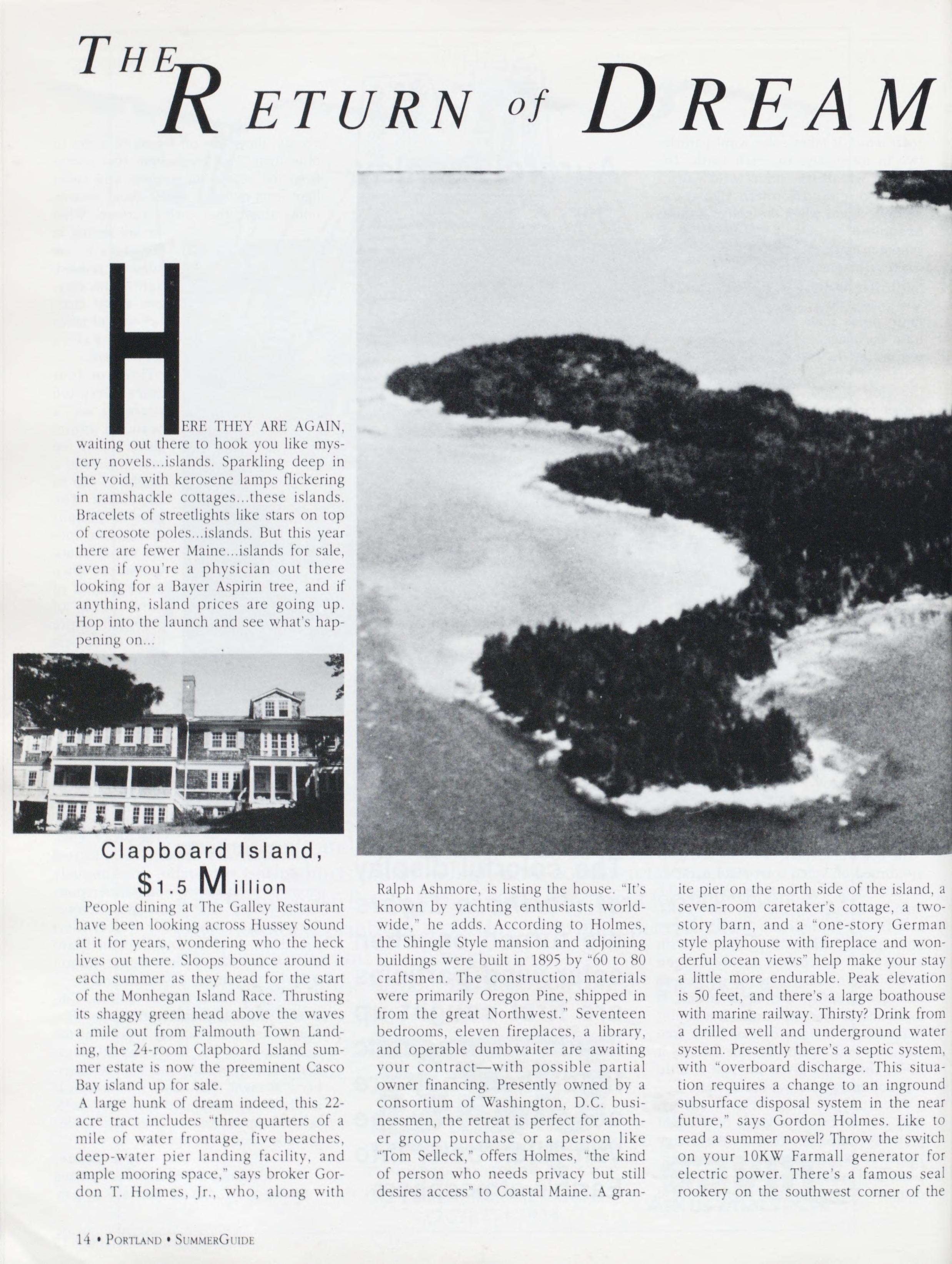Youjustdon’tknowthecallsI’vebeen getting...Thephone’sbeenringingoff thehook...fromtheguysgoingbackto thatera(MaineAfterDark,May,Vol.V, No.III).