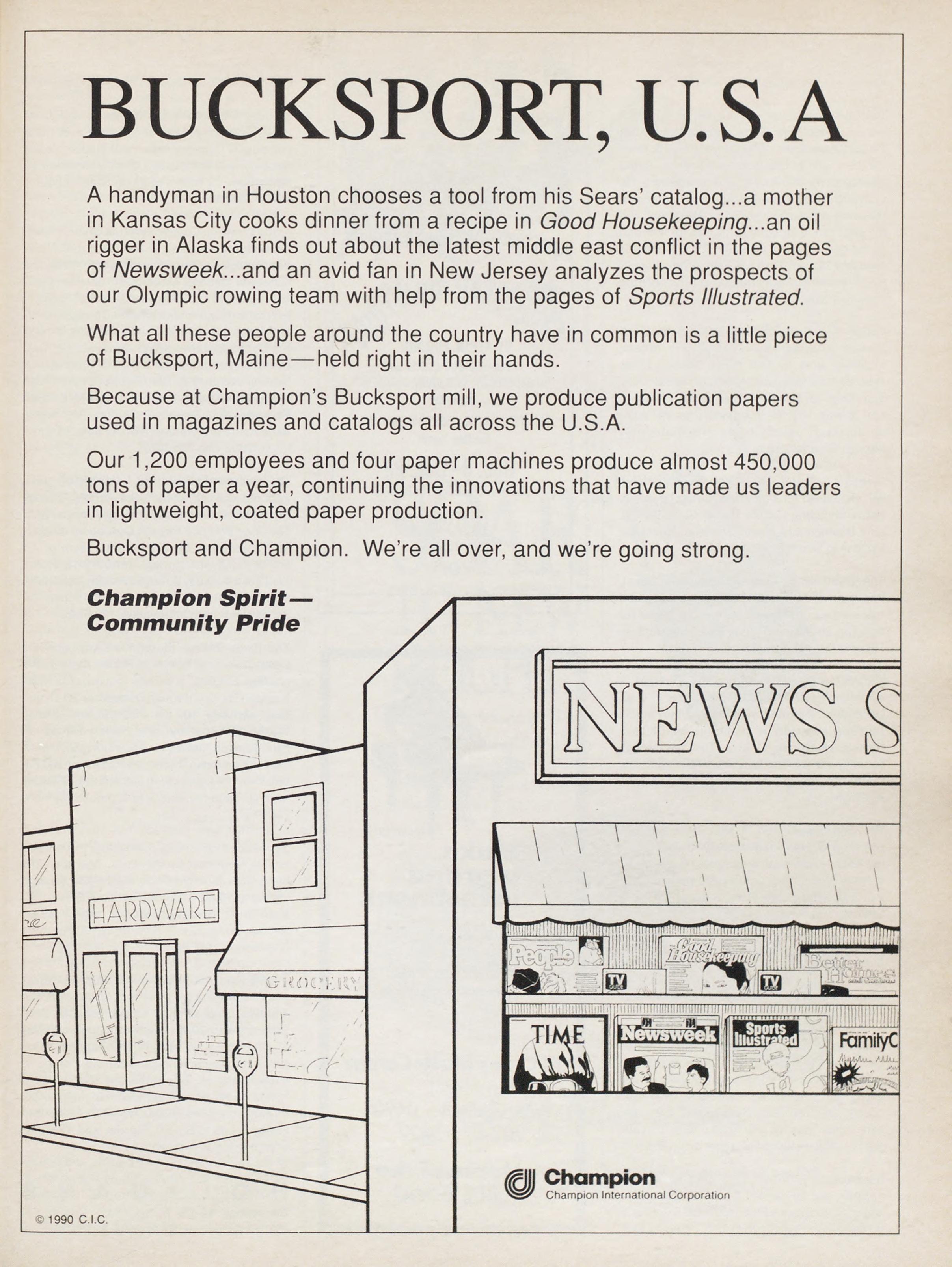 This magazine is printed on Maine-made paper pro¬ duced by Champion International, Bucksport. Maine.