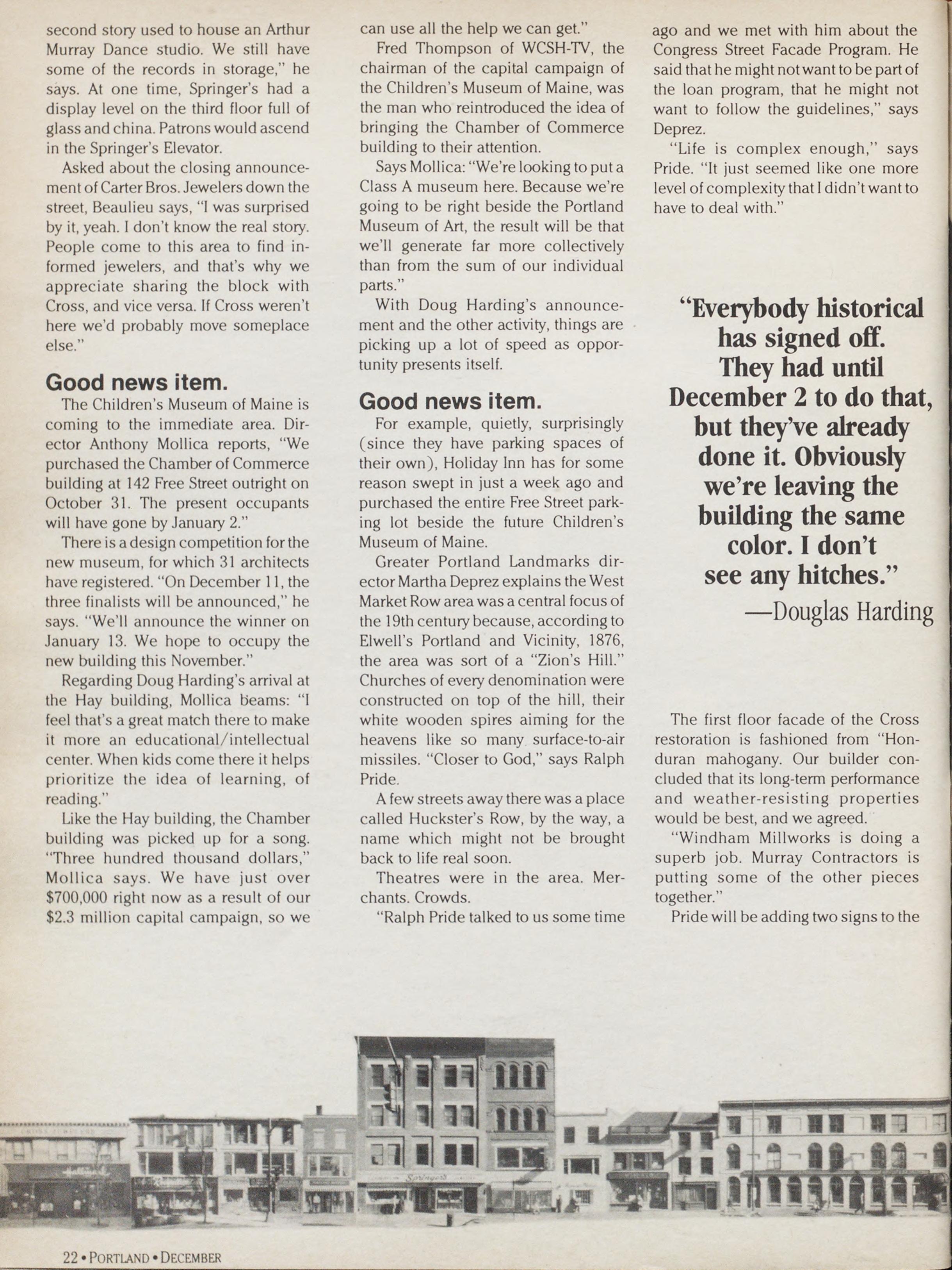 PORTLAND Monthly Magazine is published by Colin and Nancy Sargent. 578 Congress Street, Portland, ME 04101. All correspondence should be addressed to 578 CongressStreet,Portland,ME04101.