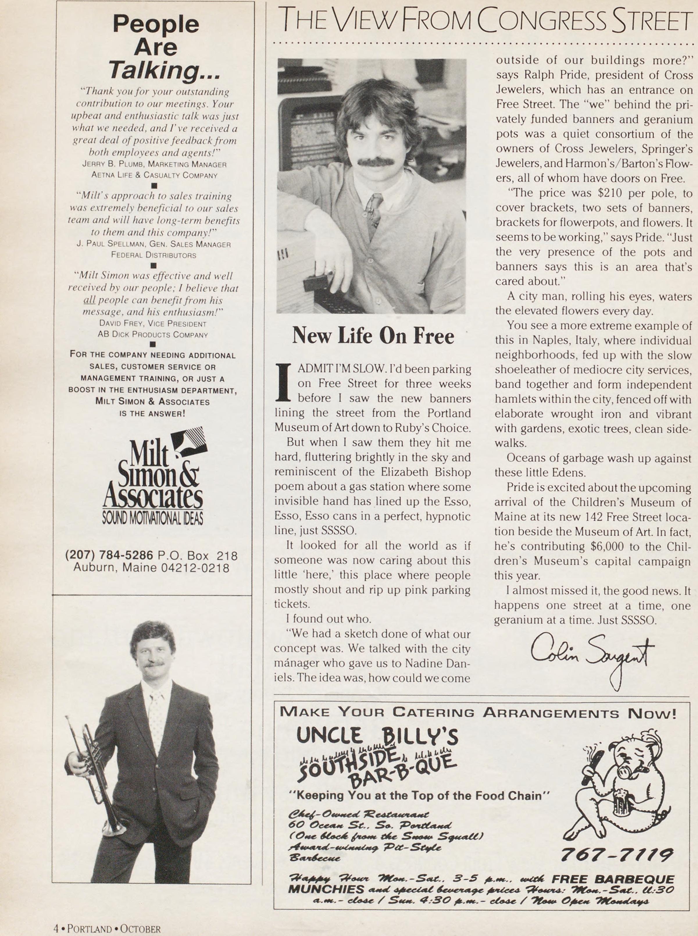 PORTLAND Monthly Magazine is published by Colin and Nancy Sargent, 578 Congress Street, Portland, ME 04 101. All correspondence should be addressed to 578 Congress Street, Portland, ME 04101.