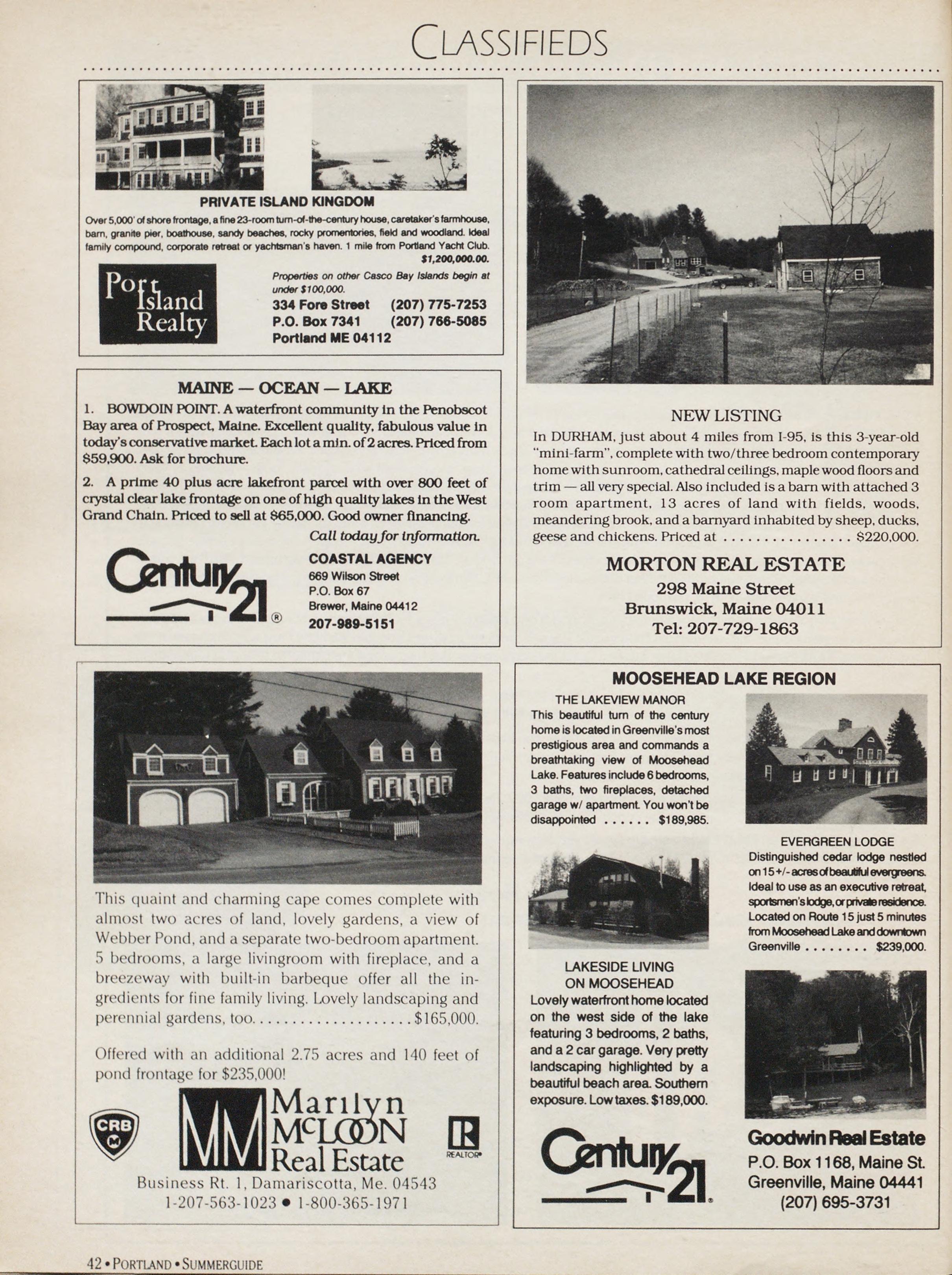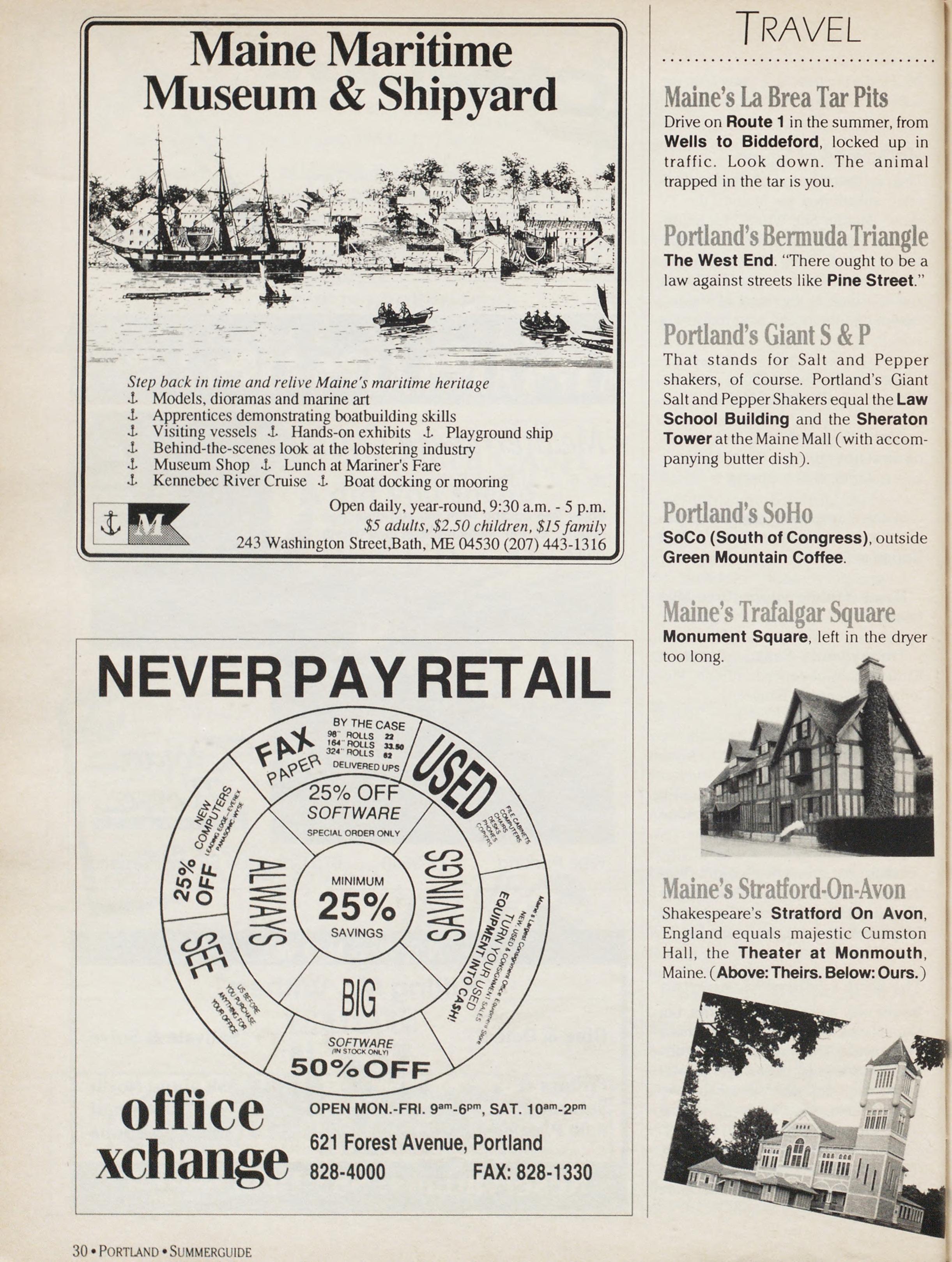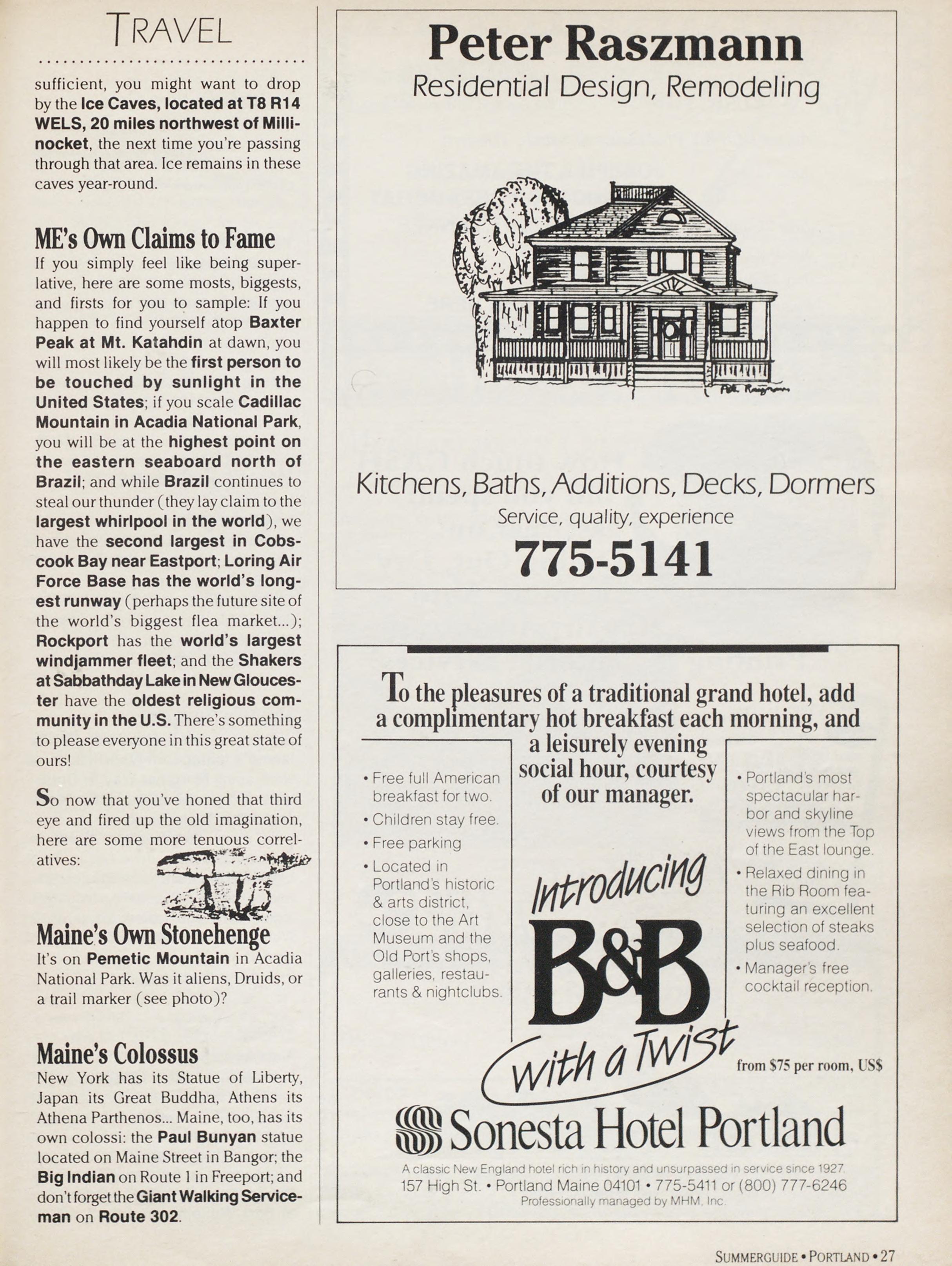 PORTLAND Monthly Magazine is published 10 limes annually by Colin and Nancy Sargent, 578 Congress Street,Portland,withnewsstandcoverdatesofFebru¬ ary/March.April,May.Summerguide.July/August,Sept¬ ember,October,November,December,andWinterguide.