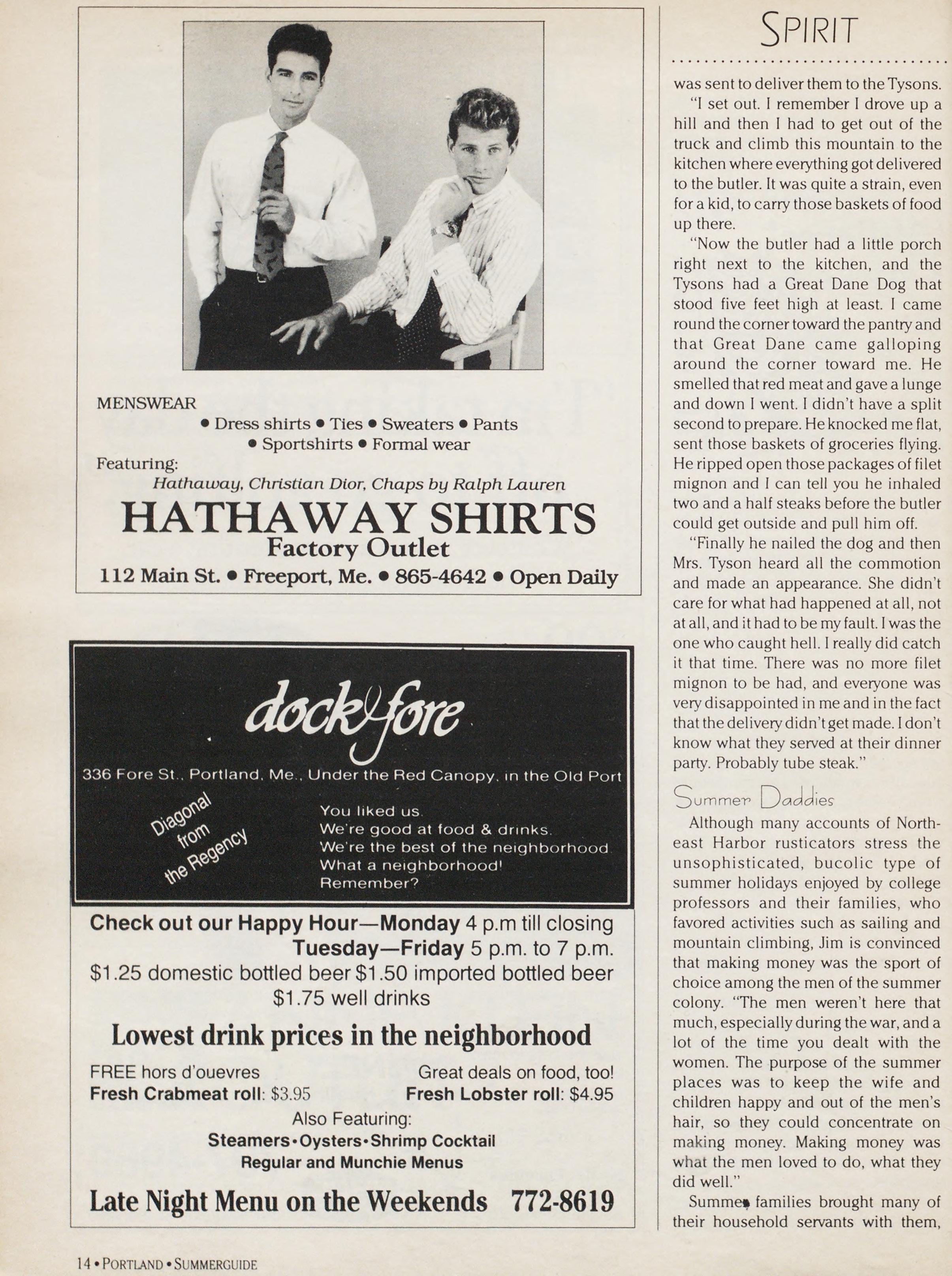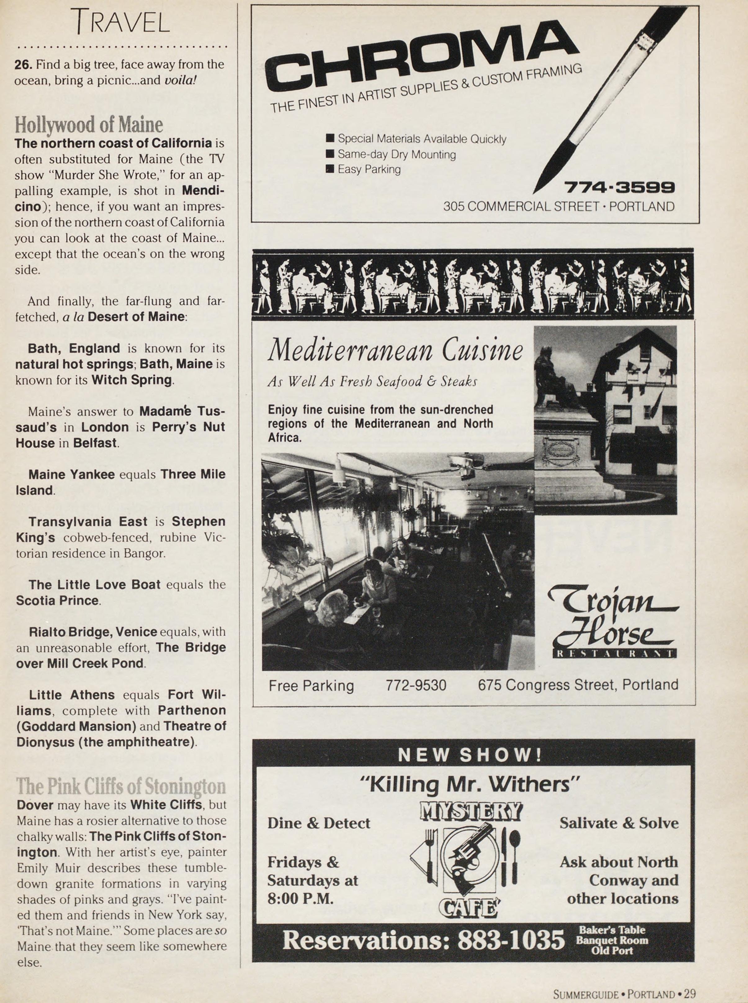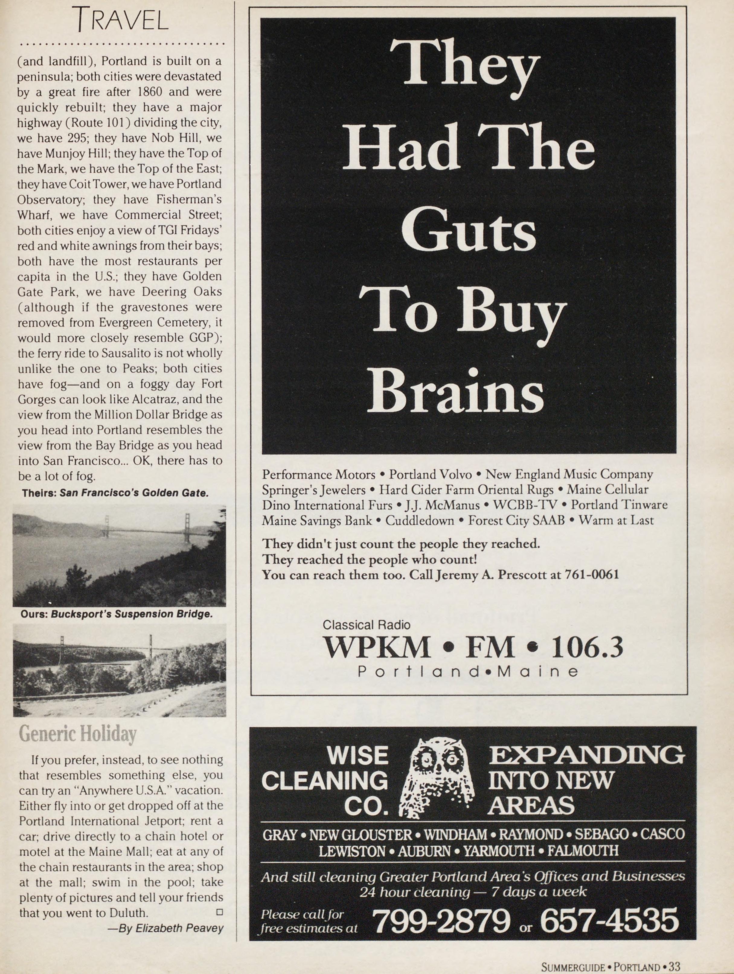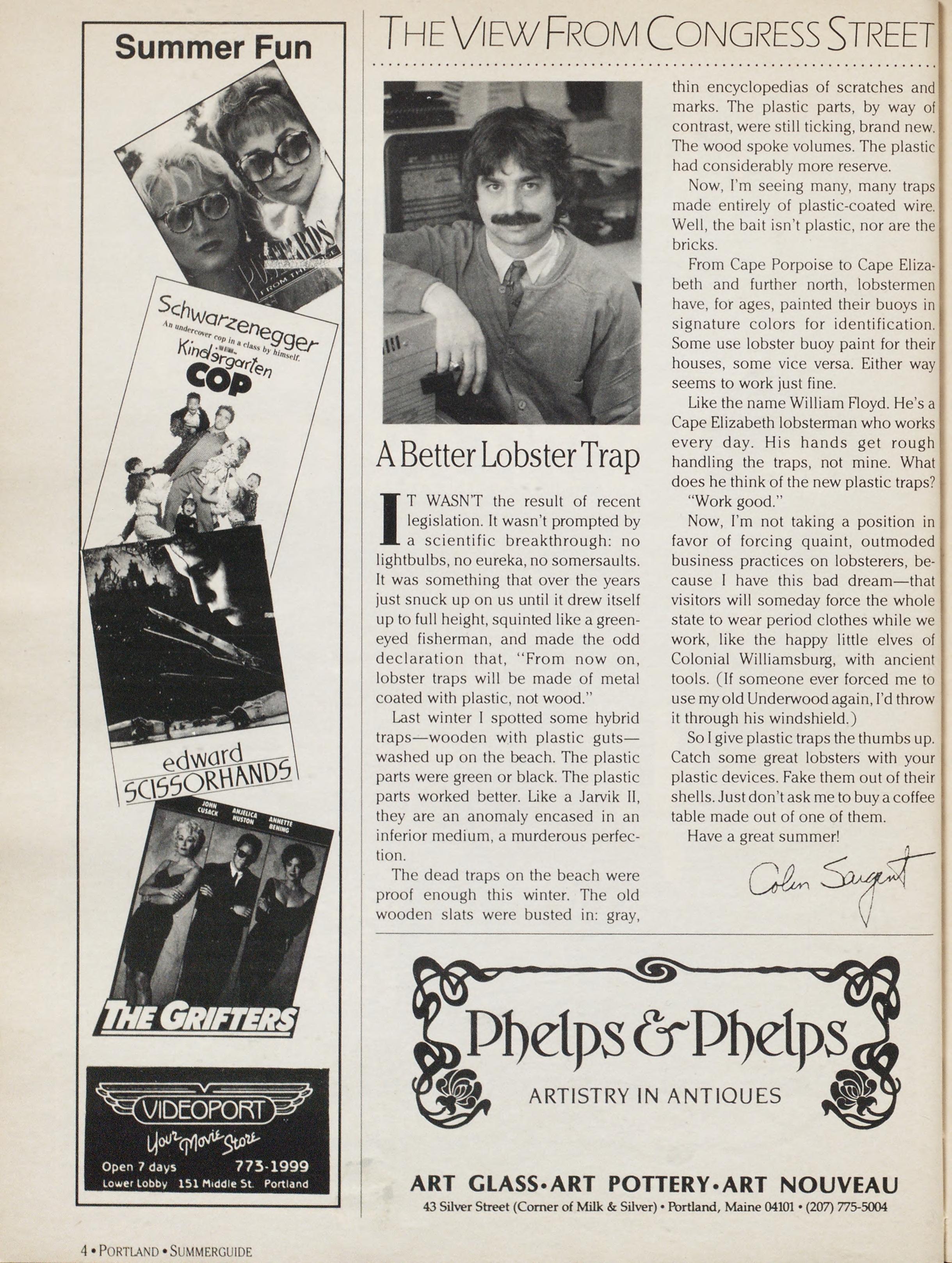 PORTLAND Monthly Magazine is published 10 limes annually by Colin and Nancy Sargent, 578 Congress Street,Portland,withnewsstandcoverdatesofFebru¬ ary/March.April,May.Summerguide.July/August,Sept¬ ember,October,November,December,andWinterguide.