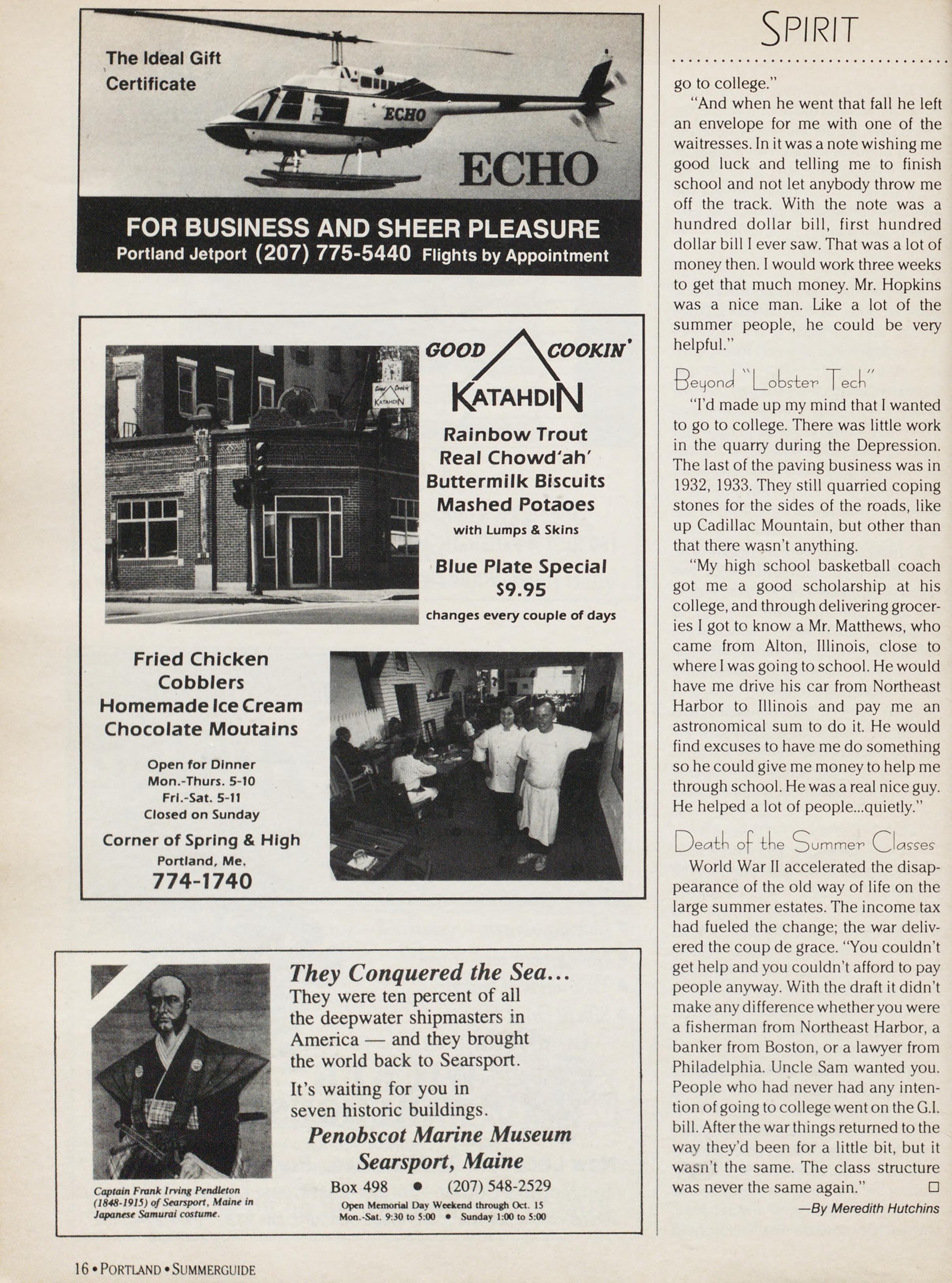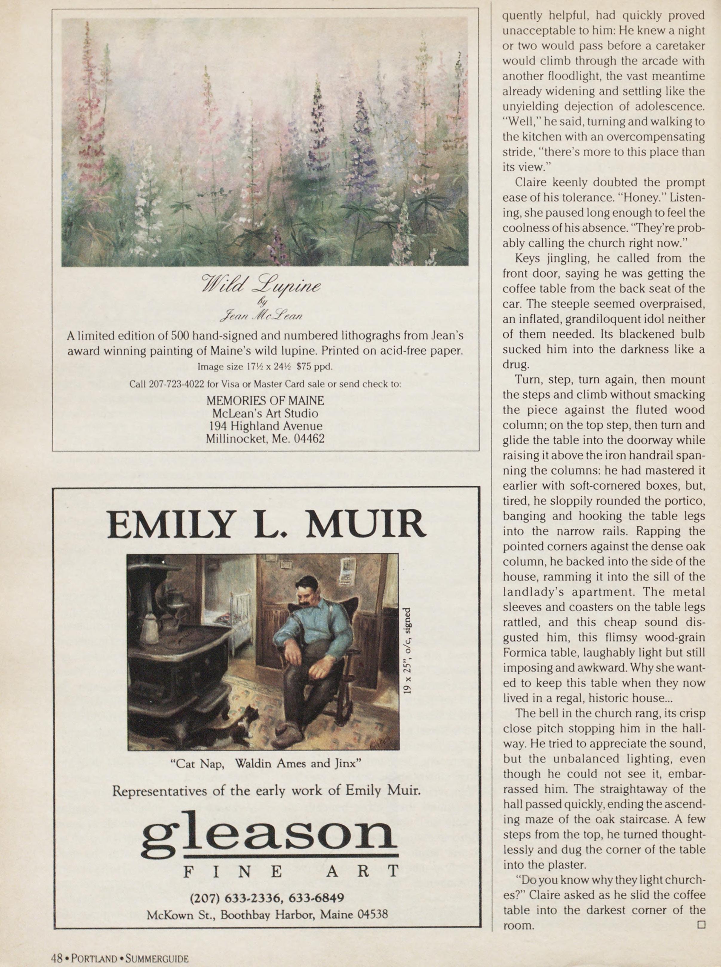 Portland Public Library, 5 Monument Square,Portland,presentsanexhibition, ParsOrientalis: EastAsiainOldMaps— laserfacsimilesofantiquemapsthrough June 28. Paintings by Willard Good¬ man, anexhibitionofwatercolorsand acrylicsbythisnotedPeaksIslandartist willbeheldJuly2-August15. You can viewthewinningpaintingsfromtheSide¬ walkArtFestivalfromAugust 19-31at Prizewinning Paintings, 871-1700.