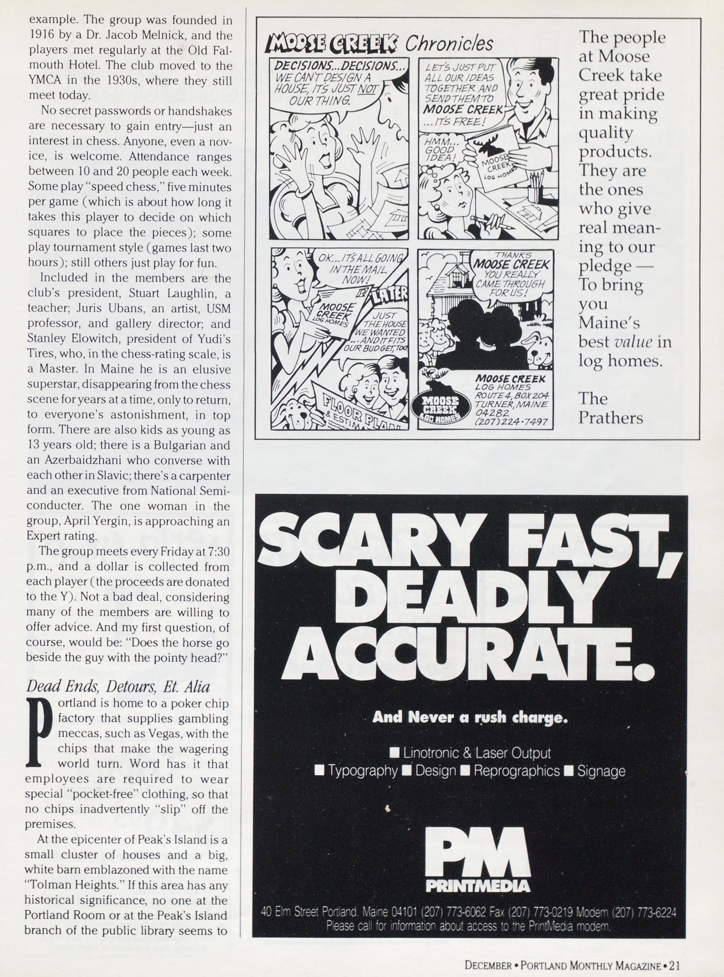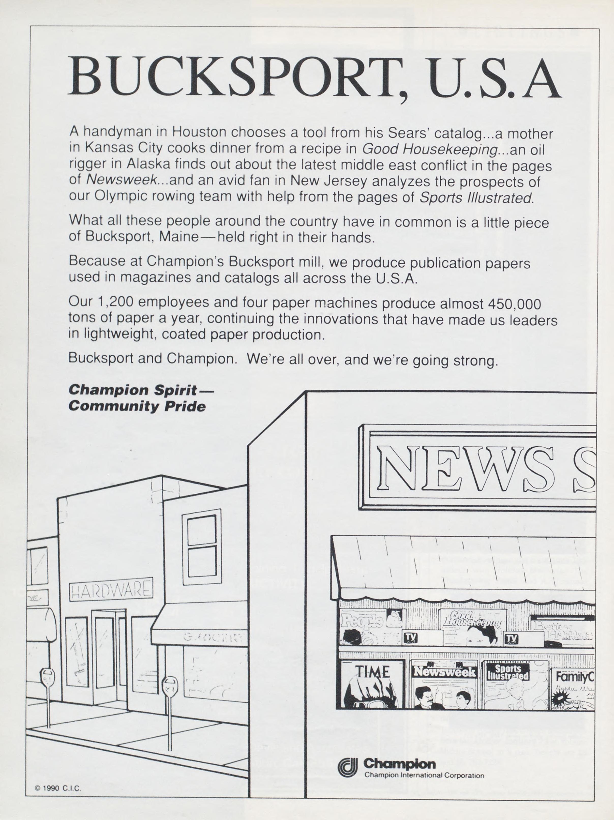 This magazine is printed on Maine-made paper pro¬ duced by Champion International. Bucksport. Maine.