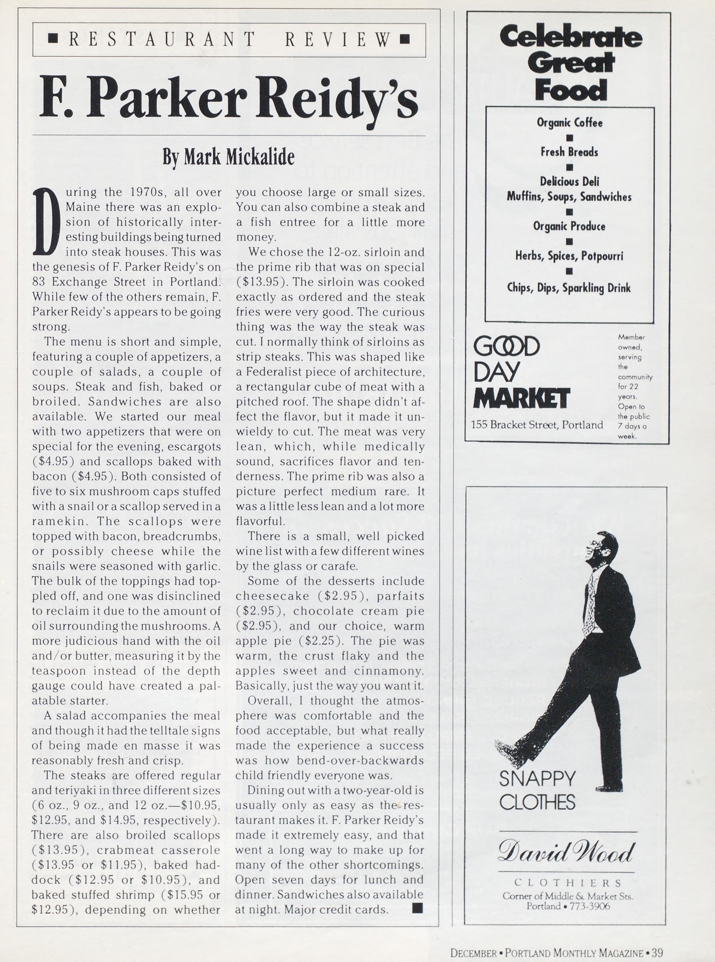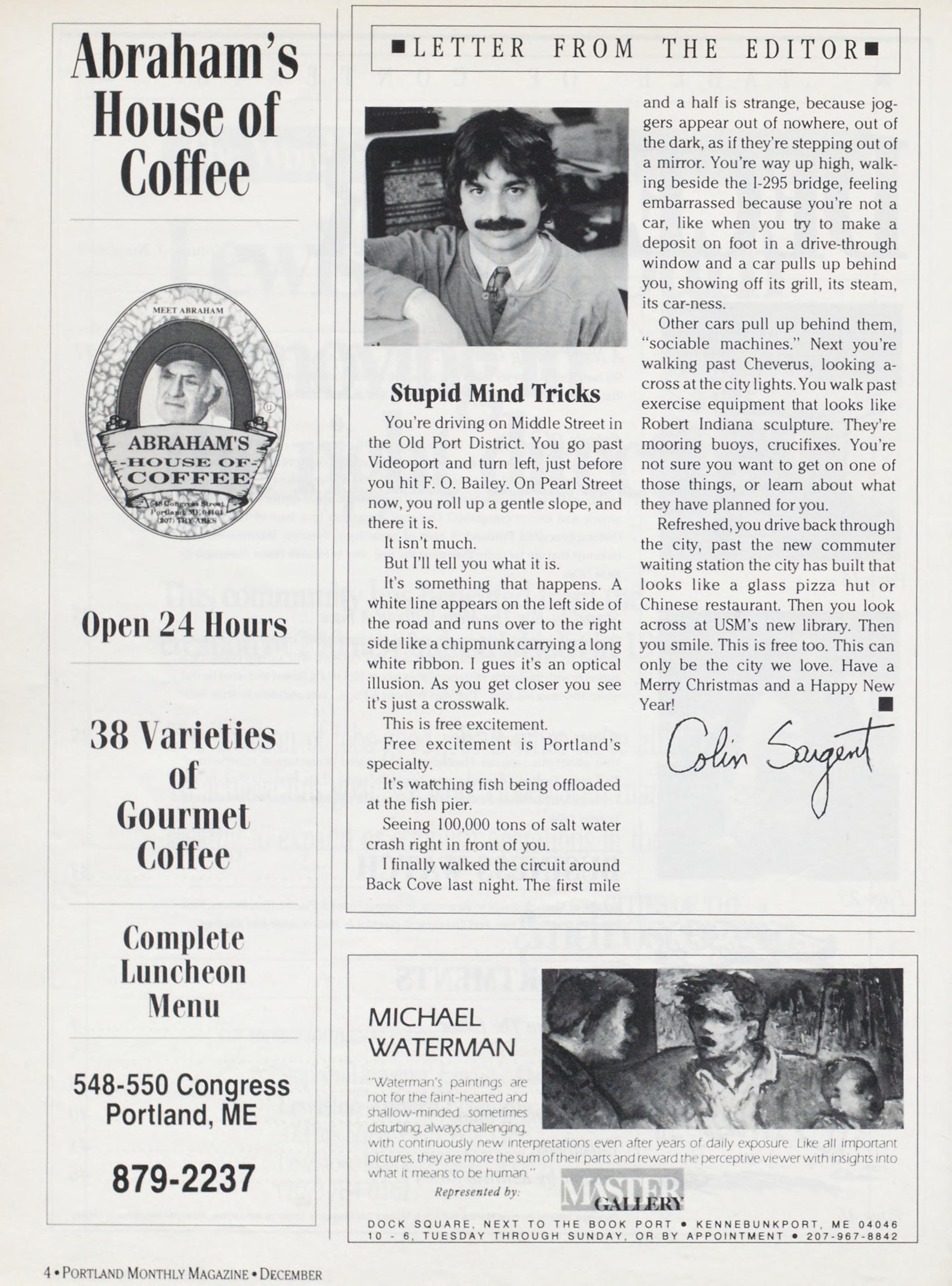 PORTLAND Monthly Magazine is published by Colin and Nancy Sargent. 578 Congress Street. Portland. ME 04 101. All correspondence should be addressed to 578 Congress Street. Portland. ME 04101.