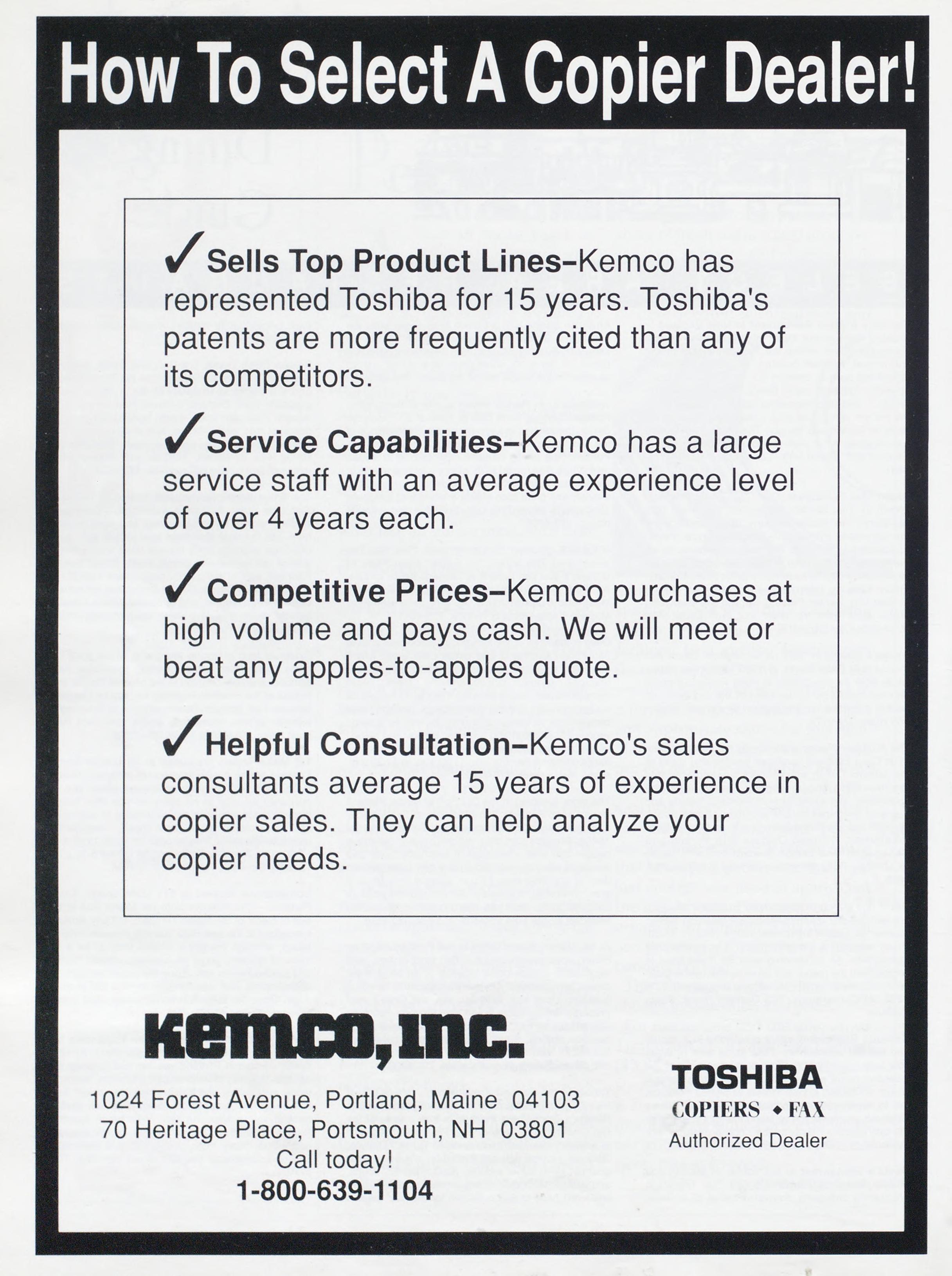Advertising Office: 578 Congress Street, Portland. ME 04101 (207) 775-4339.