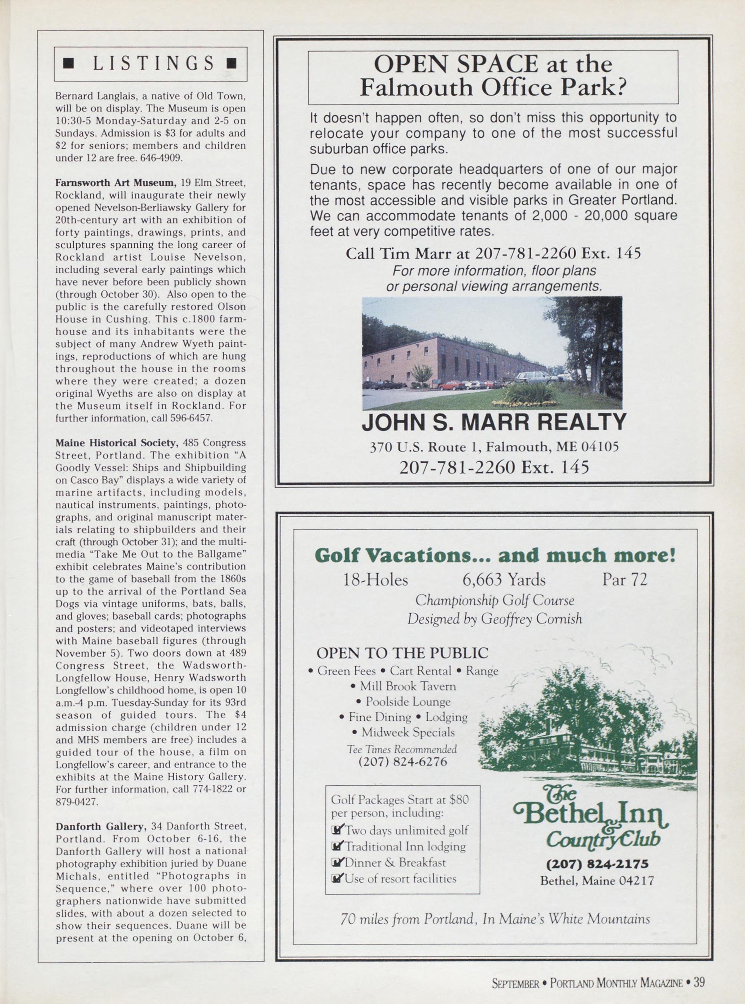 ■ Maine’s City Magazines Established 1985 Volume IX. Number VI. September