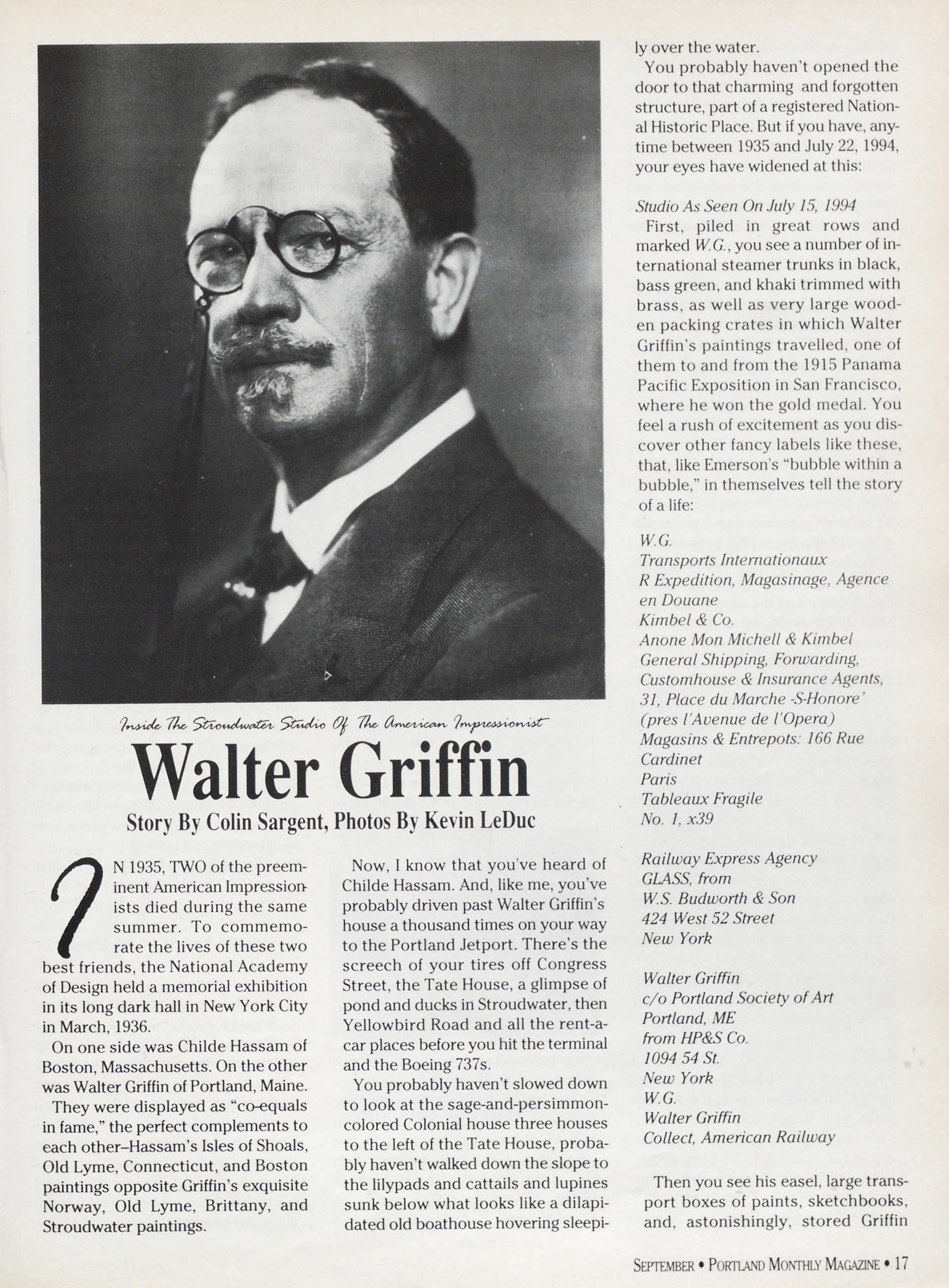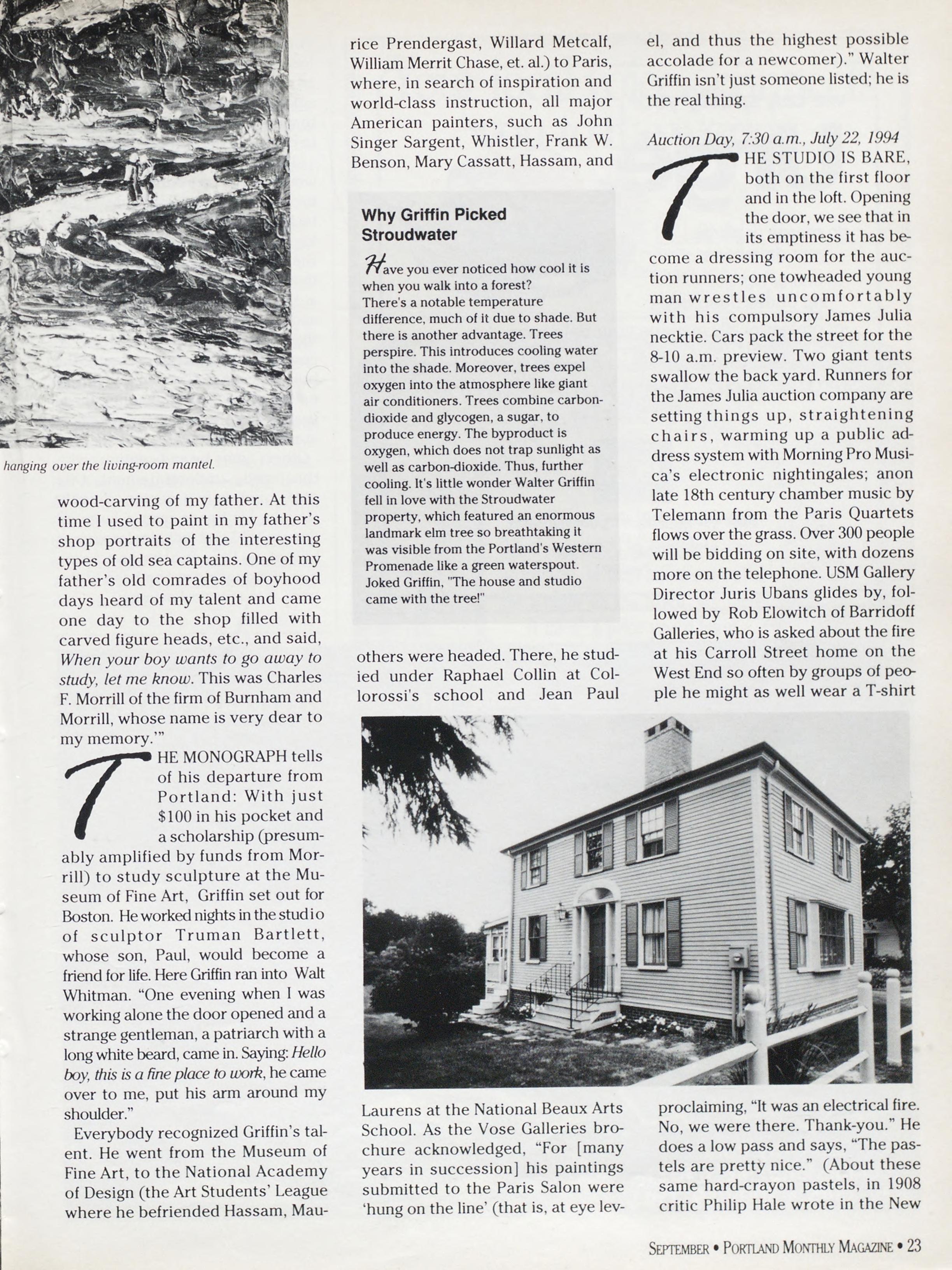 As the story goes, “Mr. Griffin became much interested in Stroudwaterwhenhefirstreturnedafter30 years’stayinEurope,andhesaidit reminds him much of the small Eng¬ lish villages, and he thoroughly delightsinthepossessionofahome there, while Portland People are feeling much pleased that a man sowellknownintheartcirclesof Europe and America should decide tomakehisheadquartershere.”