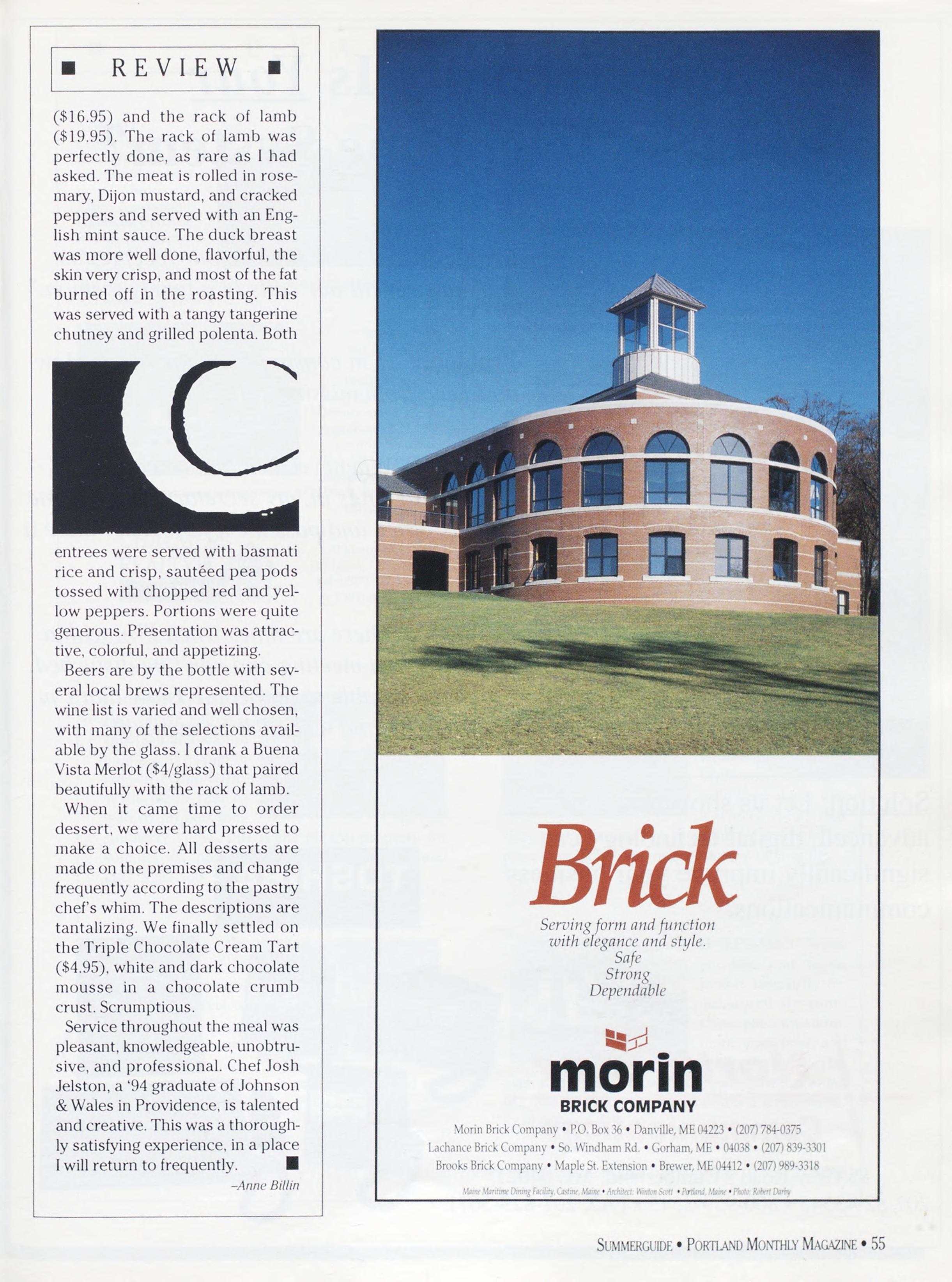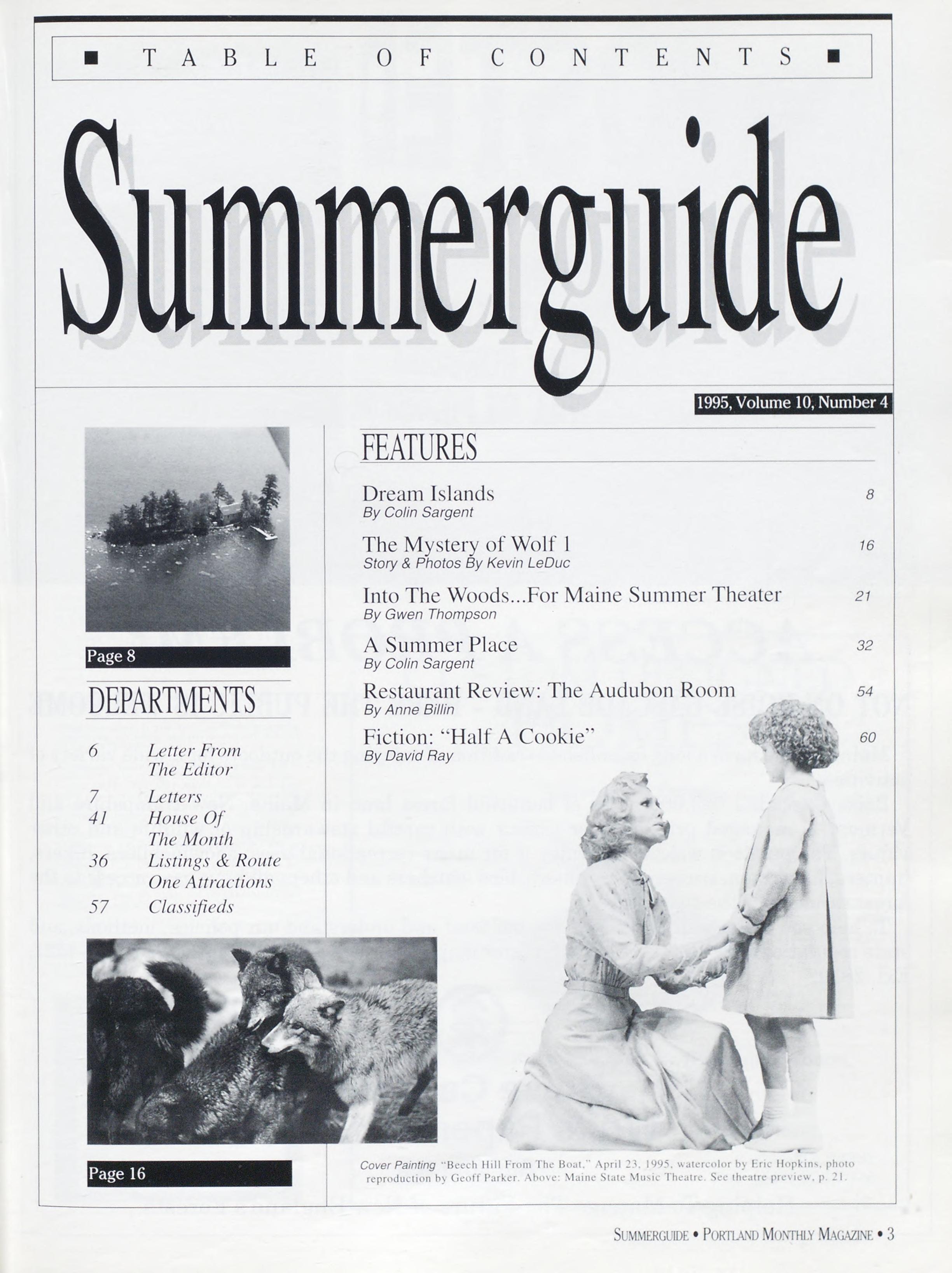 Newsstand Cover Date: S u m m e r g u i d e 19 9 5. published Mas 1995. Vol. 10. No. 4. copy¬ right 1995 Portland Magazine is mailed at third class mail rates in Portland. ML 04101 (ISSN OXX7-5 34O). Opinions expressed in articles are those of authors and do not represent editorial portions of Portland Magazine. Re¬ sponsible only for that portion of any ad¬ vertisement which is printed incorrectly, and as compensation we will run a correction in the following issue. Nothing in this issue may be reprinted in whole or in part without written permission from the publishers. Submissions welcome, but we lake no responsibility for unsolicited materials.