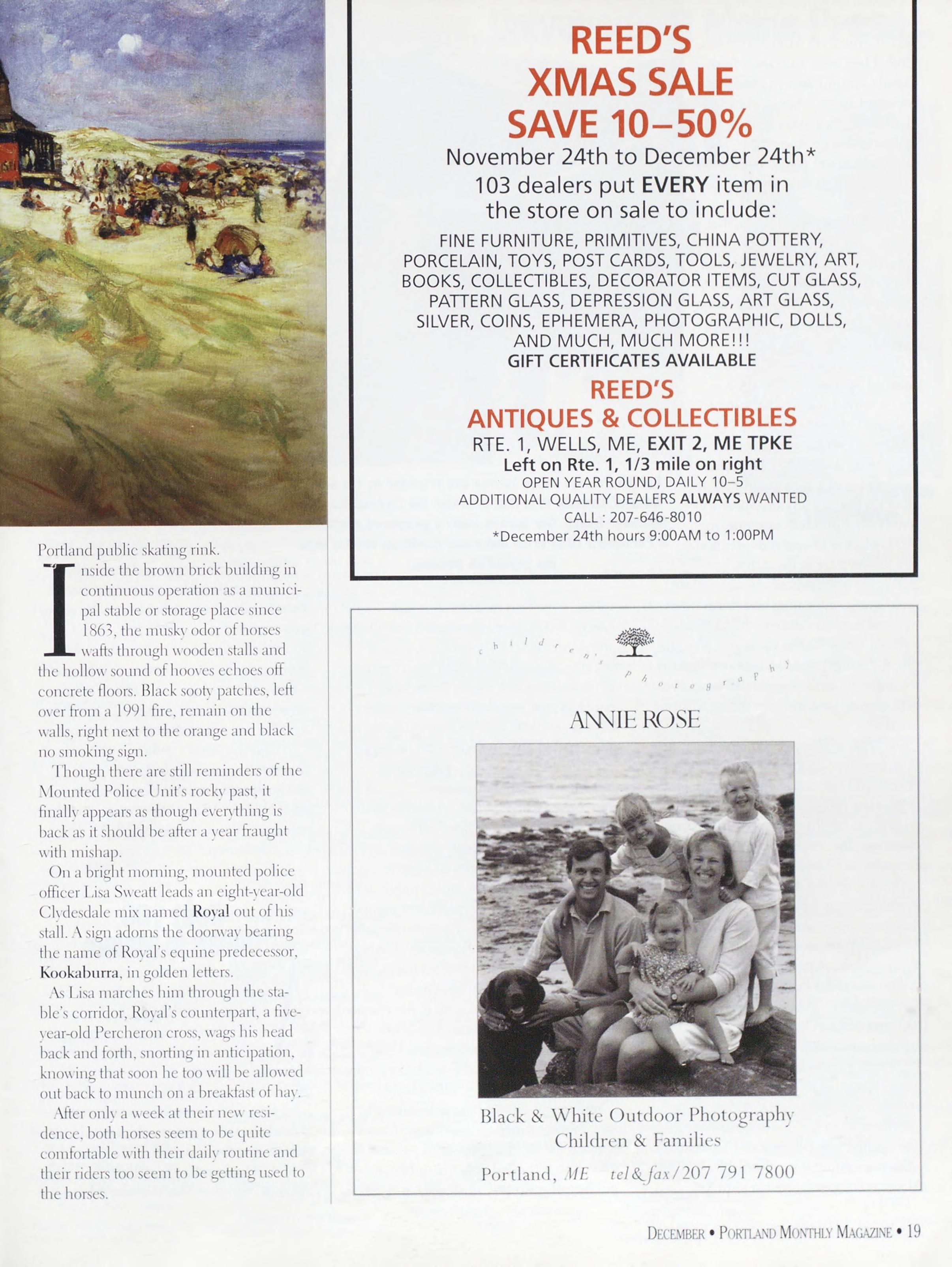 Ourmall-sizeone-owner shopisatreasurehouse forbothcollectors anddecorators. You’llalwaysfindafresh selectionofoutstanding antiquefurniture, accessories,collectibles, andartforeveryinterest andpocketbook-well caredfor,wellorganized, interestinglydisplayed, readytoenhanceyour homeoroffice. Wereeasytoreach at200RouteOnein Scarborough,6miles southofPortland. 1-800-896-3443 www.centervale.com