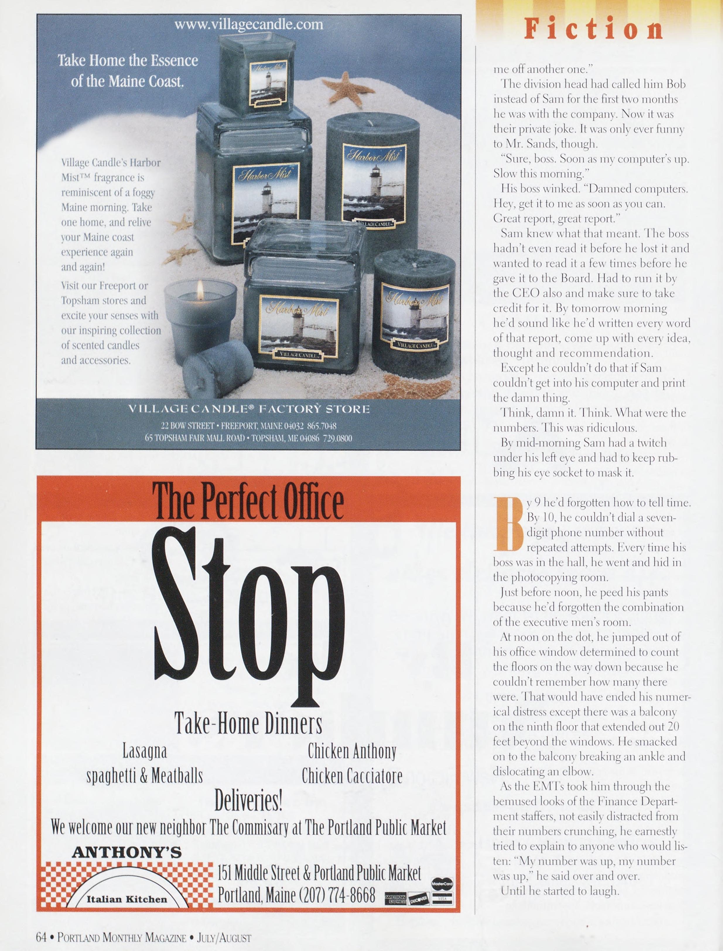 Fabulous Horse Farm on8PrivateAcres! CAMDEN Samthoughtitwasoddwhenhe couldn’tremembertheelevator codetothetenthfloor,theexecu¬ tivefloorofcorporateheadquarters. 1rue,he’dtakenI'ridayoffbutthatonlv madeitathree-dayweekend.Maybeafter athree-weekvacationthenumbersmight bealittlevagueinthememory.Butnot afterthreedaws.