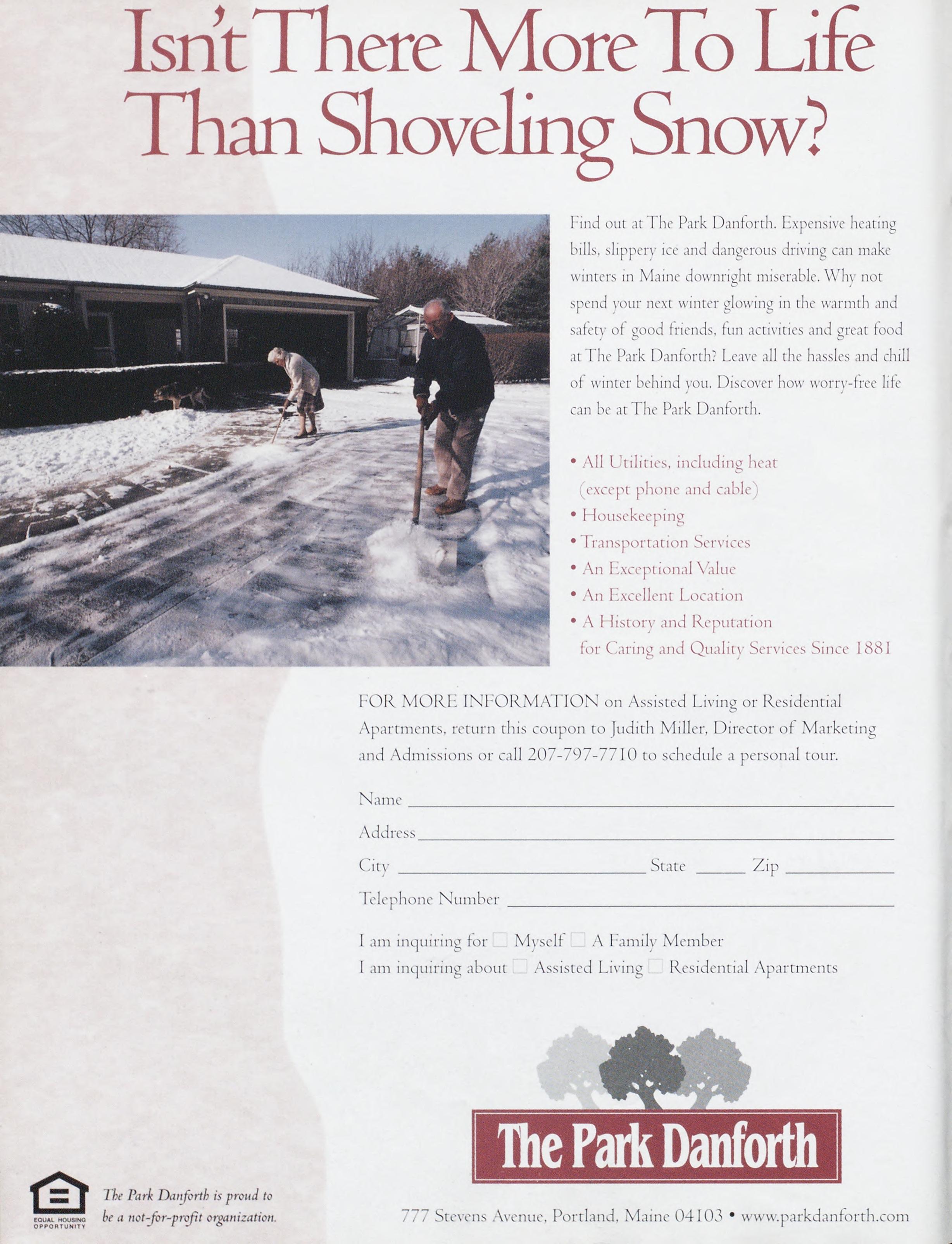 Isn’tThereMoreToLife ThanShovelingSnow? FindouratTheParkDanforth.Expensiveheating bills,slipperviceanddangerousdrivingcanmake winterstnMainedownrightmiserable.Whvnot spendyournextwinterglowinginthewarmthand safetvofgoodfriends,funactivitiesandgreatfood atTheParkDanforth?Leaveallthehasslesandchill ofwinterbehindyou.Discoverhowworry-freelife canbeatTheParkDanforth.