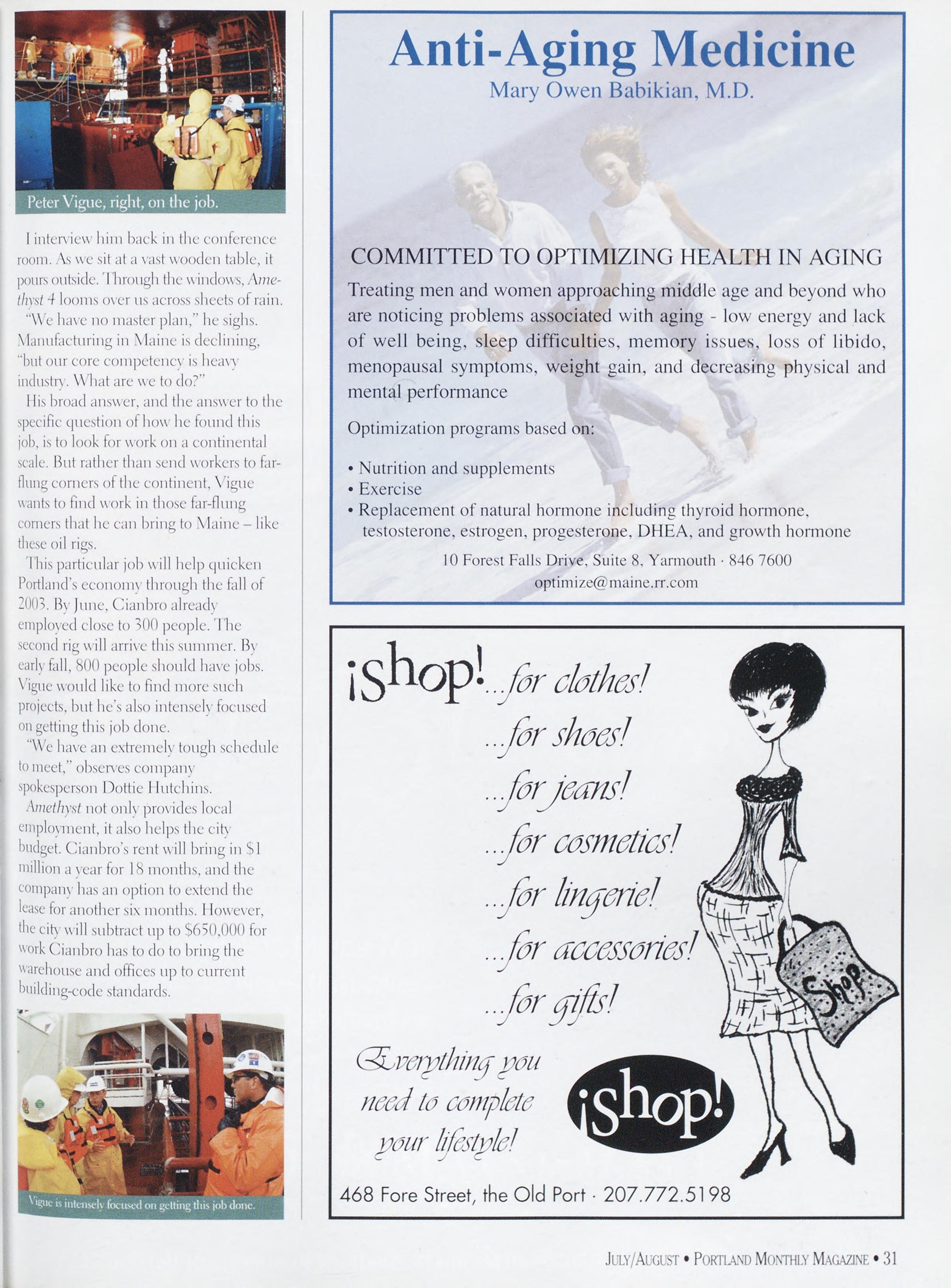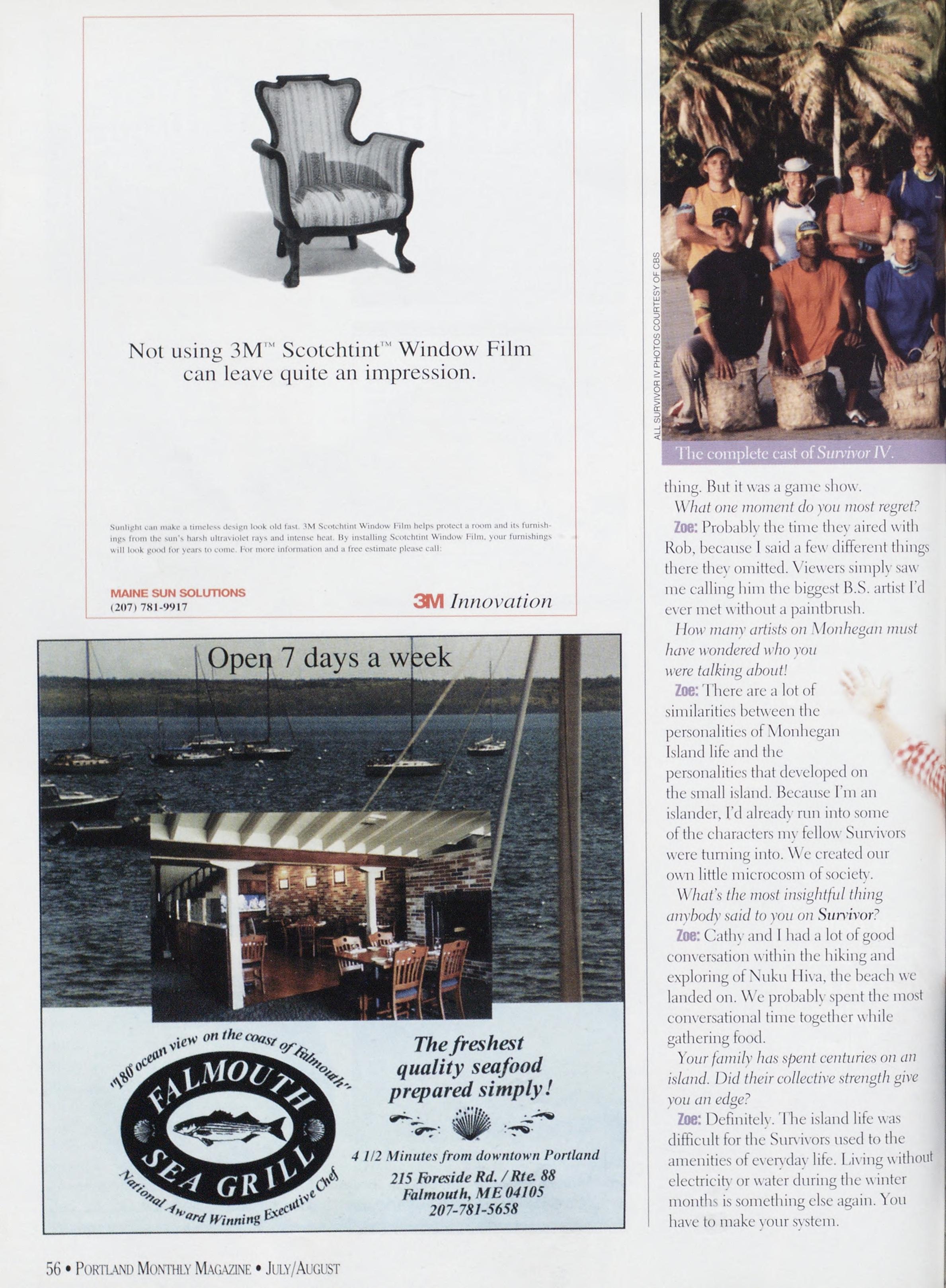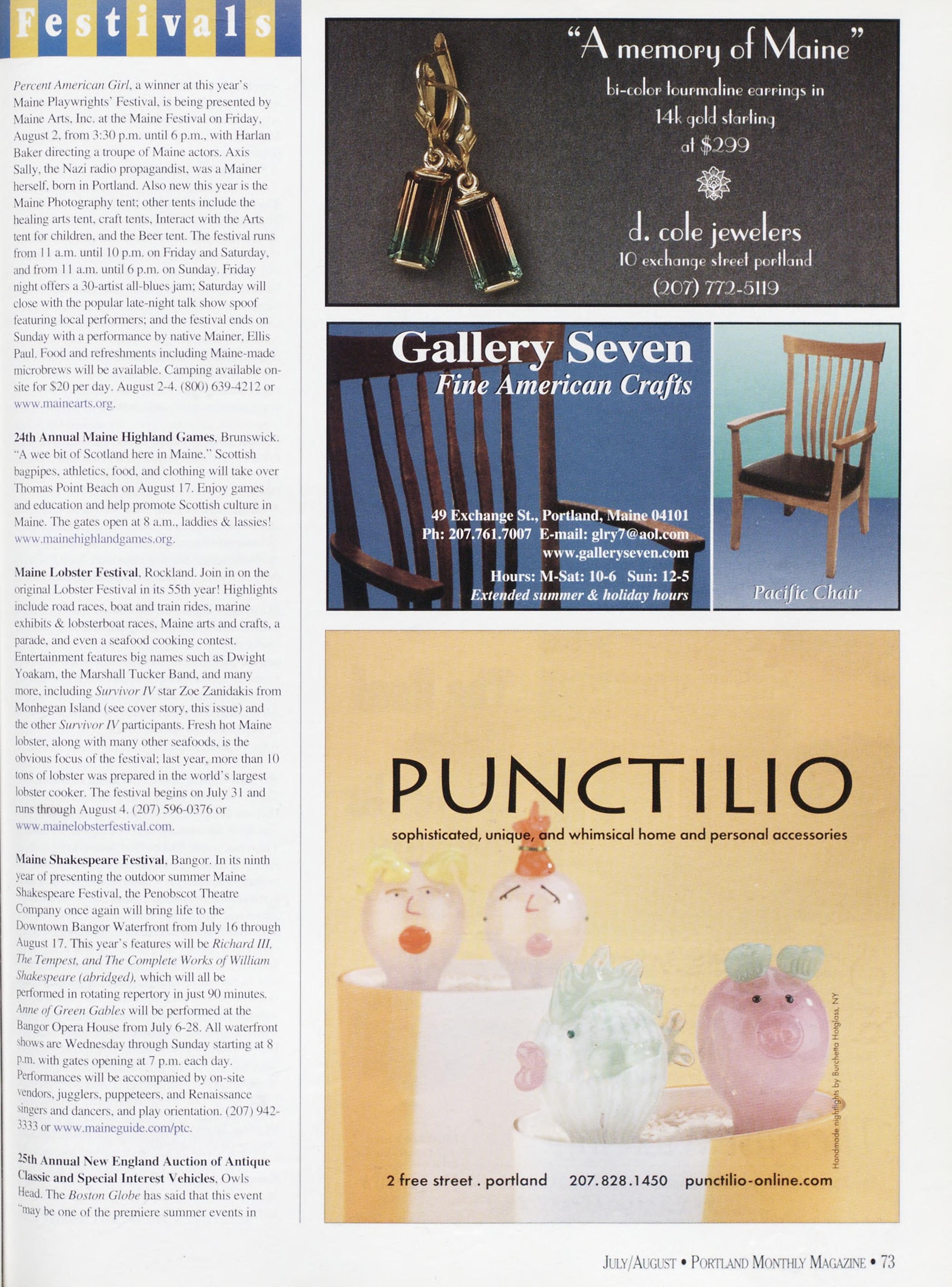 /MERNS: Alex Wwsox. Rebecca Dckgtx. Gowx>\l.wi Pdku.xxd MagazineispublishedbySargentPublishing.Inc. >“8 Congress Street, Portland. Mb. 04101. All corre¬ spondence should be addressed to ”8 Congress Street. Portland.ME04101.AdvertisingOffice:5*8CongressStreet. Portland.ME04101(20“>“”-4339.Rejx-.itinternetrights areunderstoodIobepurchasedwithallstoriesandartwork Billingquestions:Ifsouhavequestionsregardingadvertising invoicingandpavtnenls.callJohnGerdesat“”-4339. Newsstand(’overDate:)uls/\ugust2002.publishedinJuls 2002.Vol.1“.No.5.copvright2(X>2. Portland Magazineis mailedatthird-classmailralesinPortland.ME0410JISSN: 10“3-183“i.Oj)inionsexpressedinarticlesarcthoseofauthors anddonotrepresenteditorialjiosilionsof Porttand Magazine Letterstotheeditorarcwelcomeandwillbetreatedas unconditionallv assigned for publication and copvright puqxiscsandassubjecttoPokiiaxd Magazine'sunrestricted righttoeditandcommenteditorially.Rcqxmsiblconkforthat portionotanyadvertisementwhichisprintedincorrccth. Advertisersarcresponsibleforcopyrightsofmaterials(lies submit.Nothinginthisissuemavlxreprintedmwholeorin part without written permission from the publishcrs. Submissions welcome, but we take no rcspunsibiliIs for unsolicitedmaterials.