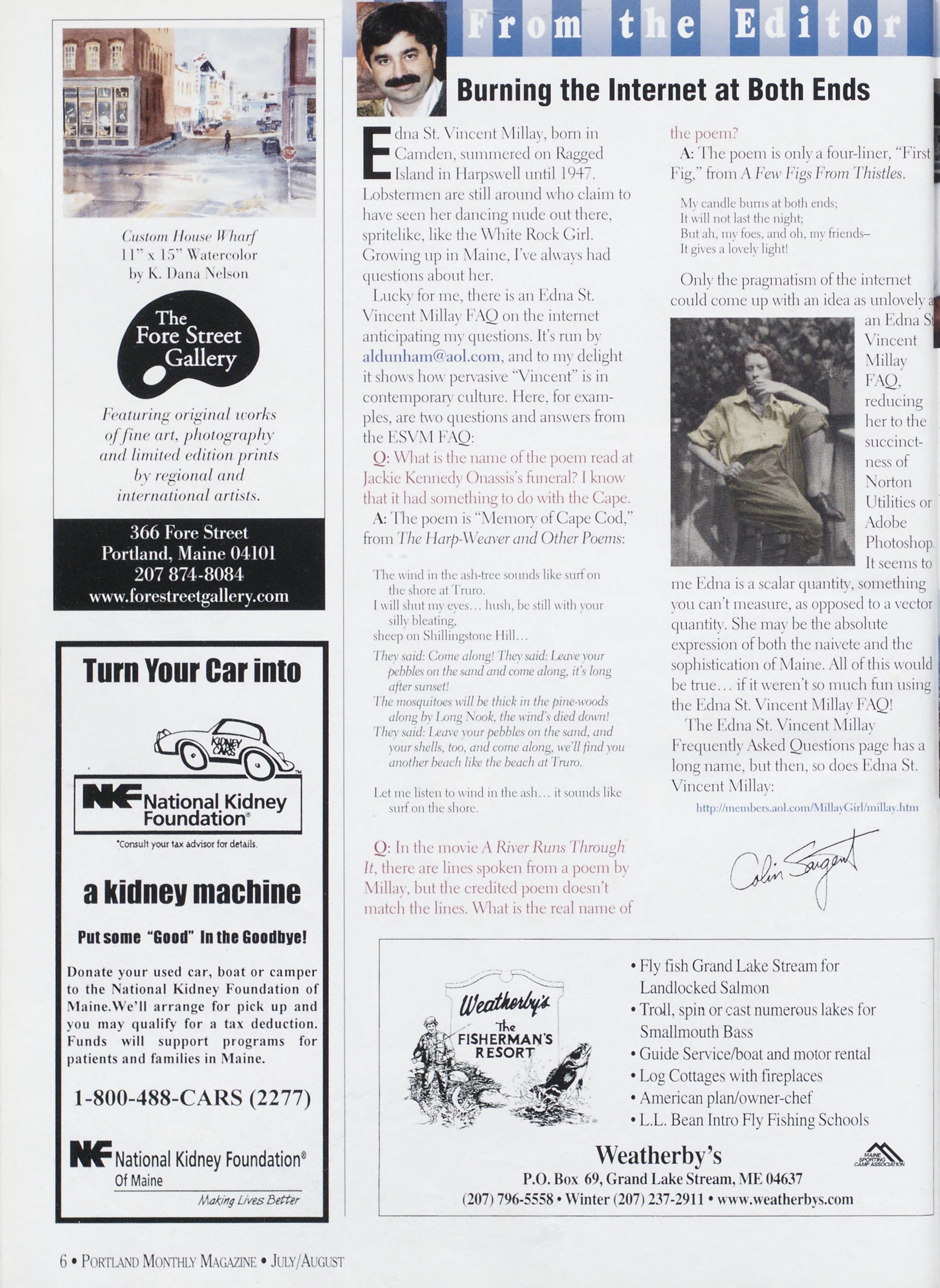 Onlythepragmatismoftheinternet couldcomeupwithanideaasunlovelya: anEdnaSt Vincent Millav FAQ, reducing hertothe succinct¬ nessof Norton Utilitiesor Adobe Photoshop Itseemsto meEdnaisascalarquantity,something voucan’tmeasure,asopposedtoavector quantity.Shemavbetheabsolute expressionofboththenaiveteandthe sophisticationofMaine.Allofthiswould betrue...ifitweren’tsomuchfunusing theEdnaSt.VincentMillavFAQ!