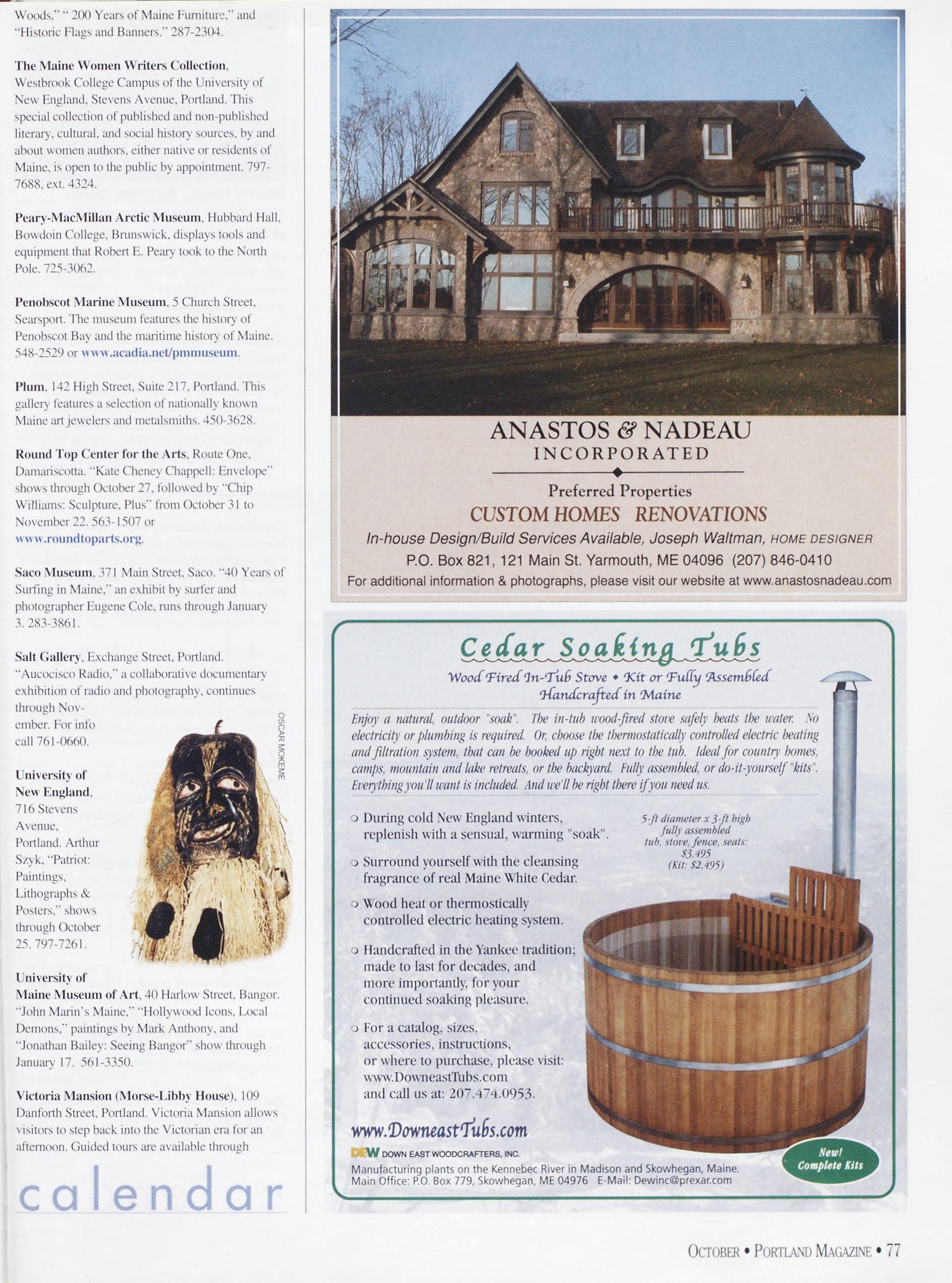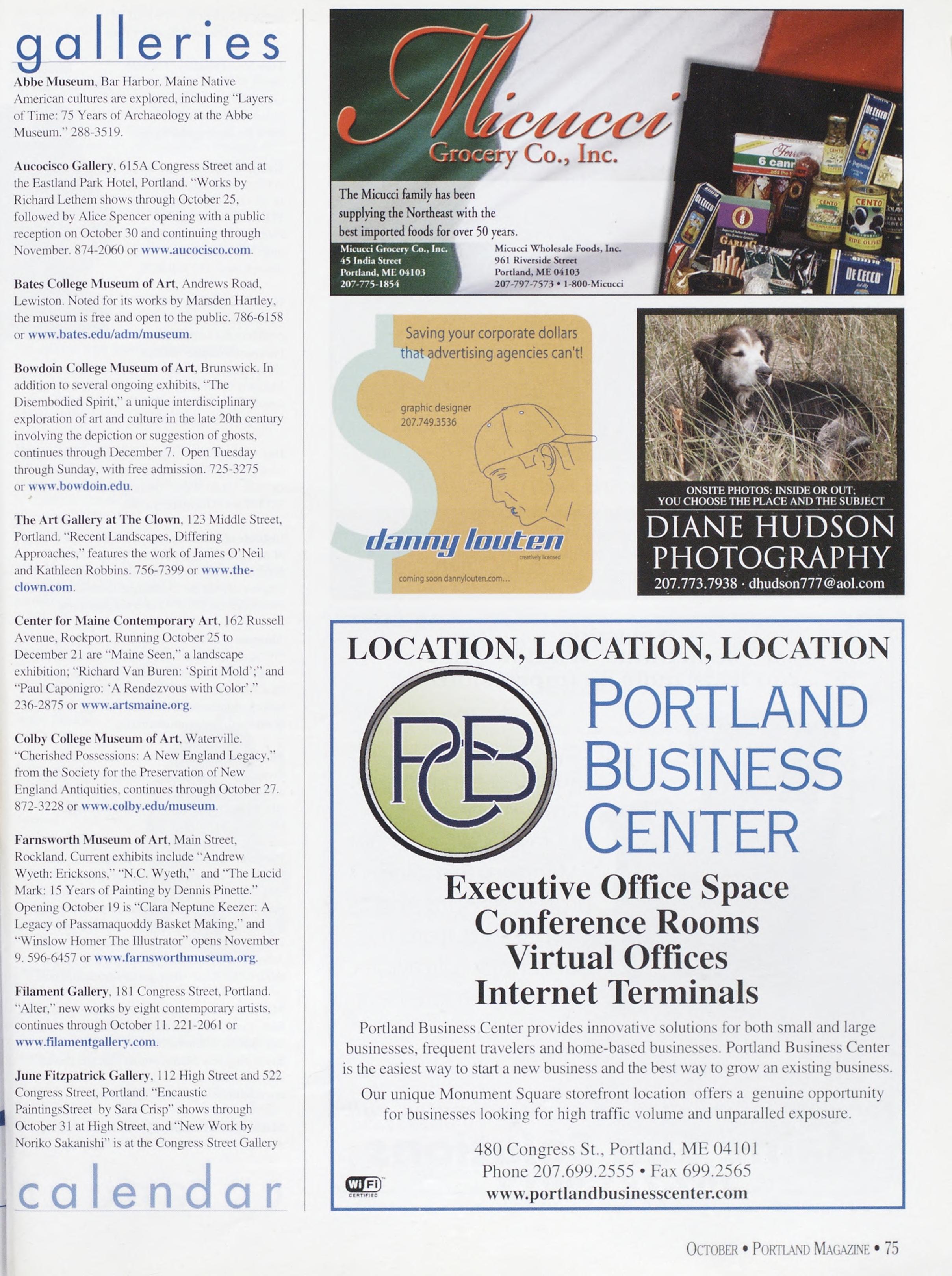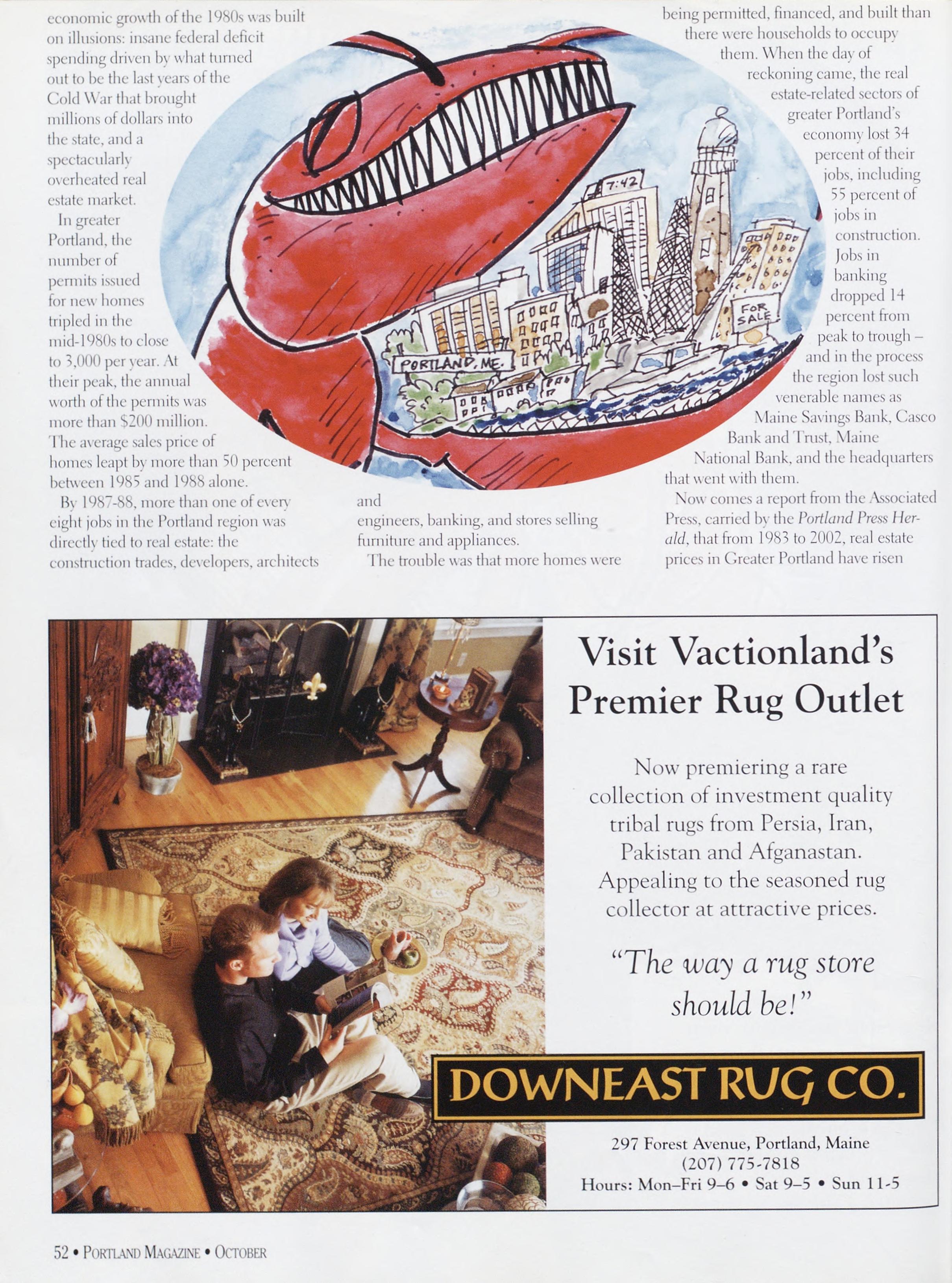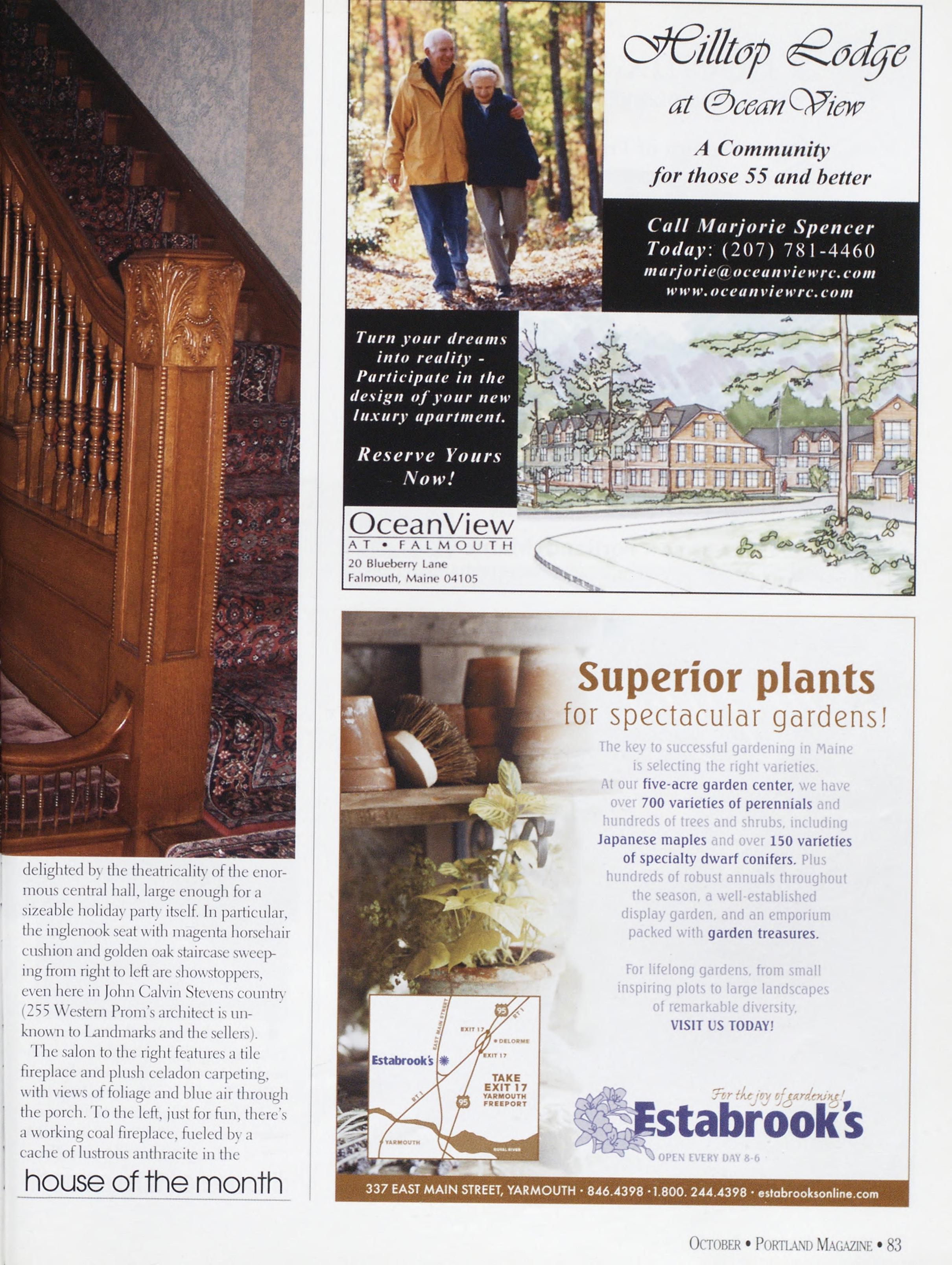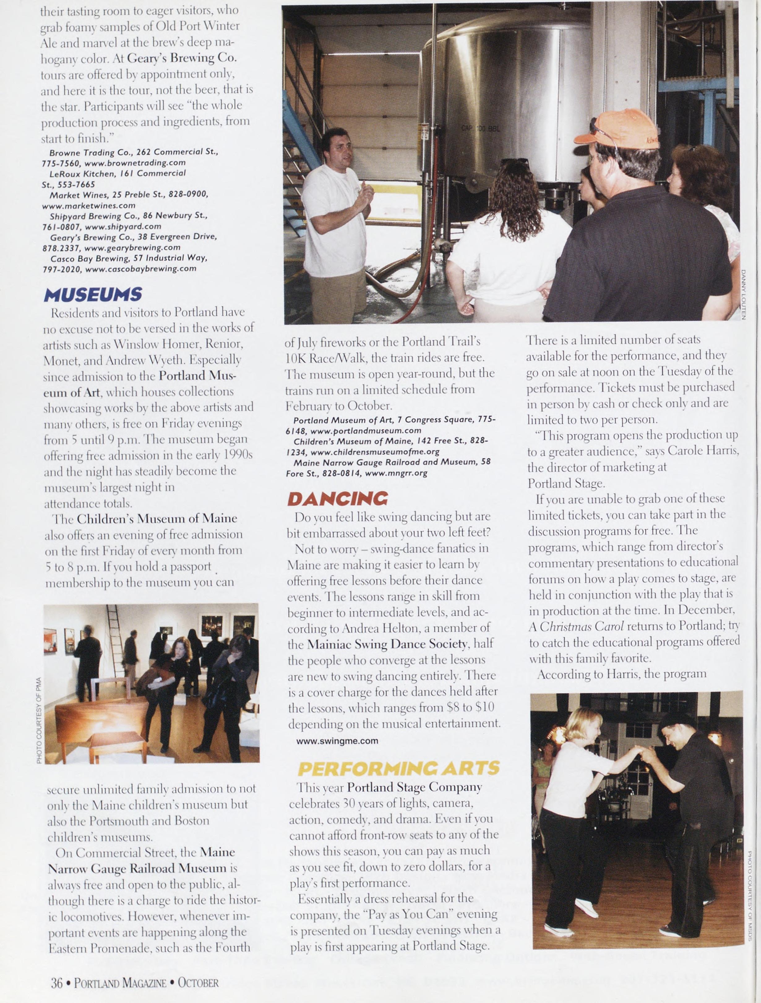 NewsstandCoverDate:October2003.publishedinSeptember2003,Vol.18,No.7,copvright2003. PORTLAND MAGAZINE ismailedatthird-classmailratesinPortland,ME04101(ISSN:1073-1857). Opinionsexpressedinarticlesarethoseofauthorsanddonotrepresenteditorialpositionsof PORTLAND MAGAZINE. Letterstotheeditorarewelcomeandwillbetreatedasunconditionallyassignedfor publicationandcopyrightpurposesandassubjectto PORTLAND MAGAZINE’Sunrestrictedrighttoedit andcommenteditorially.Responsibleonlyforthatportionofanvadvertisementwhichisprinted incorrectly.Advertisersarcresponsibleforcopvrightsofmaterialsthevsubmit.Nothinginthisissue maybereprintedinwholeorinpartwithoutwrittenpermissionfromthepublishers.Submissions welcome,butwetakenoresponsibilityforunsolicitedmaterials.