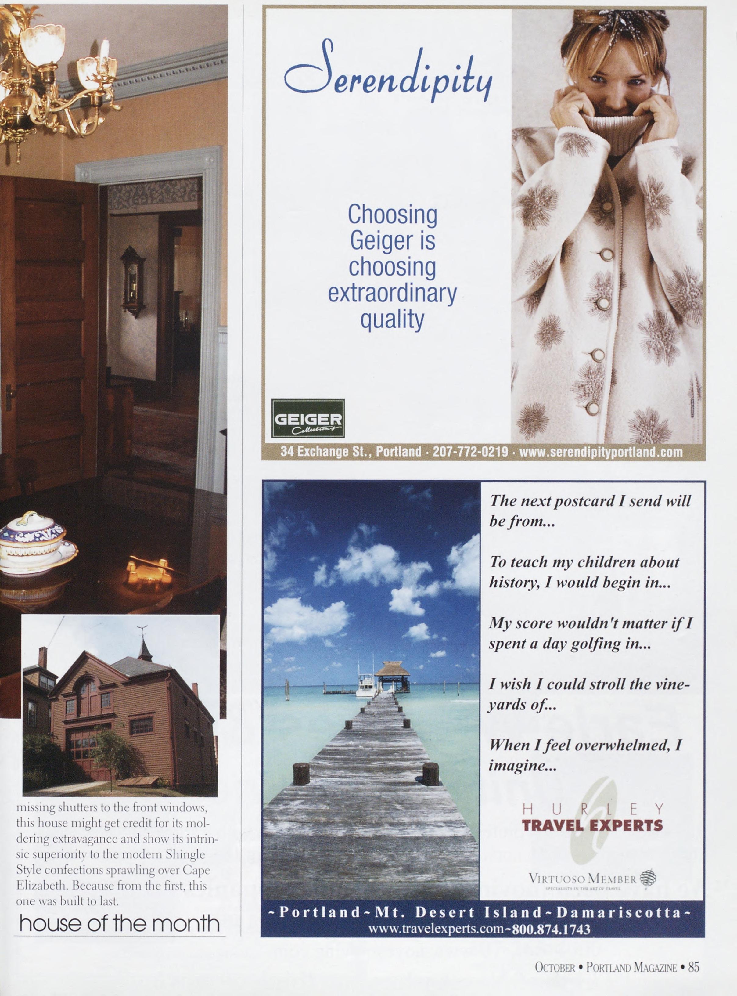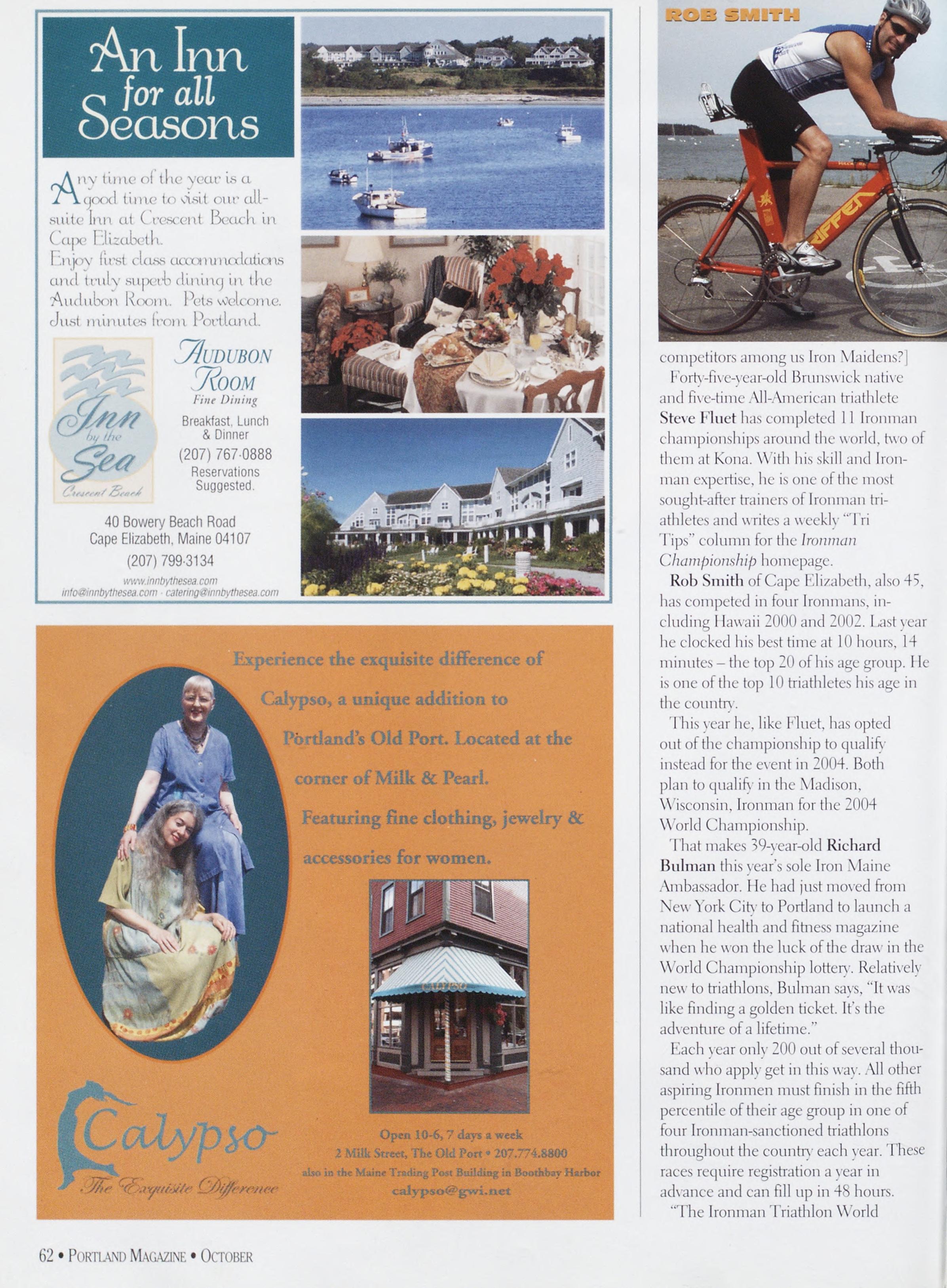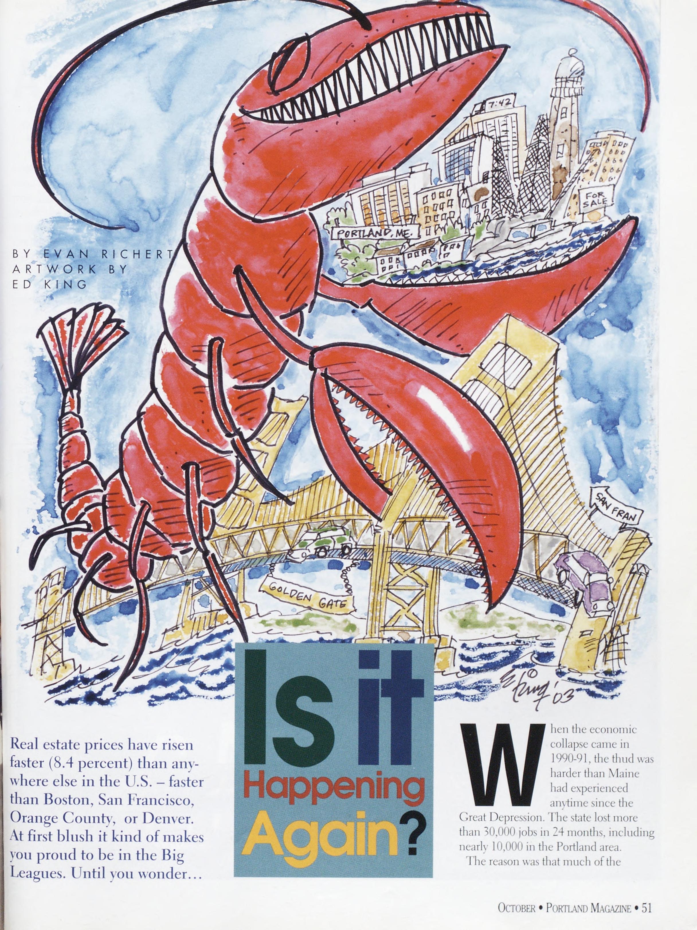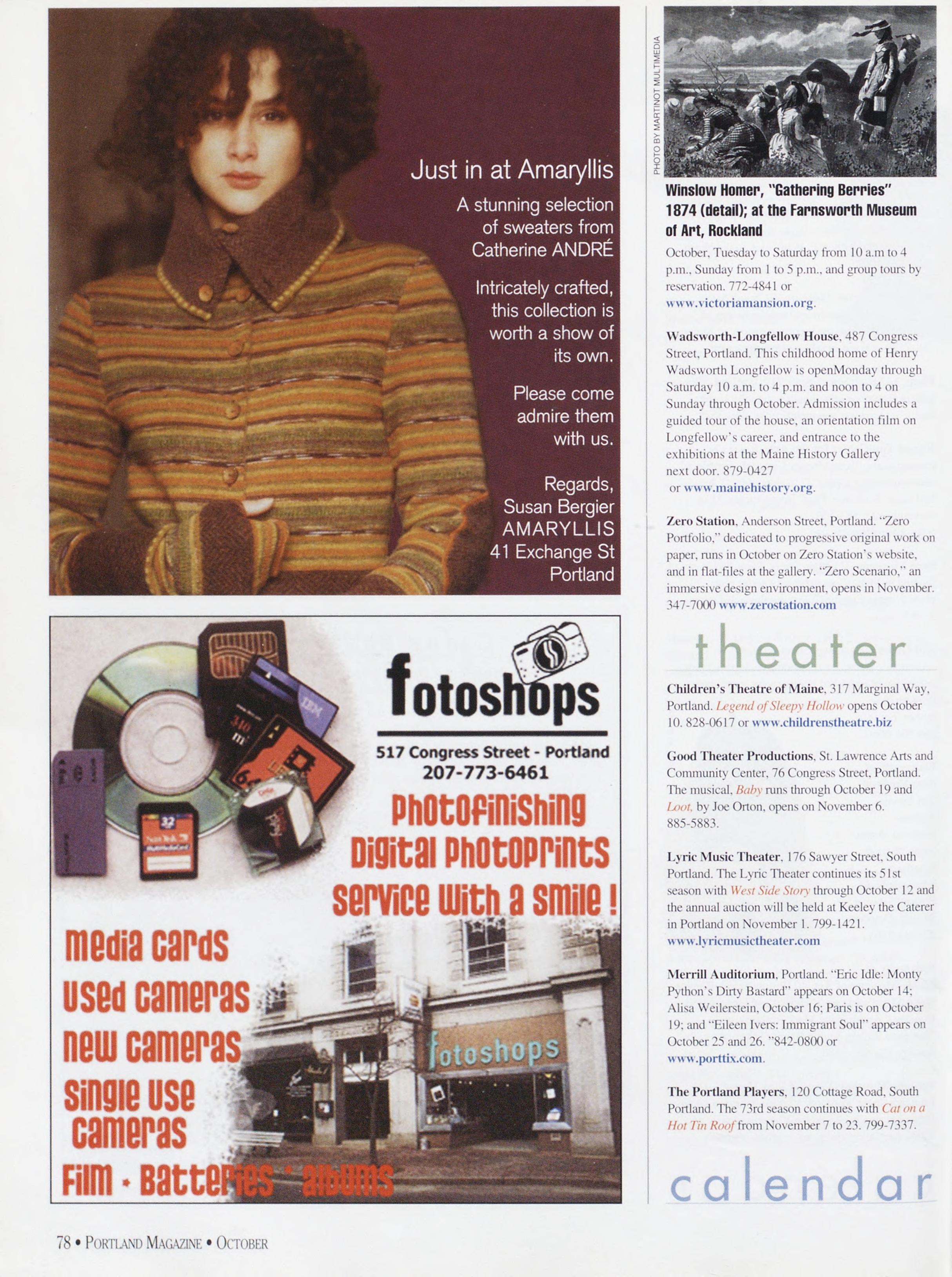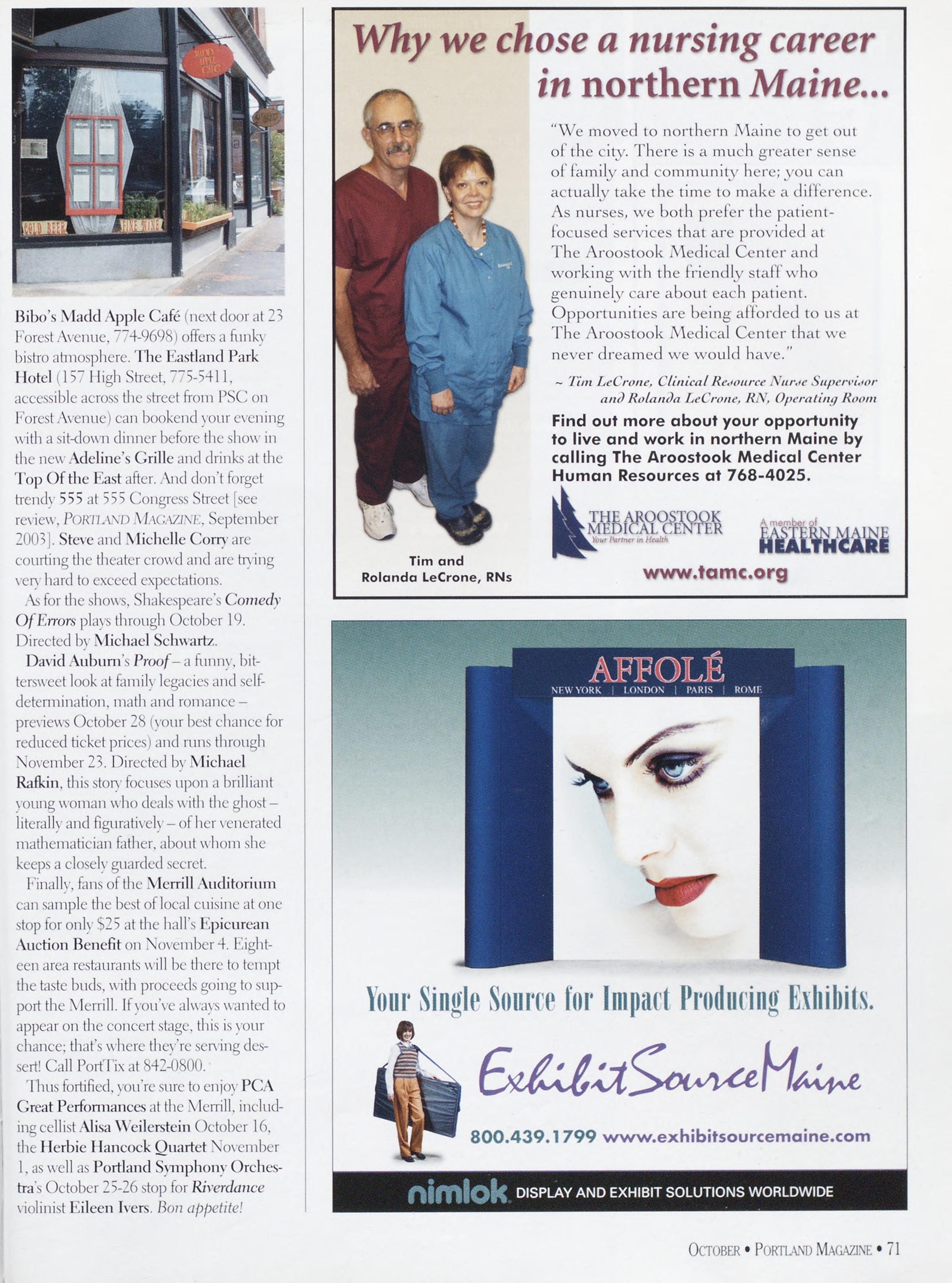 NewsstandCoverDate:October2003.publishedinSeptember2003,Vol.18,No.7,copvright2003. PORTLAND MAGAZINE ismailedatthird-classmailratesinPortland,ME04101(ISSN:1073-1857). Opinionsexpressedinarticlesarethoseofauthorsanddonotrepresenteditorialpositionsof PORTLAND MAGAZINE. Letterstotheeditorarewelcomeandwillbetreatedasunconditionallyassignedfor publicationandcopyrightpurposesandassubjectto PORTLAND MAGAZINE’Sunrestrictedrighttoedit andcommenteditorially.Responsibleonlyforthatportionofanvadvertisementwhichisprinted incorrectly.Advertisersarcresponsibleforcopvrightsofmaterialsthevsubmit.Nothinginthisissue maybereprintedinwholeorinpartwithoutwrittenpermissionfromthepublishers.Submissions welcome,butwetakenoresponsibilityforunsolicitedmaterials.